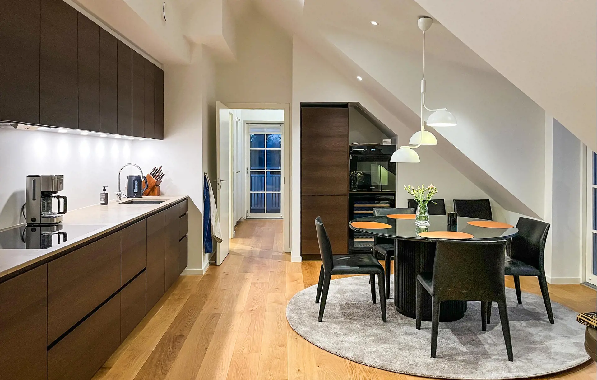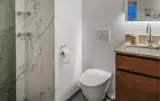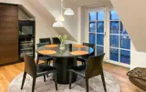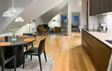 Willkommen in dieser attraktiven Penthouse-Wohnung, die Sie nahe dem Blokhus Torv und nur einen kurzen Spaziergang vom Strand entfernt empfängt. Die Innenausstattung besticht durch hochwertige Materialien und Lösungen, die Luxus, Komfort und Ästhetik perfekt vereinen. Jedes Detail wurde durchdacht, und das Apartment wirkt elegant, modern und exklusiv. Bereiten Sie leckere Gerichte zu, planen Sie Ihre Unternehmungen bei den gemeinsamen Mahlzeiten und machen Sie es sich nach einem langen Tag für einen Filmabend im einladenden Wohnzimmer gemütlich.