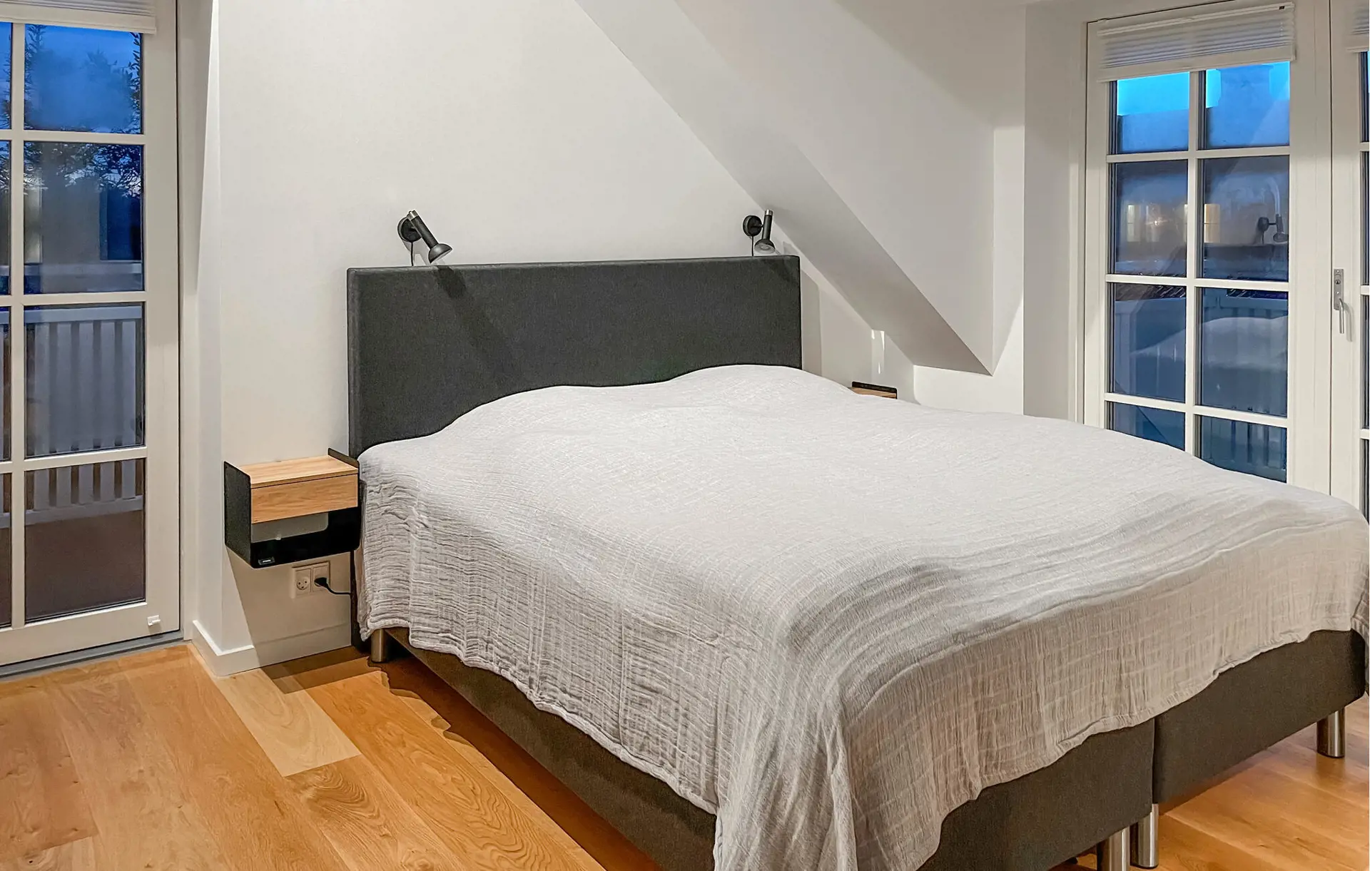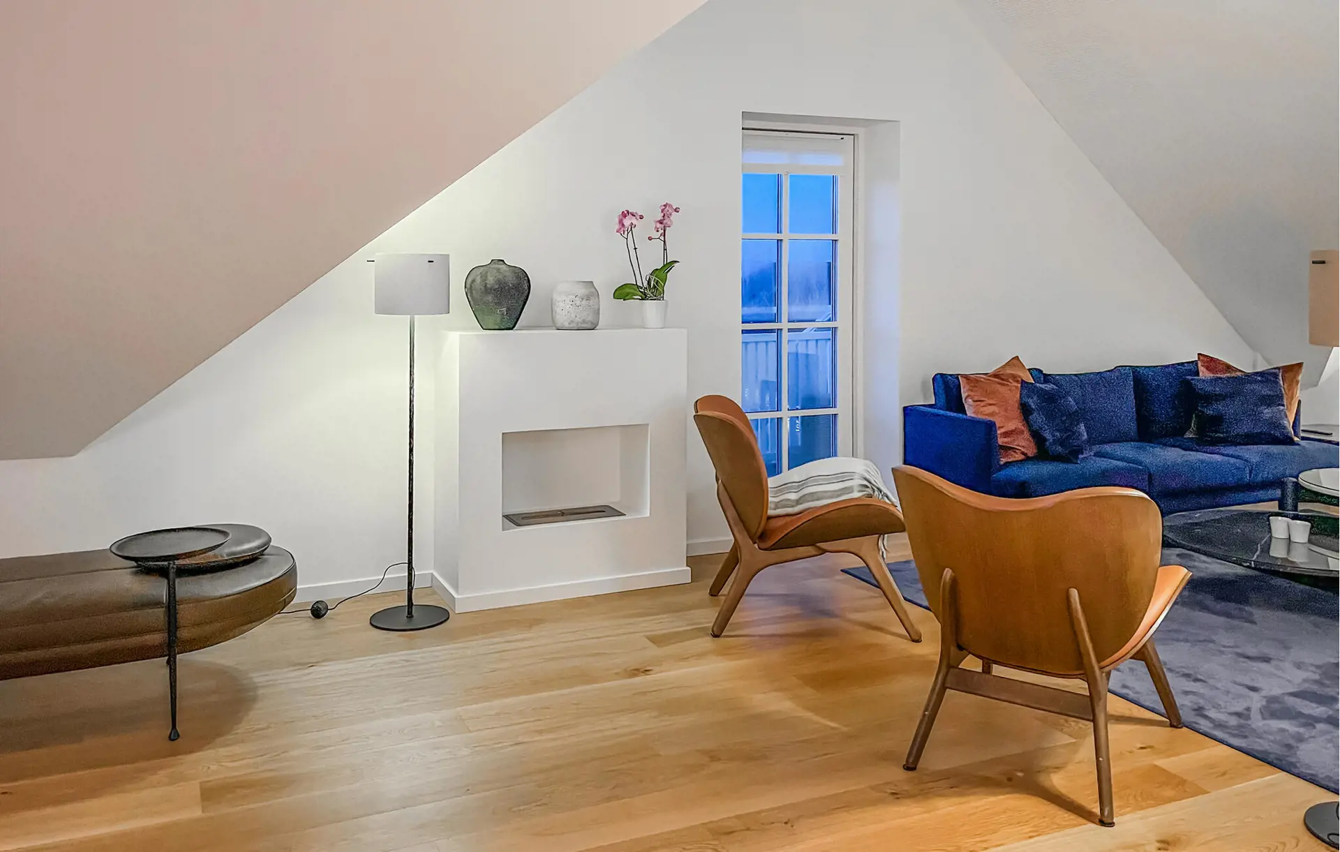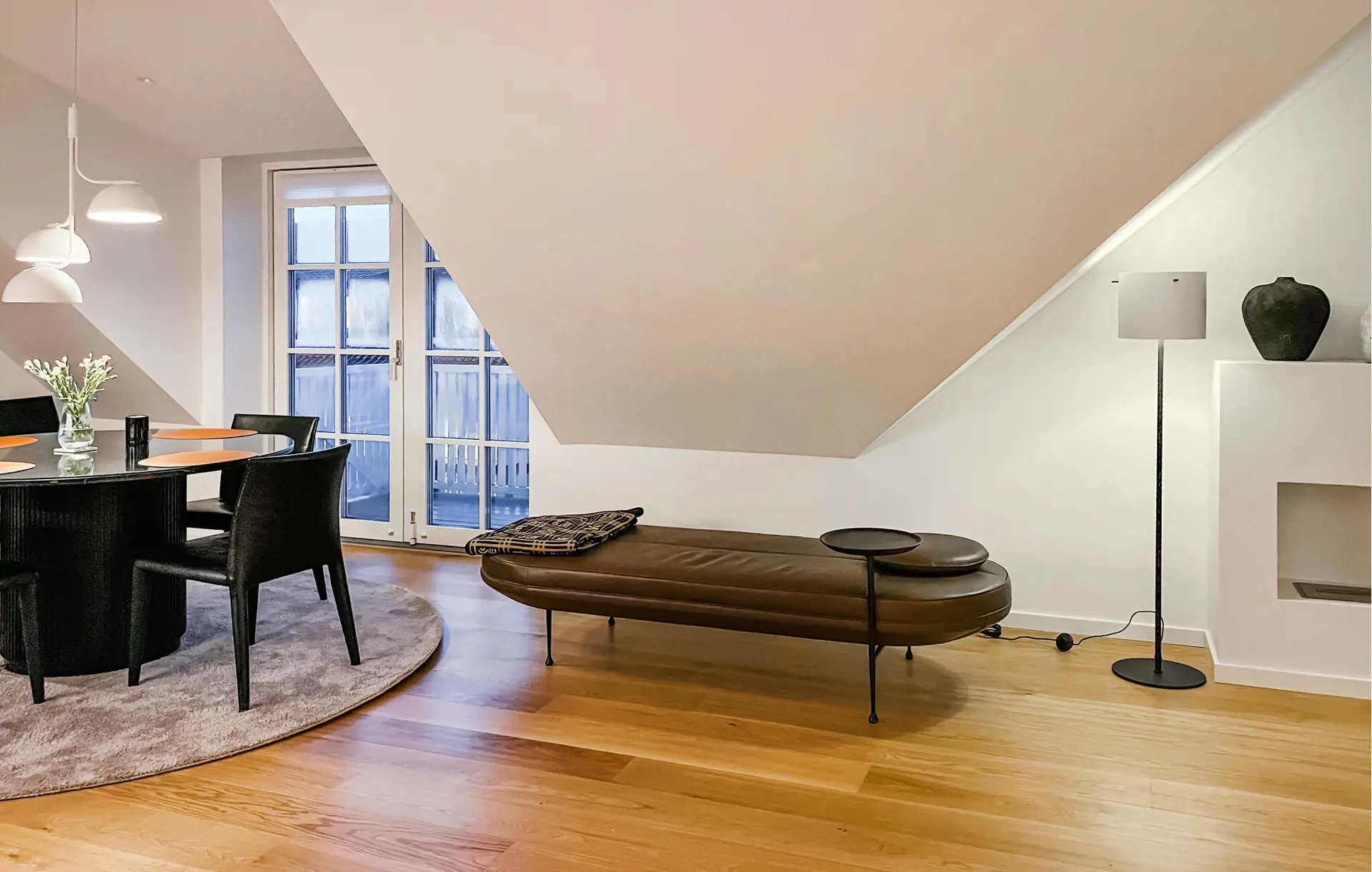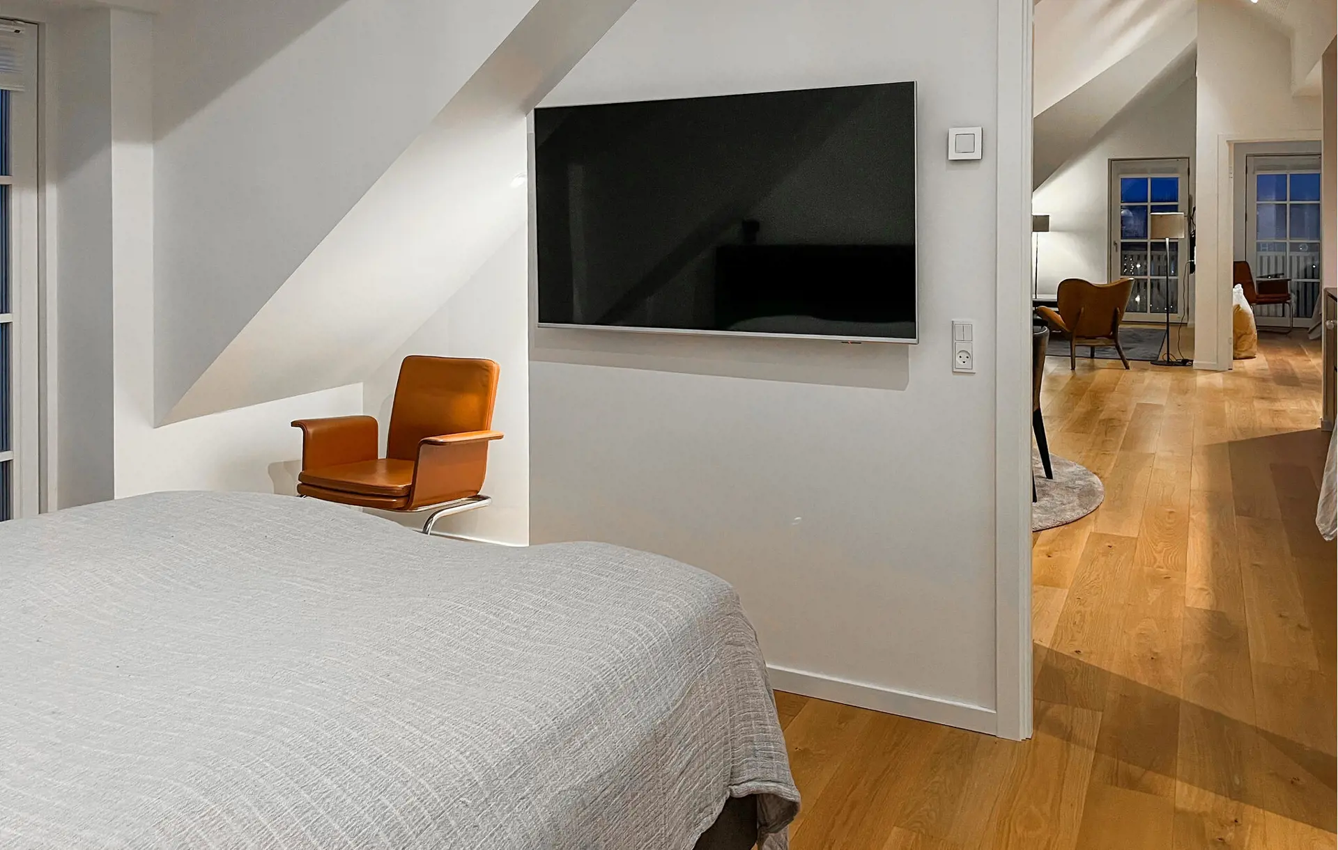 Auf den Balkonen können Sie schöne Stunden im Freien genießen. Das wechselnde Licht, der Himmel und die Landschaft schaffen eine ganz besondere Atmosphäre, und den ganzen Tag über strömt Tageslicht von verschiedenen Seiten in die Wohnung.