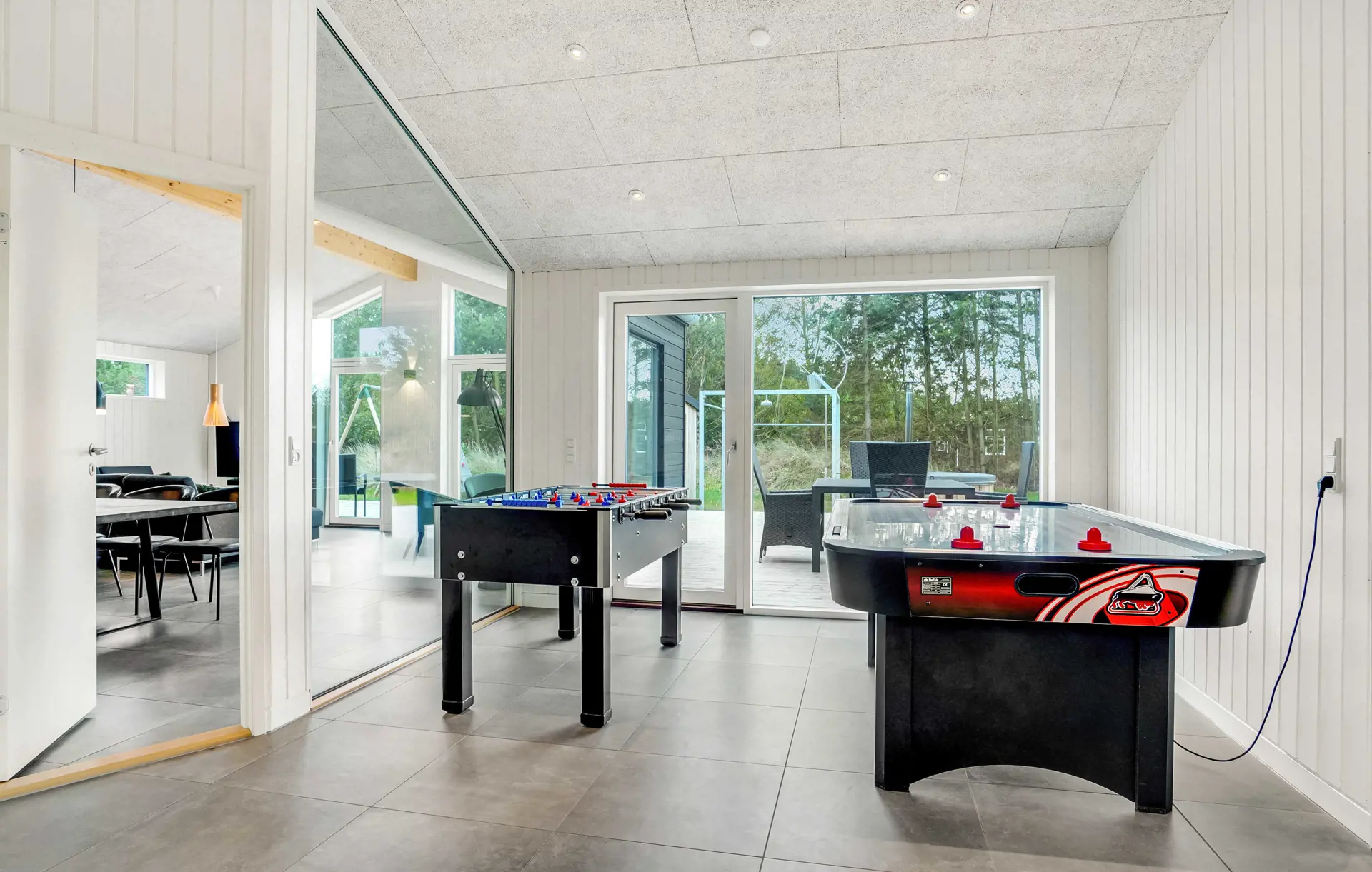 Dieses einladende Ferienhaus bietet ideale Voraussetzungen für einen erholsamen Urlaub mit Familie oder Freunden. Mit Platz für bis zu zehn Personen, fünf Schlafzimmern und mehreren Badezimmern verbindet das Haus gemeinsames Beisammensein mit Rückzugsmöglichkeiten. Der helle Wohnbereich mit offener Küche und direktem Zugang zur großen Holzterrasse lädt zu gemeinsamen Mahlzeiten und entspannten Stunden ein. Ein Highlight ist der Aktivitätsraum mit Tischfußball, Airhockey, Sofaecke und Instrumenten – perfekt für Spiel und Gemütlichkeit bei jedem Wetter. Draußen erwarten Sie ein familienfreundlicher Garten mit Spielturm, Schaukel und Sandkasten sowie ein Wellnessbereich mit Badezuber, Sauna und Kaltwasserdusche. Die Lage in Blokhus ermöglicht Erlebnisse das ganze Jahr über – von Strand und Dünen bis zu Cafés, Natur und Ausflügen ins Fårup Sommerland.