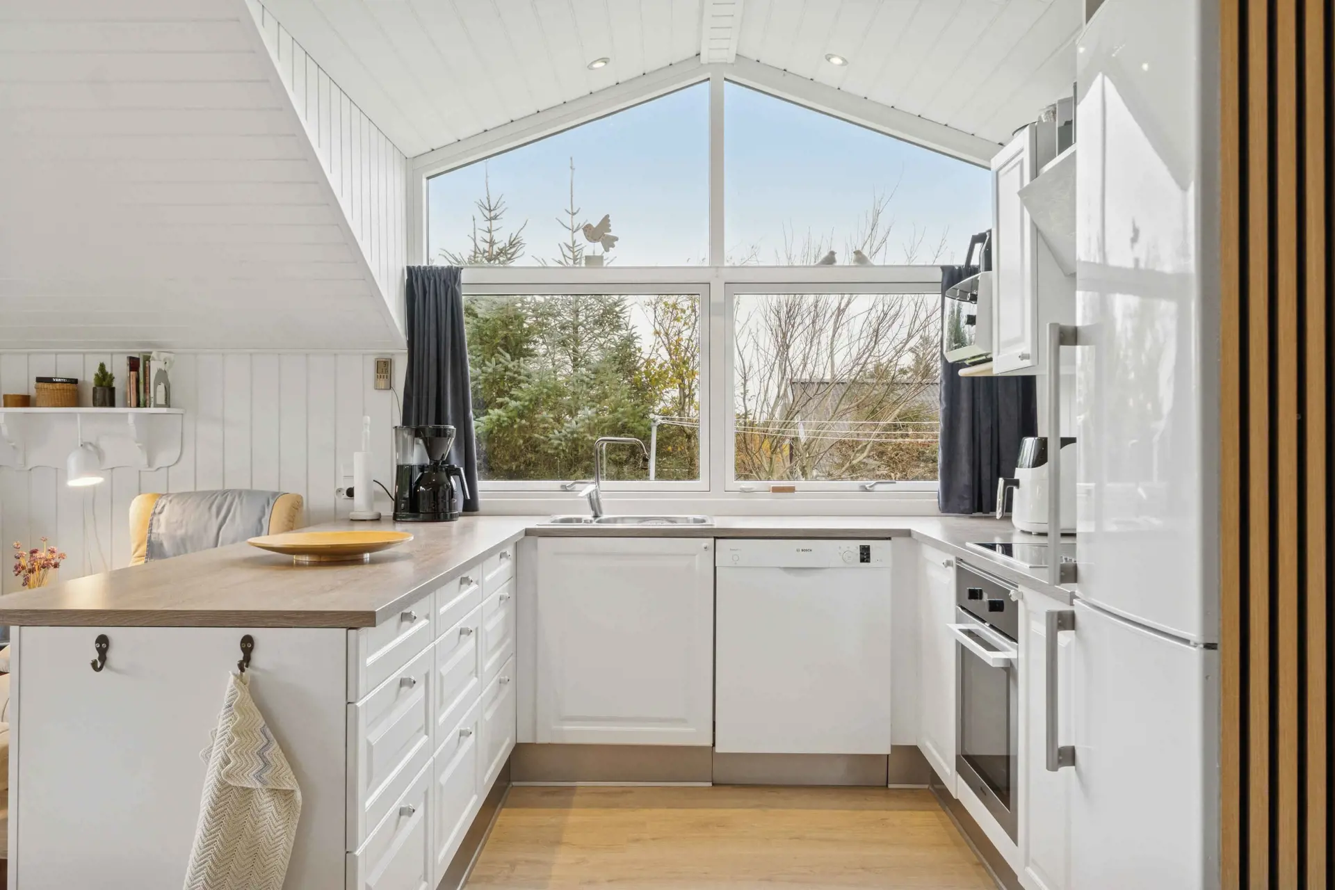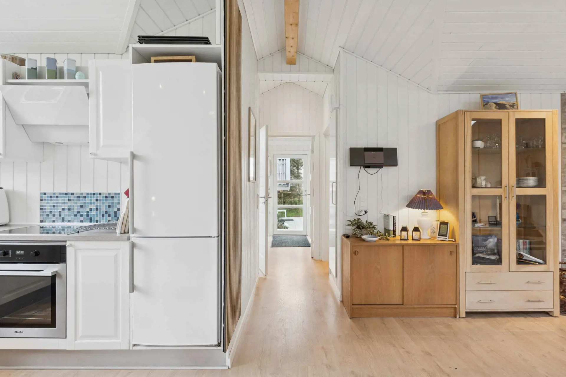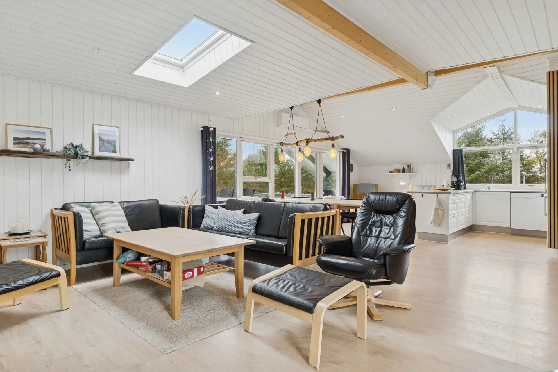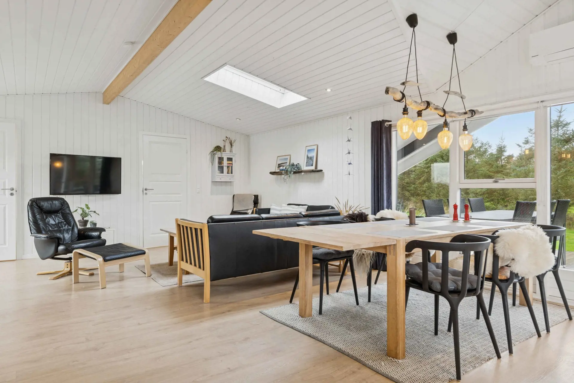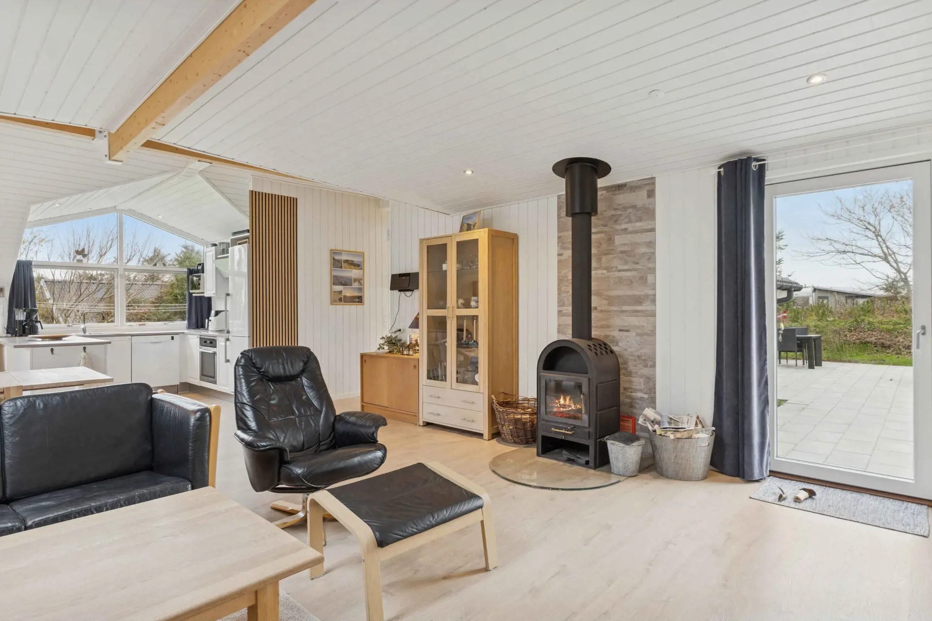 Das Haus verfügt über drei Schlafzimmer mit Doppelbetten, ein helles Badezimmer und eine schöne Sauna, in der Sie nach einem Tag am Strand wunderbar entspannen können. Der Wohnraum ist gemütlich eingerichtet – mit Holzofen, bequemer Sofaecke und einer offenen, gut ausgestatteten Küche mit allem, was Sie für Ihren Urlaub benötigen.