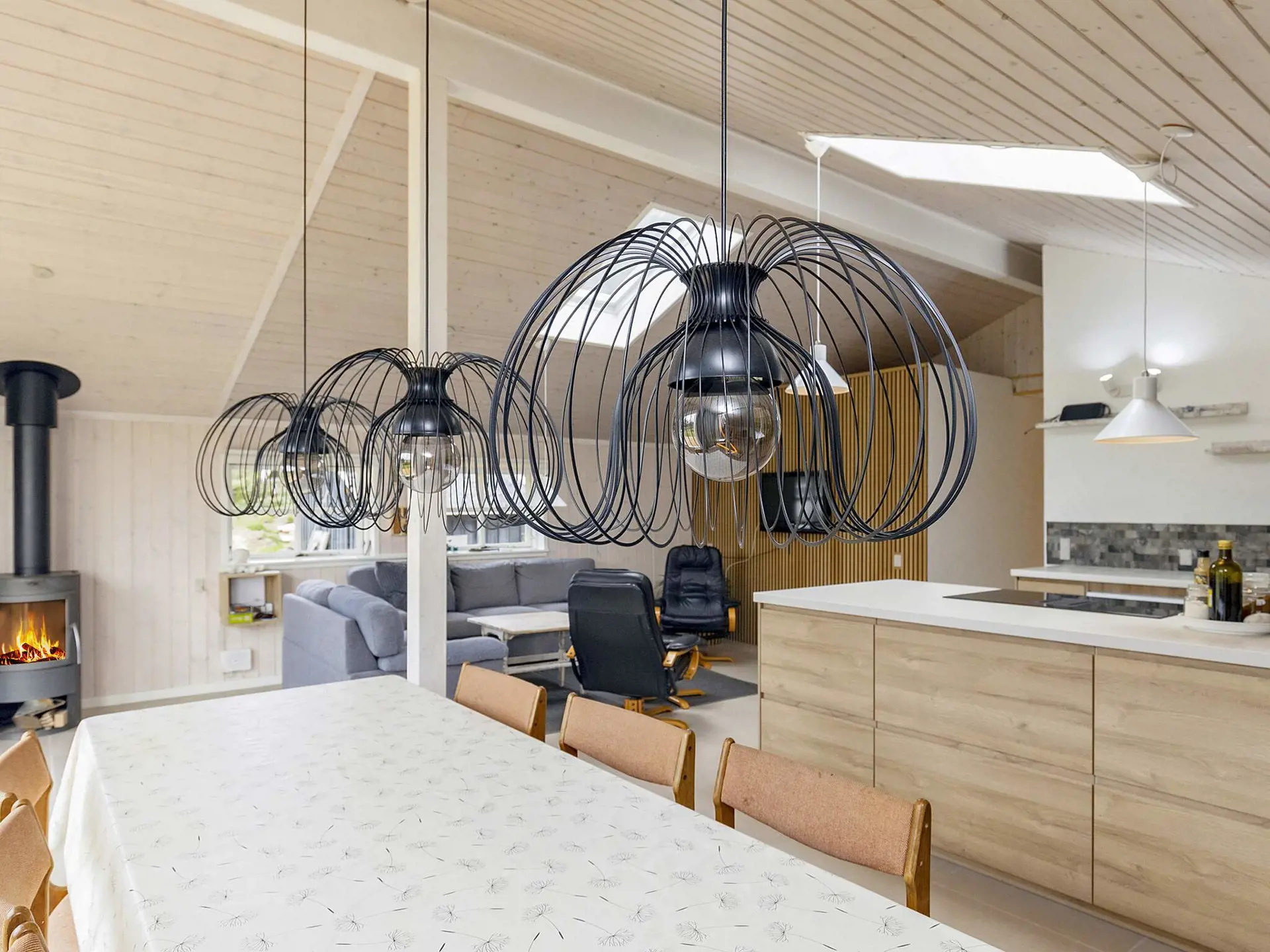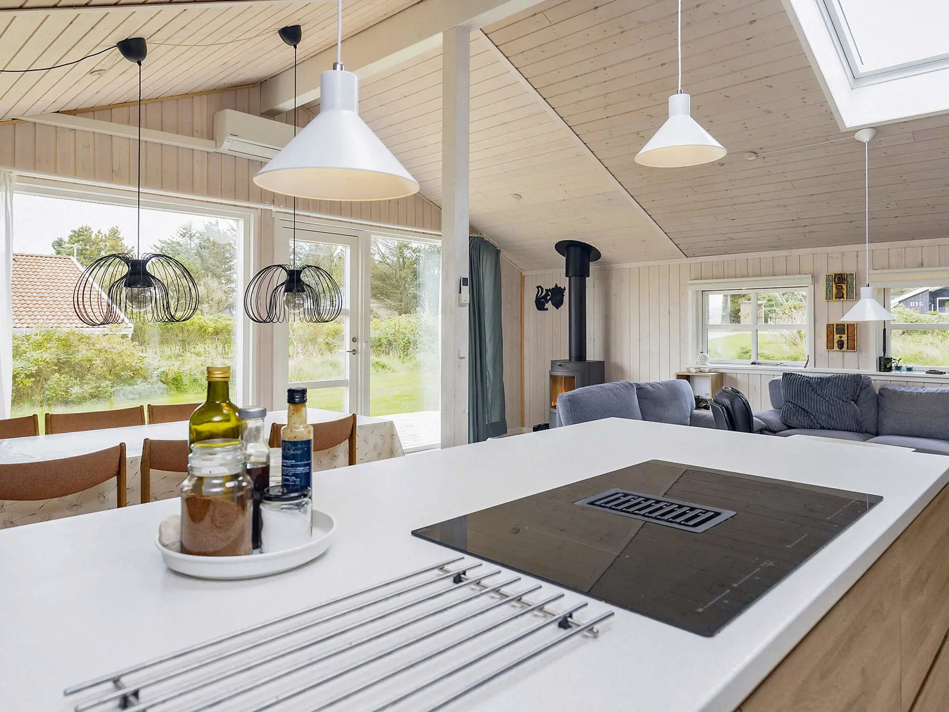 Es bietet einen wohnlichen Rahmen für einen Familienurlaub unweit der herrlichen Nordseeküste. Im Ferienhaus gibt es einen offenen Küchen-/Wohnbereich für gemeinsame Aktivitäten, inklusive Essecke und Holzofen für kühlere Jahreszeiten. In der Küche u.a. Geschirrspüler, Mikrowelle und Abzugshaube. Zur technischen Ausstattung des Hauses zählen WLAN und Chromecast zum Streamen eigener Anbieter.