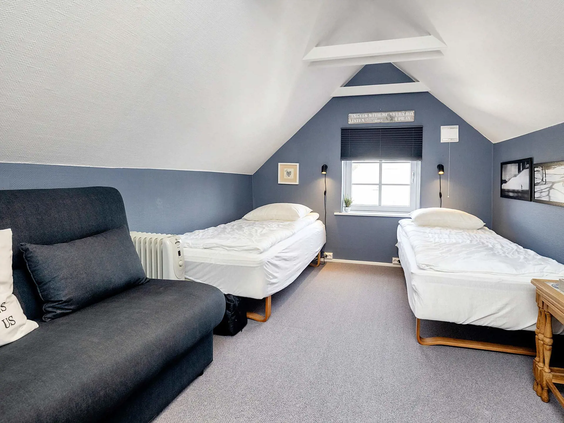 Das einst 1877 erbaute solide Haus ist nach den persönlichen Vorstellungen des Eigentümers individuell eingerichtet und wurde zuletzt im Jahre 2000 grundlegend renoviert. Es hat einen offenen Küchen-/Wohnbereich mit Holzofen. Vom Wohnbereich hat man Zugang zu einem großen, hellen Schlafzimmer mit Doppelbett. In der oberen Etage befinden sich 2 Einzelbetten sowie eine Schlafcouch für eine Person. Dort gibt es auch viel Platz für spielende Kinder. Einfaches Bad im Haus mit Dusche/WC. Zudem Waschmaschine und Wäschetrockner vorhanden.