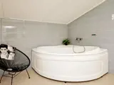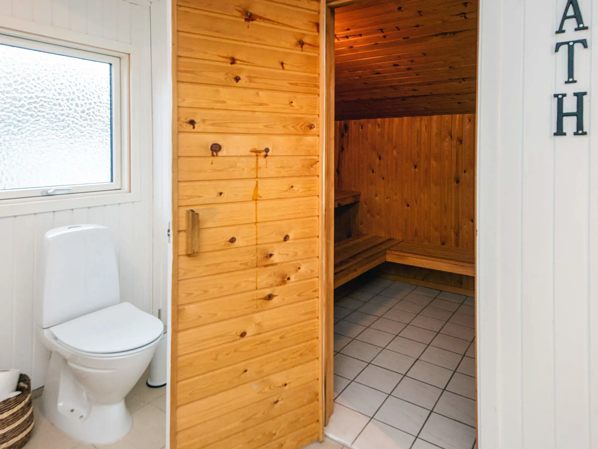 Es bietet im Bad Whirlpool und Zugang zur Sauna. Wohnzimmer in offener Verbindung mit der Küche, dazu vier Schlafzimmer mit Betten von 2025 mit den Maßen 160 x 200 cm, 140 x 200 cm, 120 x 200 cm und 70 x 200 cm. Außerdem Hems und Badezimmer mit Fußbodenheizung im Haus.