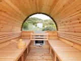 Es steht sowohl eine offene als auch eine überdachte Terrassenfläche zur Auswahl am Haus. In unmittelbarer Nähe der Terrasse befindet sich eine urige Saunatonne für 6-8 Personen. In der Garage finden Sie verschiedene Freizeitangebote wie Tischtennis, Airhockey (klein) und Darts.