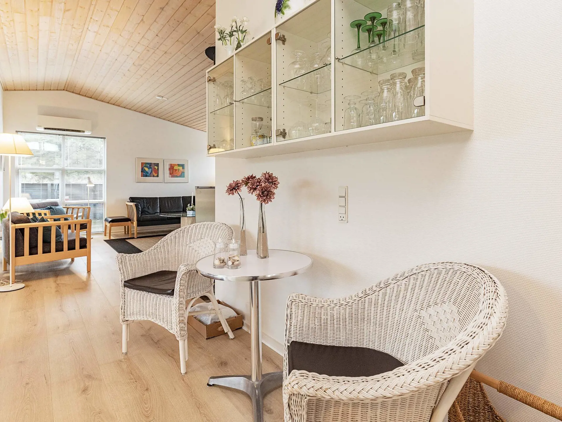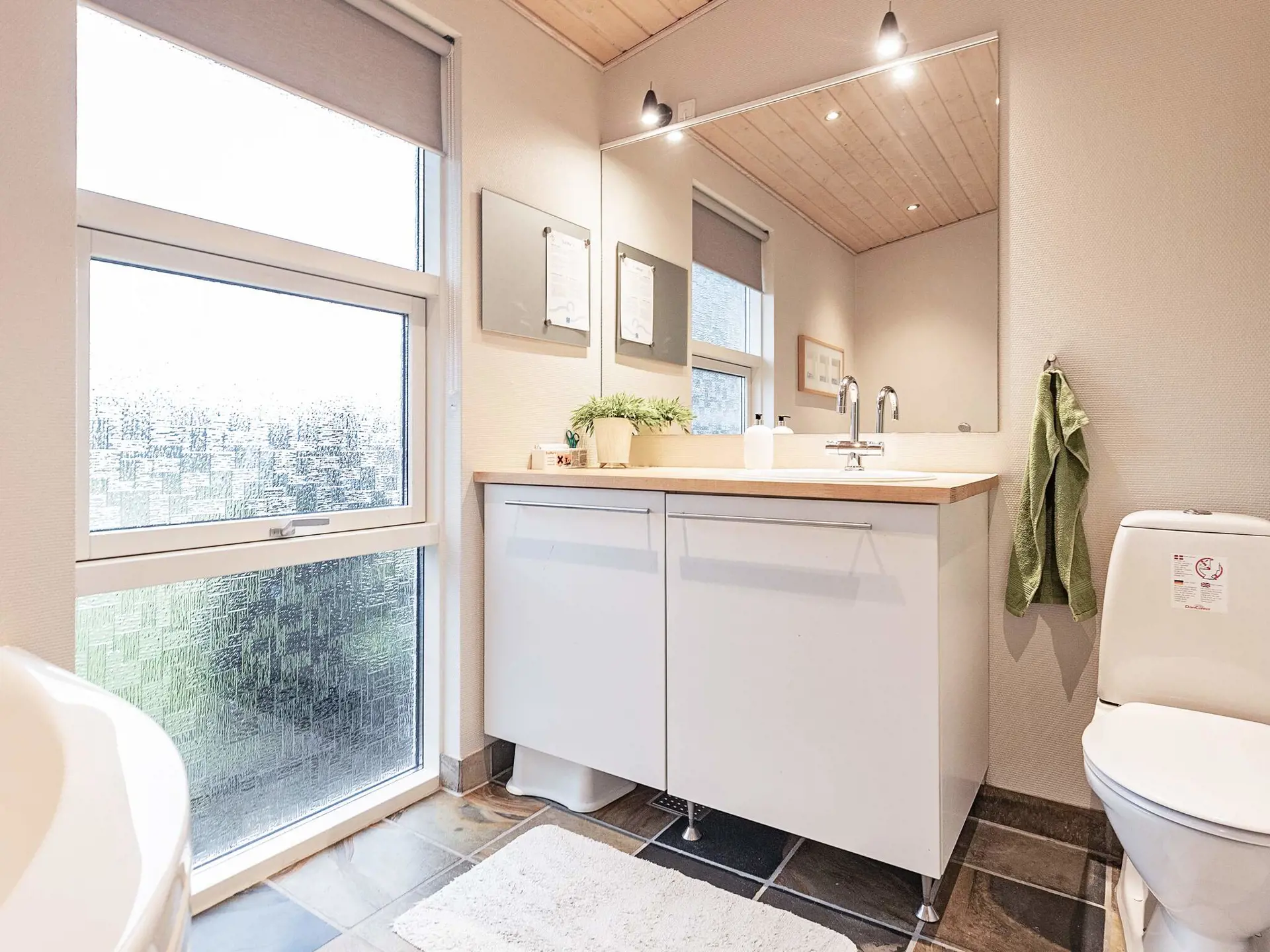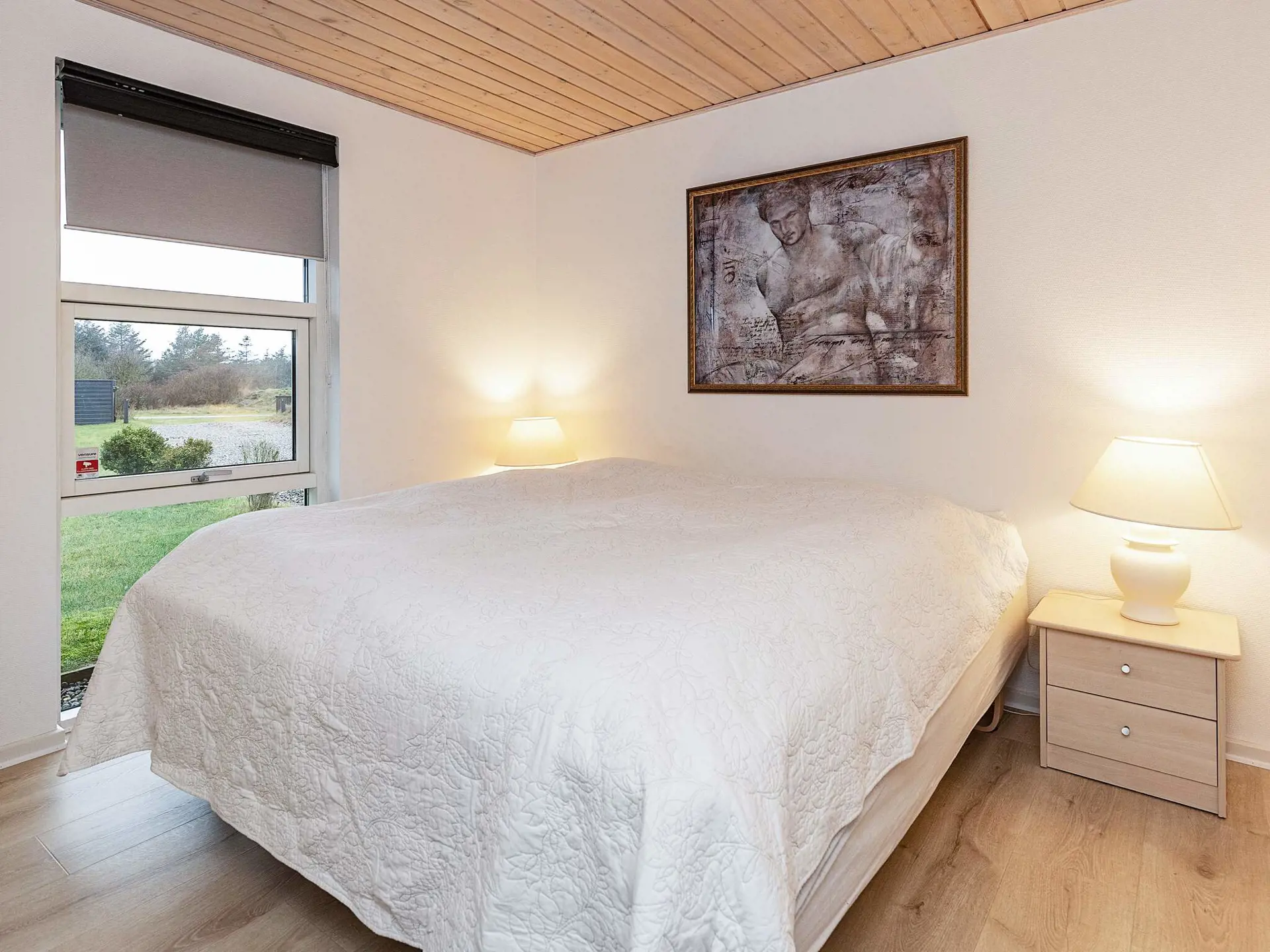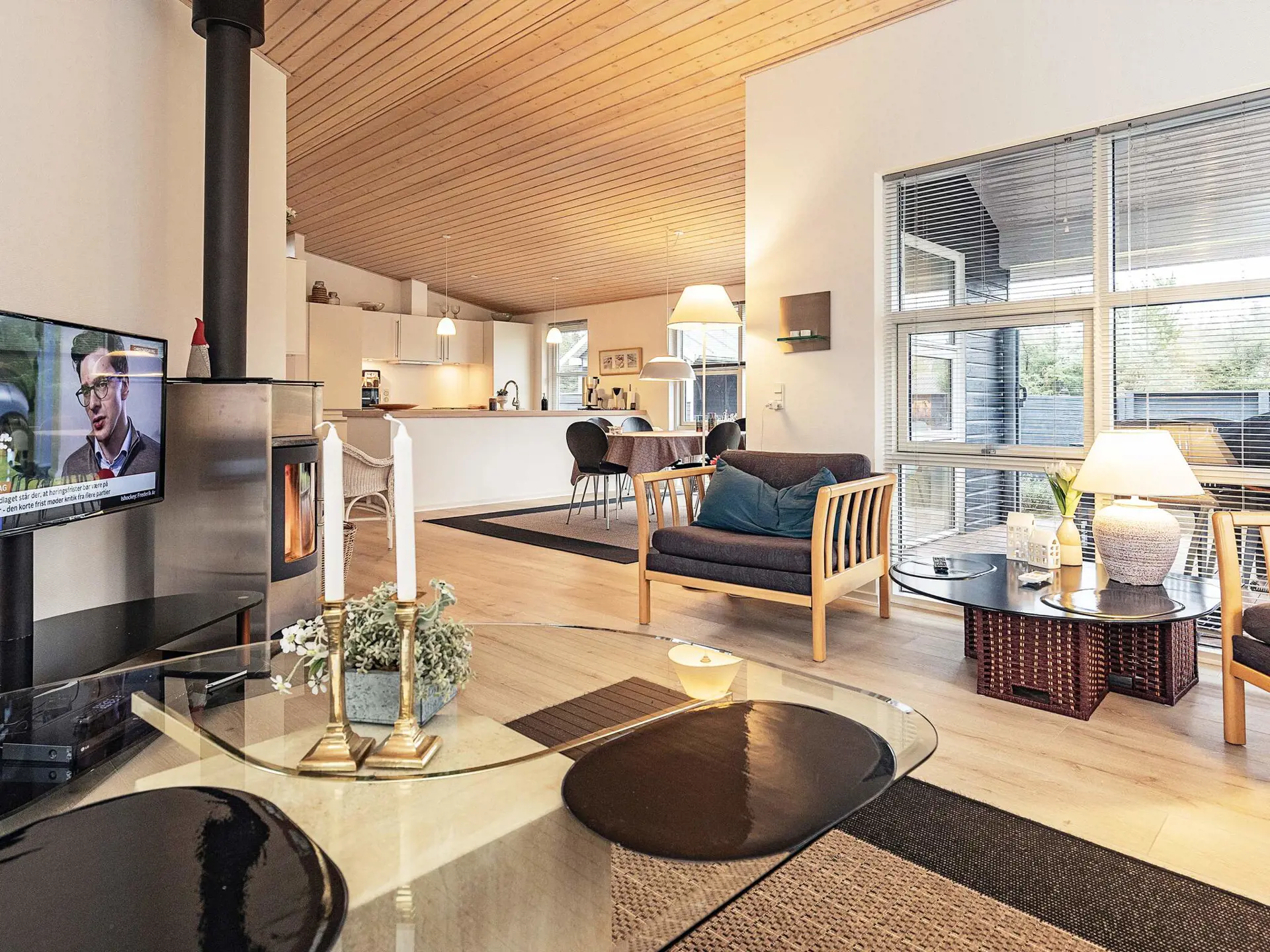 Modernes Ferienhaus mit geschmackvoller, persönlicher Einrichtung und großen, hellen Räumen. Das zuletzt 2014 renovierte Ferienhaus bietet ein Badezimmer mit Whirlpool, Dusche und Fußbodenheizung, einen offenen Küchen-Wohnbereich für das Familienleben sowie drei Schlafzimmer und einen Hems. Die Einrichtung ist im modernen, typisch dänischen Ferienhausstil gehalten. Wegen der großen Fensterflächen ist es wunderbar hell im Haus. Draußen auf der umschlossenen Südwestterrasse können Sie ungestört entspannen. Die Kinder können auf der Rasenfläche spielen und toben oder schaukeln, im Sandkasten buddeln oder die Rutsche hinuntersausen.
