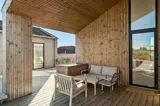 Wenn die Sonne hoch am Himmel steht, bietet es sich an, an den Strand zu gehen oder die wunderschöne Natur rund um Grønhøj zu erkunden – aber vergiss nicht, auch Zeit einzuplanen, um auf der herrlichen Terrasse des Hauses zu entspannen. Von allen Schlafzimmern sowie vom Wohnzimmer und dem Aktivitätsraum gibt es direkten Zugang zur Holzterrasse, sodass der Außenbereich wie eine natürliche Verlängerung des Hauses wirkt. Je nach Wetter und Stimmung kannst du dich unter freiem Himmel oder in einem der überdachten Bereiche niederlassen. Und wenn es draußen ein wenig kühl ist, fühlt sich ein warmes Bad im wunderbaren Außen-Whirlpool der Terrasse besonders wohltuend an.