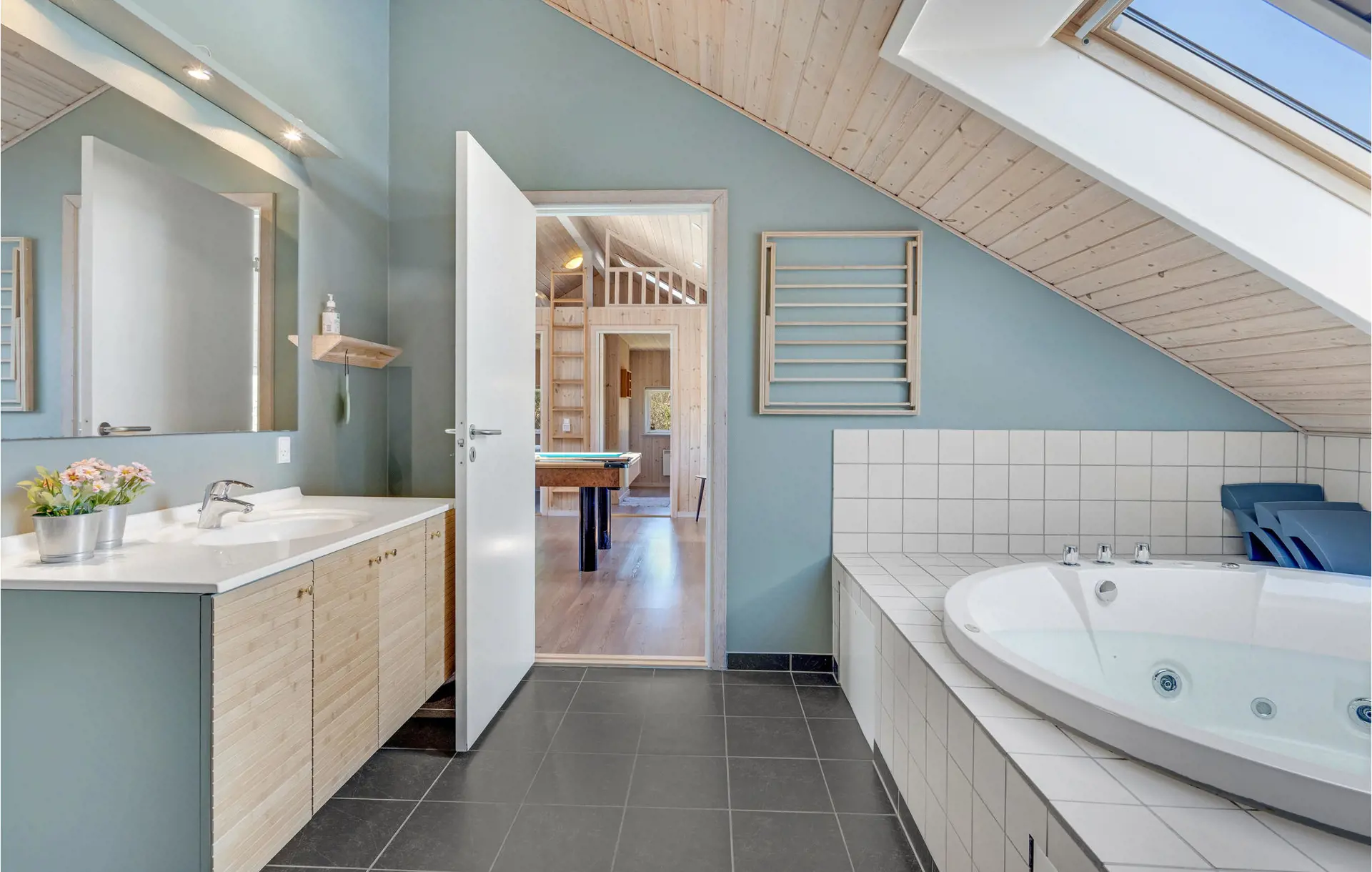 Die helle Holzverkleidung und die große Fensterfront verleihen dem Haus seinen gemütlichen Charme. Hier finden 8 Personen Platz. Vergnügen Sie sich im 25 m² großen Hobbyraum mit unter anderem Billard und Tischtennis. Der Fernseher bietet die Möglichkeit zum Streamen. Eines der Bäder besitzt einen Whirlpool und eine Sauna.