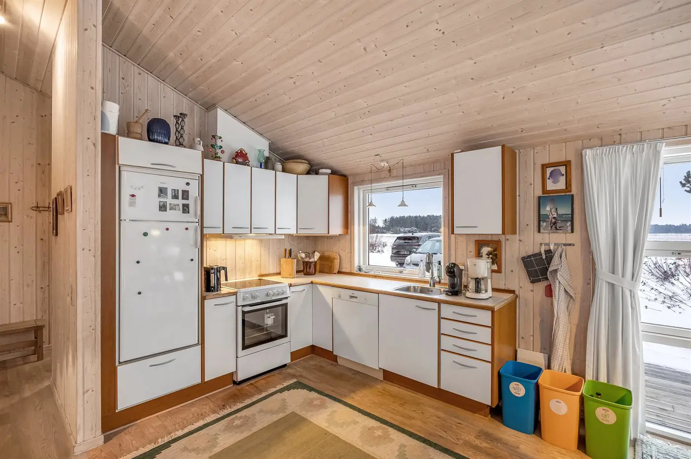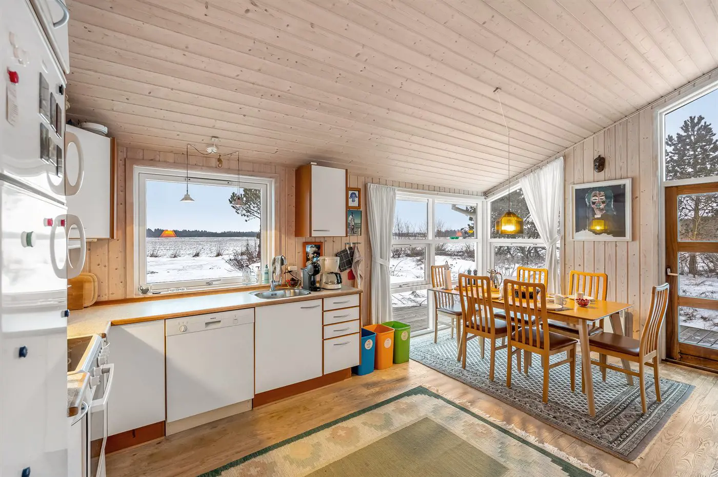 Dieses hell eingerichtete Ferienhaus liegt in fußläufiger Entfernung zum breiten Sandstrand von Grønhøj.