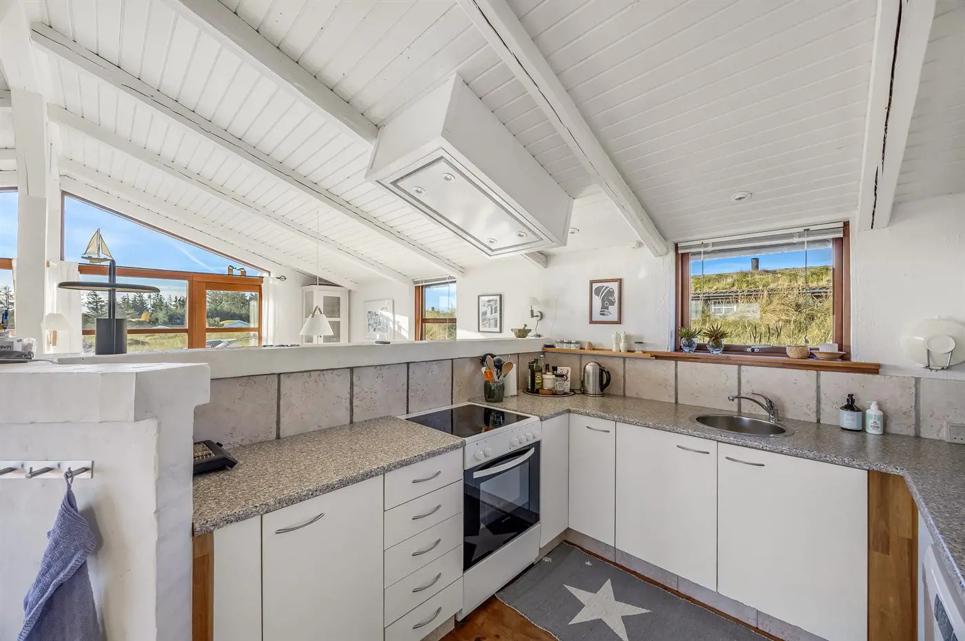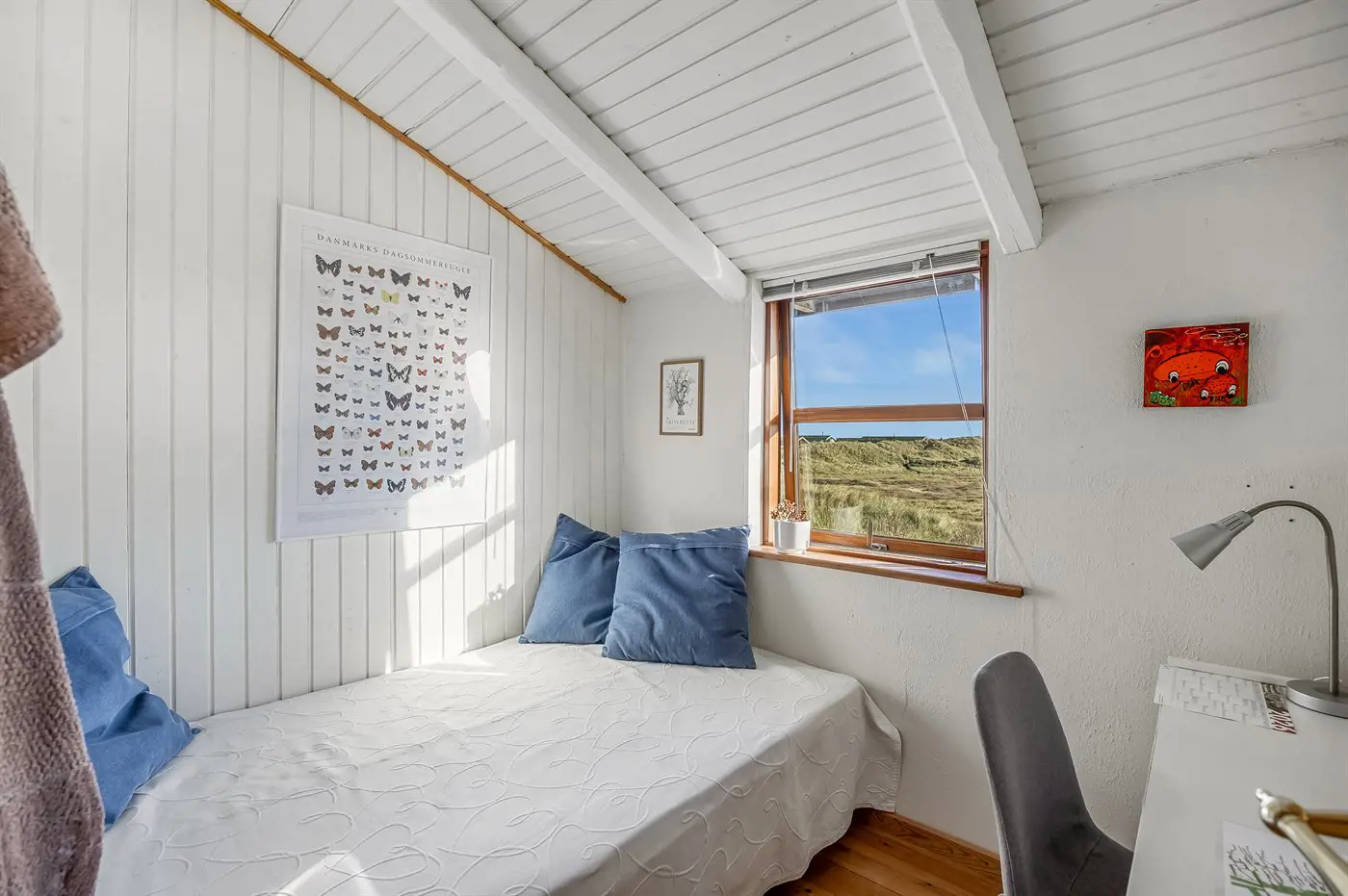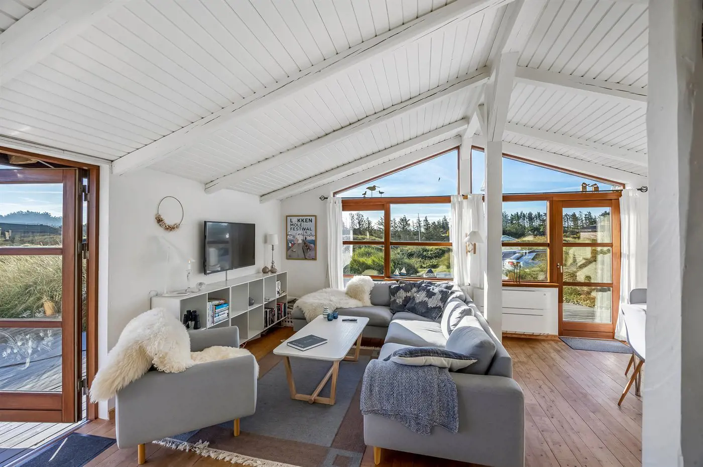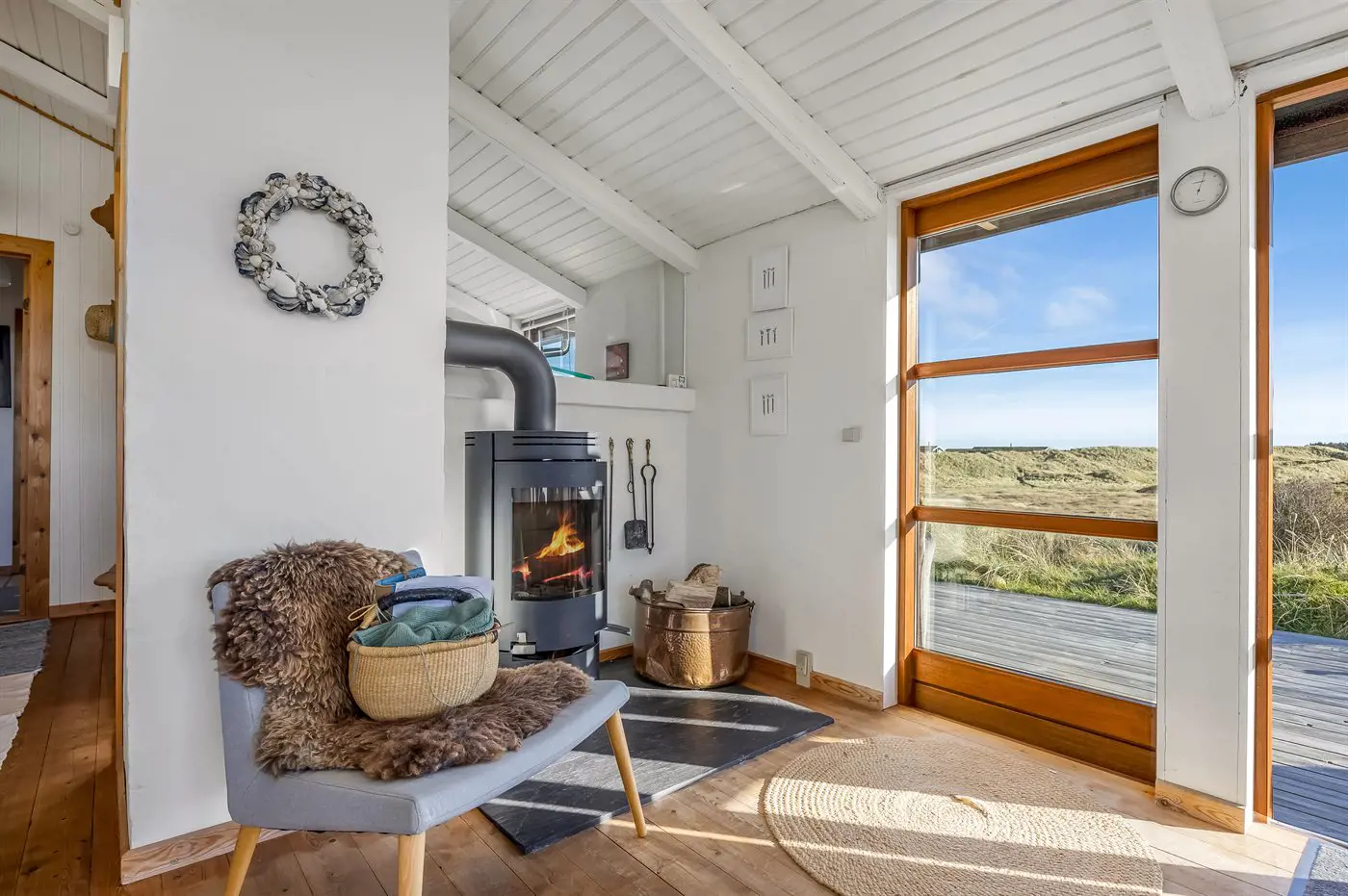 Schönes Ferienhaus in der naturschönen Gebiet Kettrup Bjerge. Das Haus liegt erhöht zwischen Wald und Meer mit Blick auf die geschützten Flächen, auf denen sich alle Tiere der Natur frei bewegen. Die schönen Terrassen und der Aussichtspunkt geben dir die Möglichkeit, windgeschützte Plätze zu finden – ganz gleich bei welchem Wetter.
