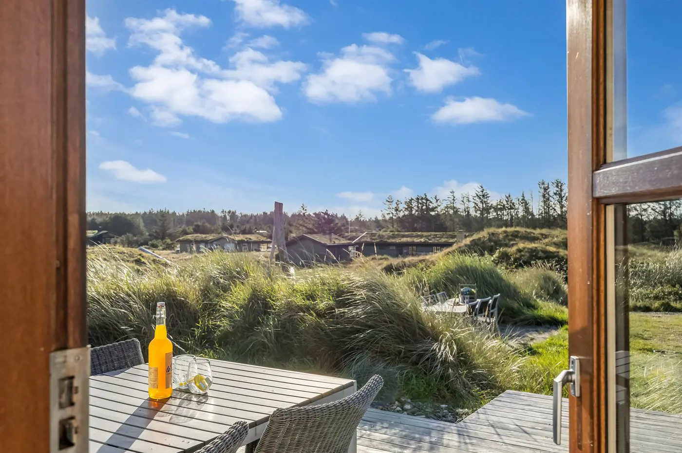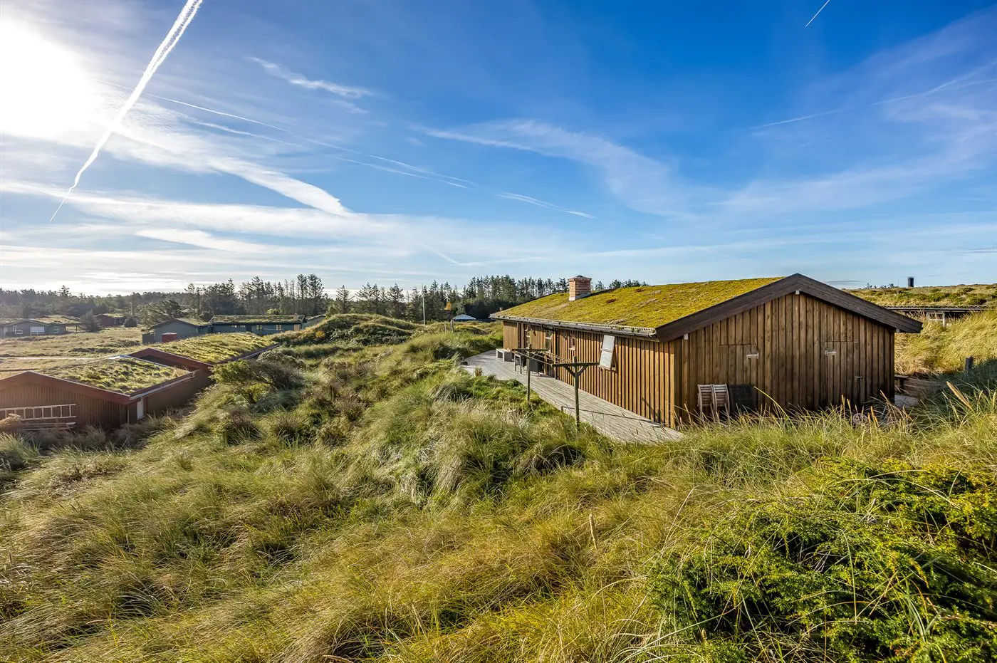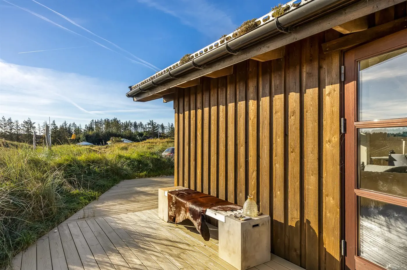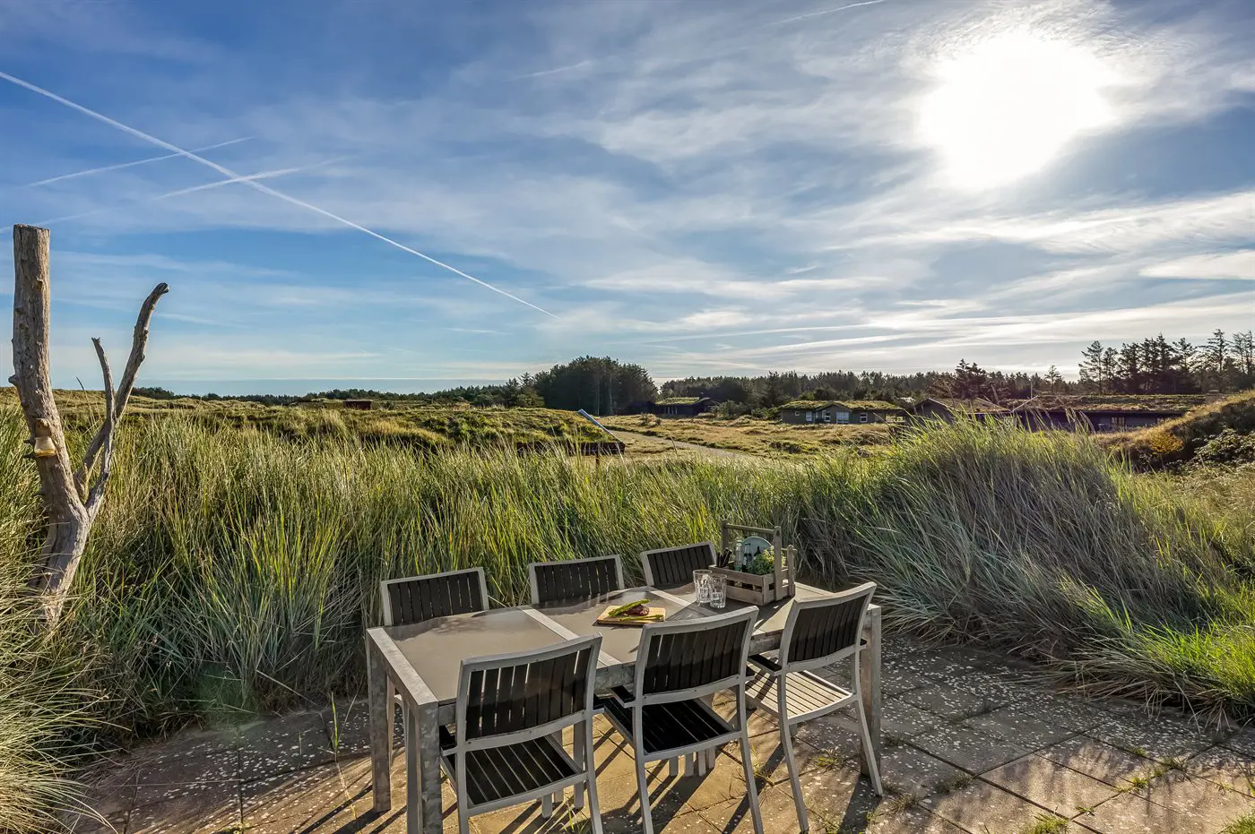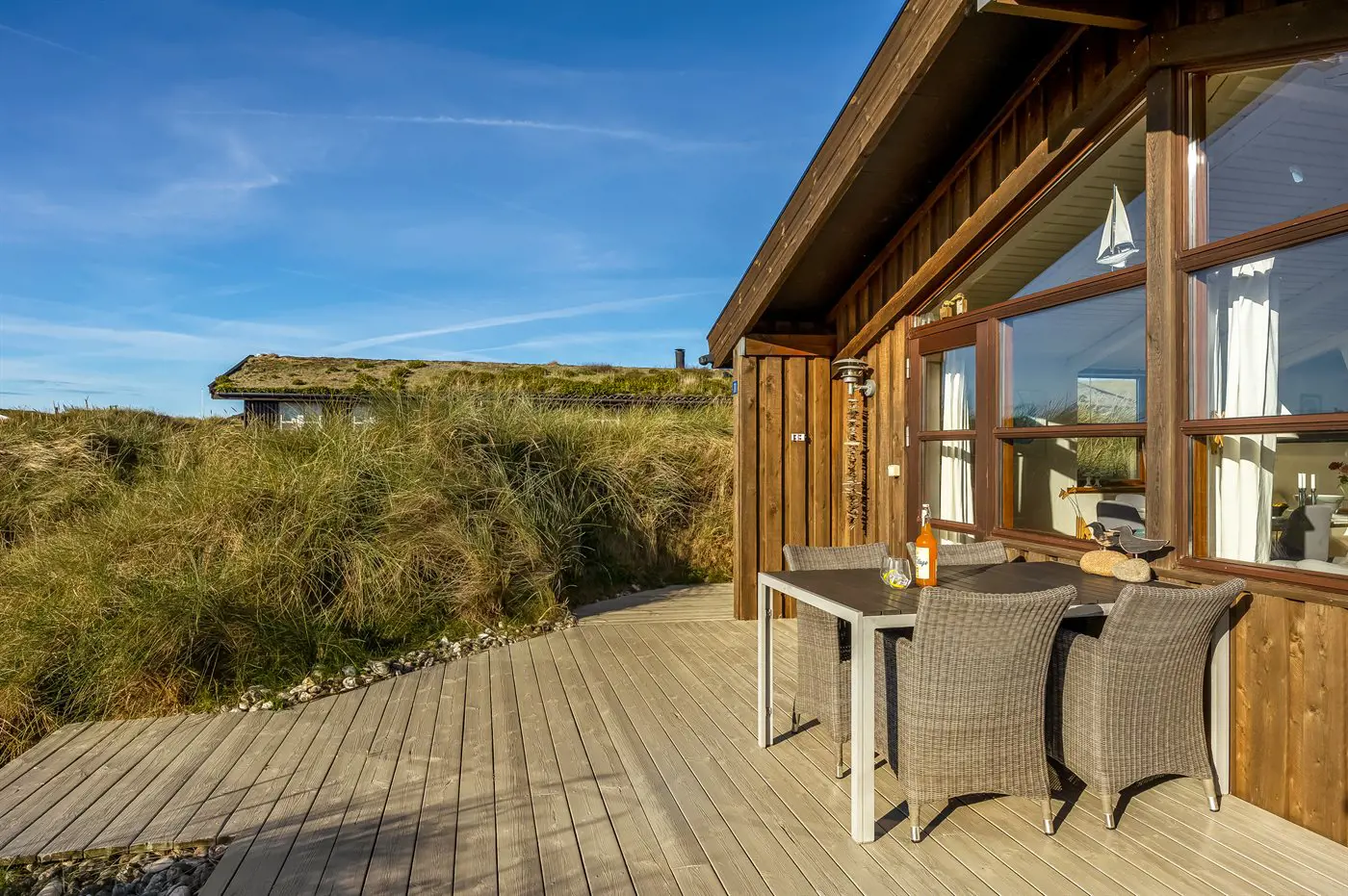 Die Ferienunterkunft liegt auf einem 1280 m² großen Dünengrundstück. Die Entfernung zum Meer beträgt 750 m. Die nächste Einkaufsmöglichkeit liegt 6000 m entfernt. Es steht ein offenes Terrassenareal zur Verfügung. Außendusche. Es steht ein Grill zur Verfügung. Parkplatz auf dem Grundstück.
