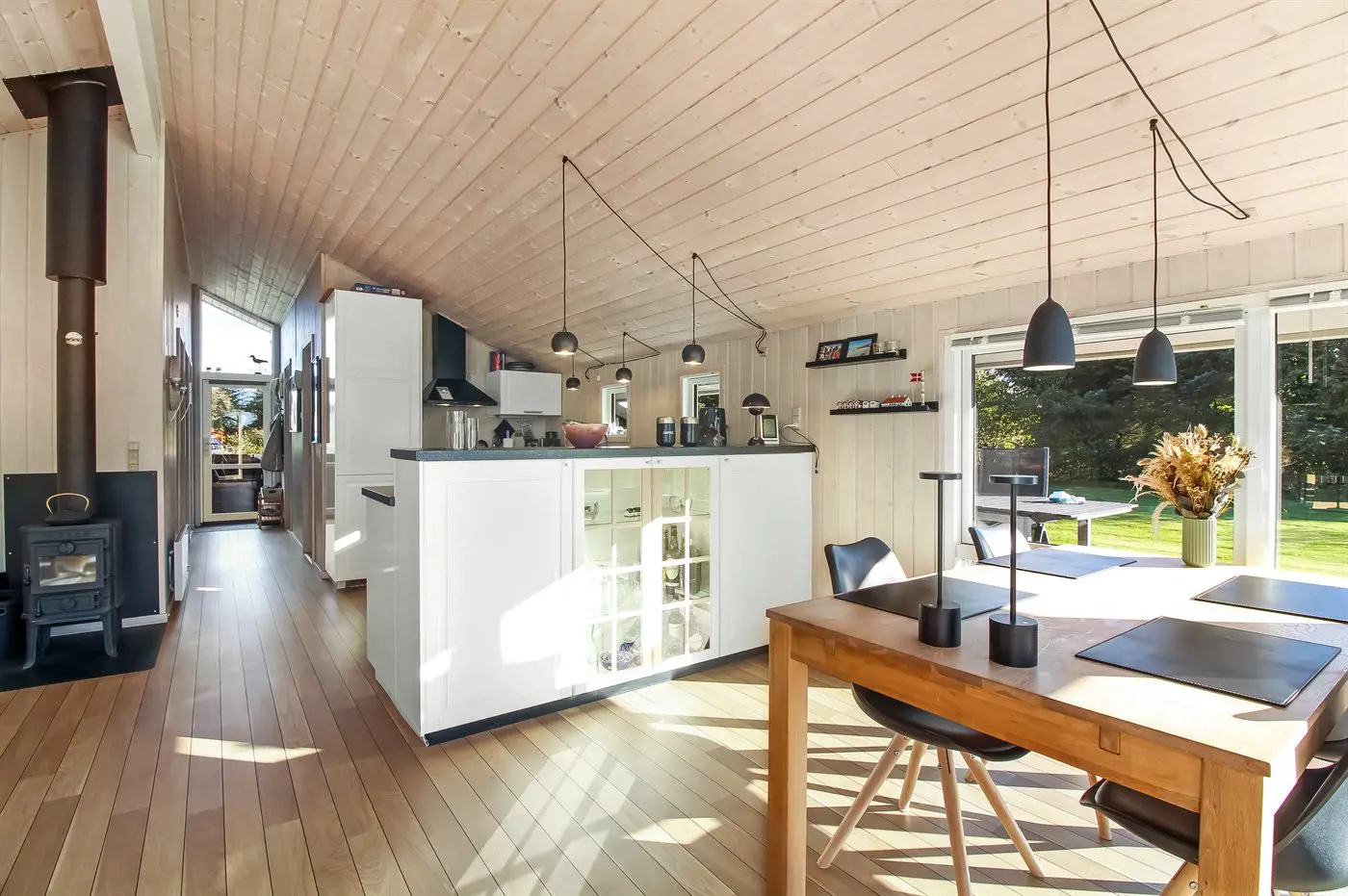 Das Ferienhaus eignet sich für 6 Personen sowie 2 Kleinkinder bis zu 3 Jahren. Die Ferienunterkunft hat eine Wohnfläche von 71 m² und wurde 1988 gebaut. 2015 wurde die Ferienunterkunft renoviert. Es ist erlaubt 1 Haustier mitzubringen. Die Ferienunterkunft ist mit energiefreundlicher Luft-Luft- Wärmepumpe ausgestattet. Tiefkühlmöglichkeit mit 50 Liter Nutzinhalt. Es gibt außerdem einen Kaminofen. Für die jüngsten Feriengäste sind 2 Kinderhochstühle vorhanden.