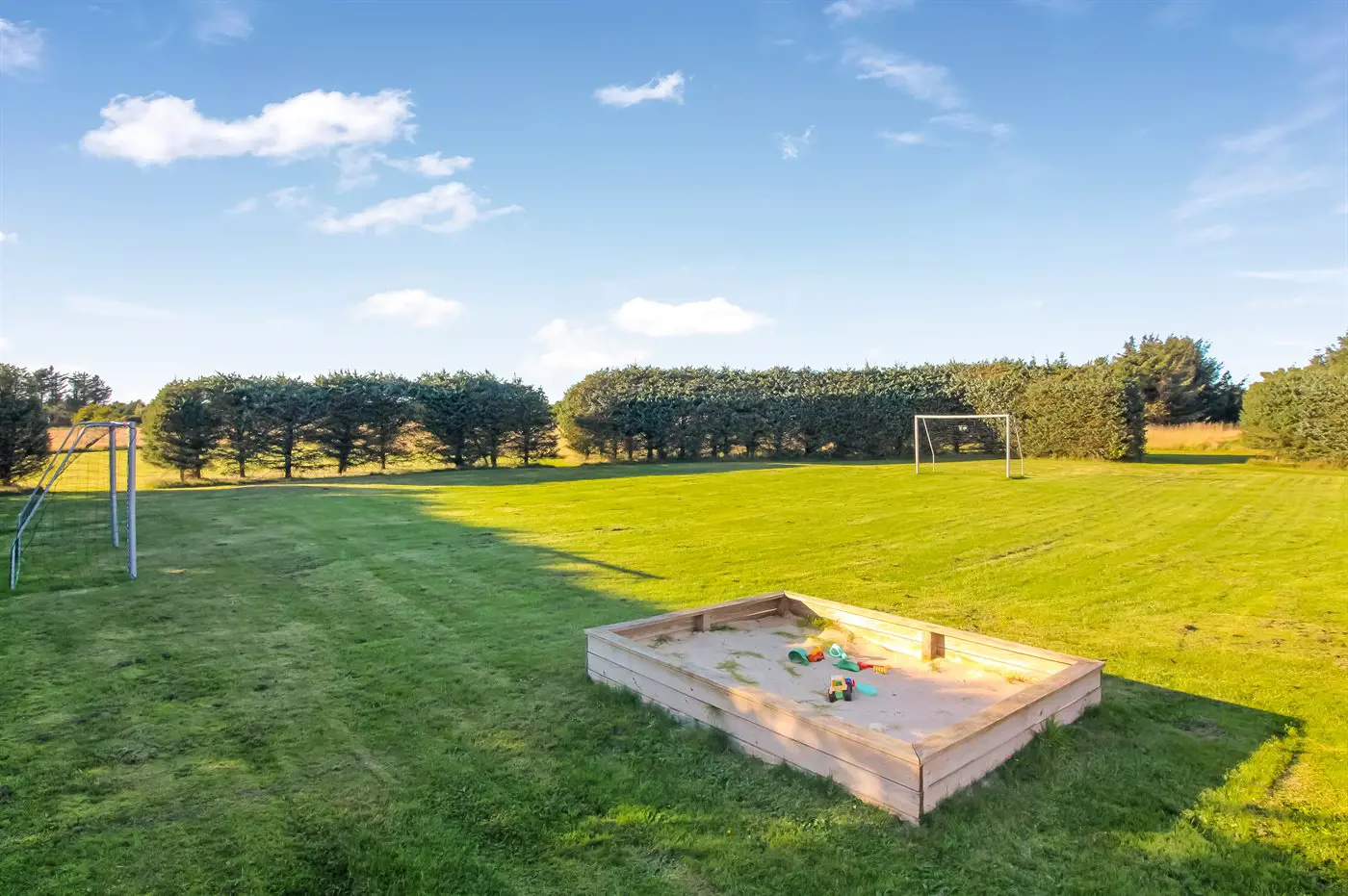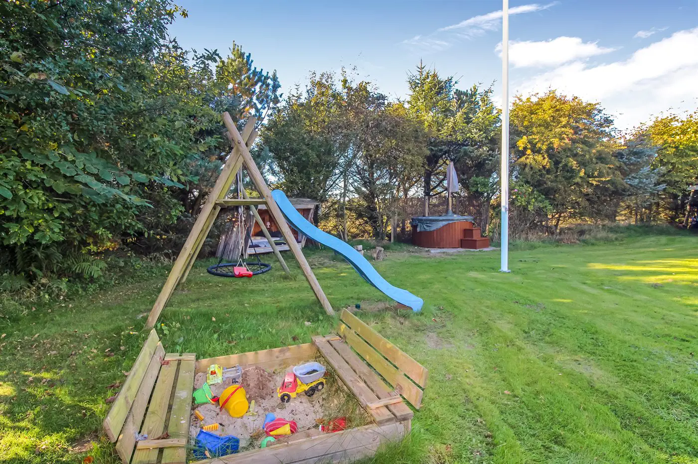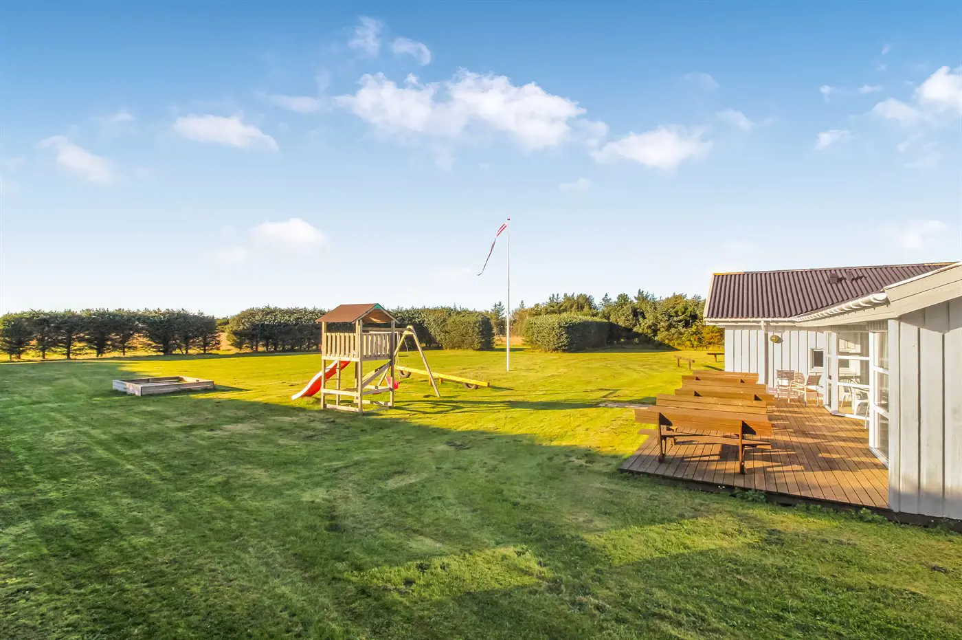 Die Ferienunterkunft liegt auf einem 1320 m² großen Gartengrundstück. Die Entfernung zum Meer beträgt 900 m. Die nächste Einkaufsmöglichkeit liegt 1000 m entfernt. Es steht ein offenes Terrassenareal zur Verfügung. Außerdem gibt es überdachte Terrasse. Schaukel. Spielturm. Rutsche. Fußballtor. Die Entfernung zu einem Spielplatz beträgt 150 m.Lagerfeuerstelle. Windschutzhütte. Außendusche. Es steht ein Grill zur Verfügung. Parkplatz auf dem Grundstück.