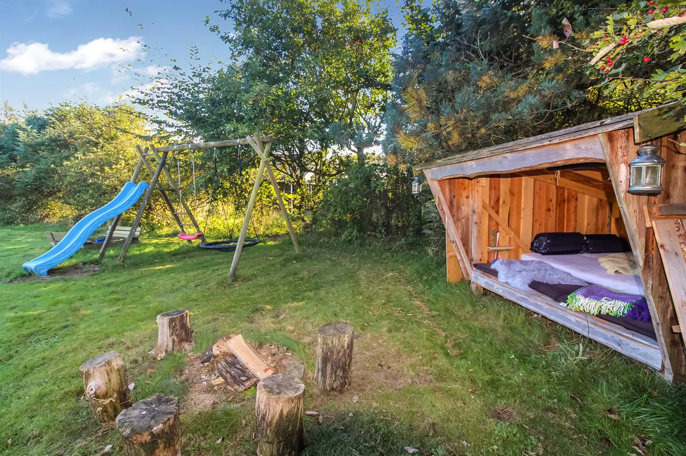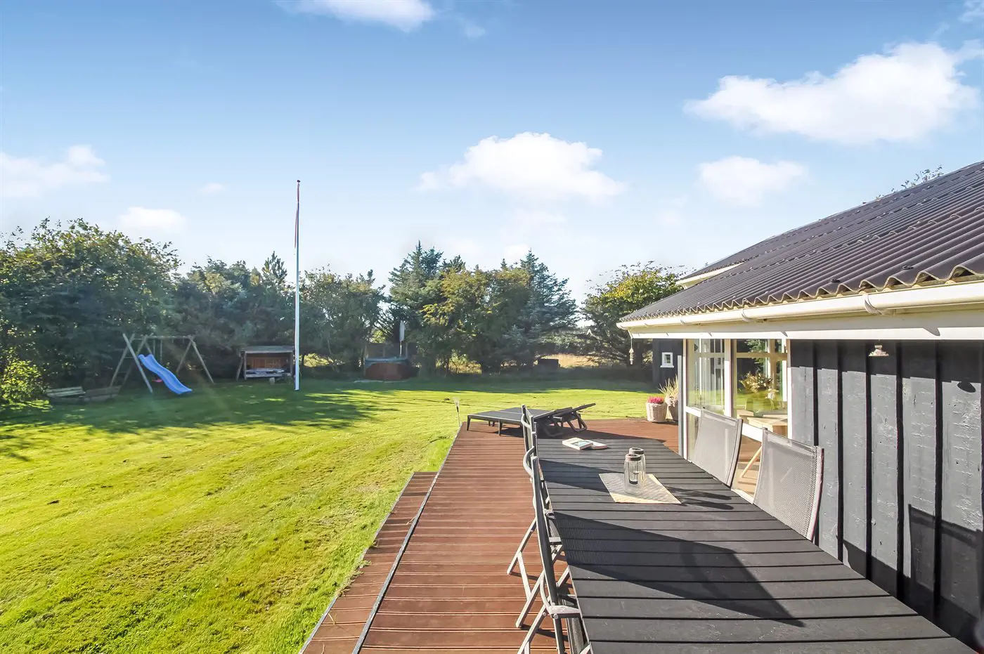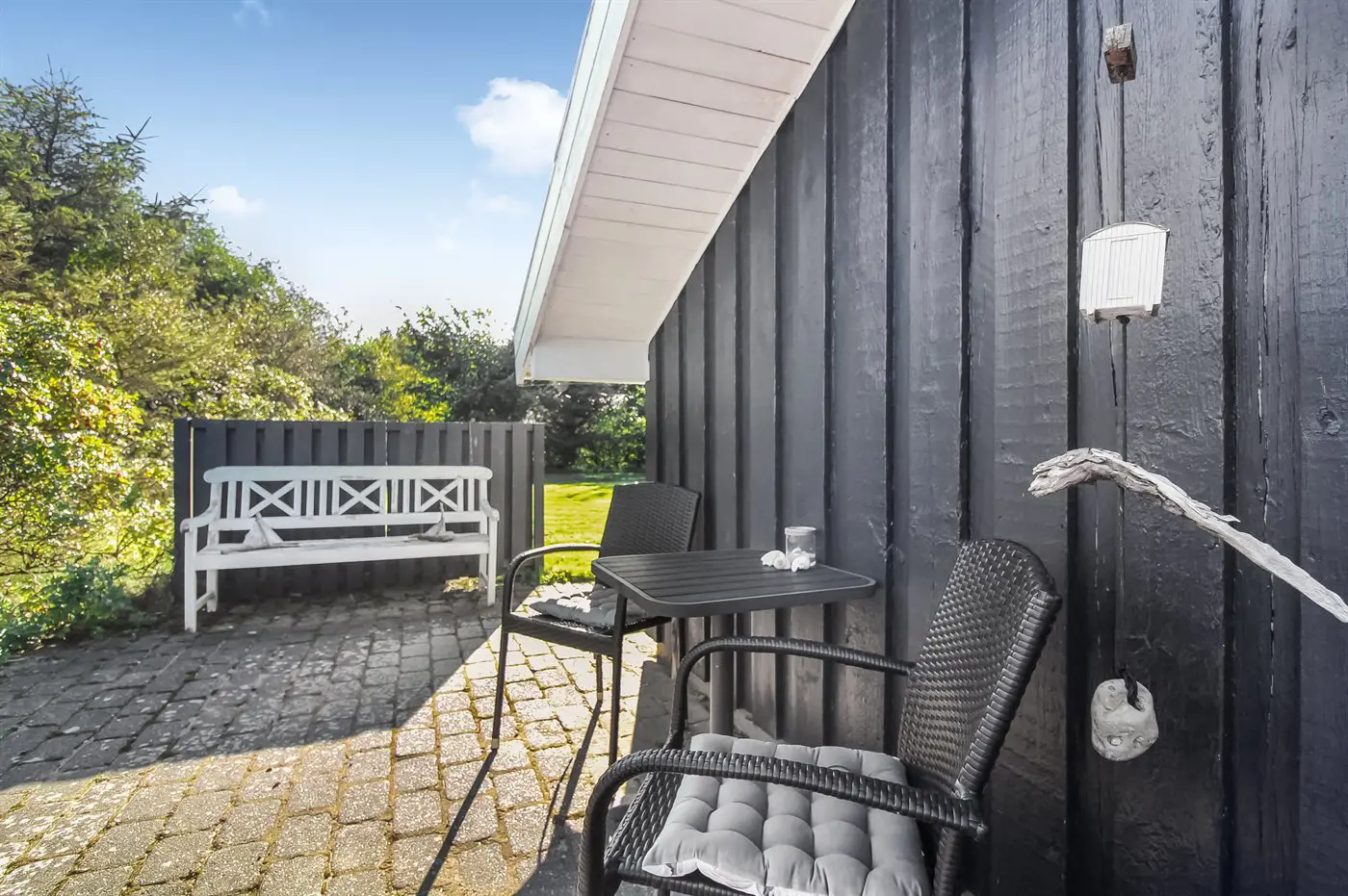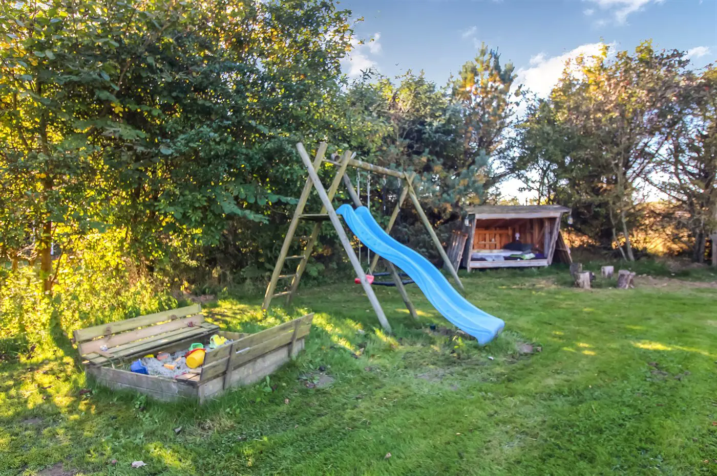 Die Ferienunterkunft liegt auf einem 1320 m² großen Gartengrundstück. Die Entfernung zum Meer beträgt 900 m. Die nächste Einkaufsmöglichkeit liegt 1000 m entfernt. Es steht ein offenes Terrassenareal zur Verfügung. Außerdem gibt es überdachte Terrasse. Schaukel. Spielturm. Rutsche. Fußballtor. Die Entfernung zu einem Spielplatz beträgt 150 m.Lagerfeuerstelle. Windschutzhütte. Außendusche. Es steht ein Grill zur Verfügung. Parkplatz auf dem Grundstück.