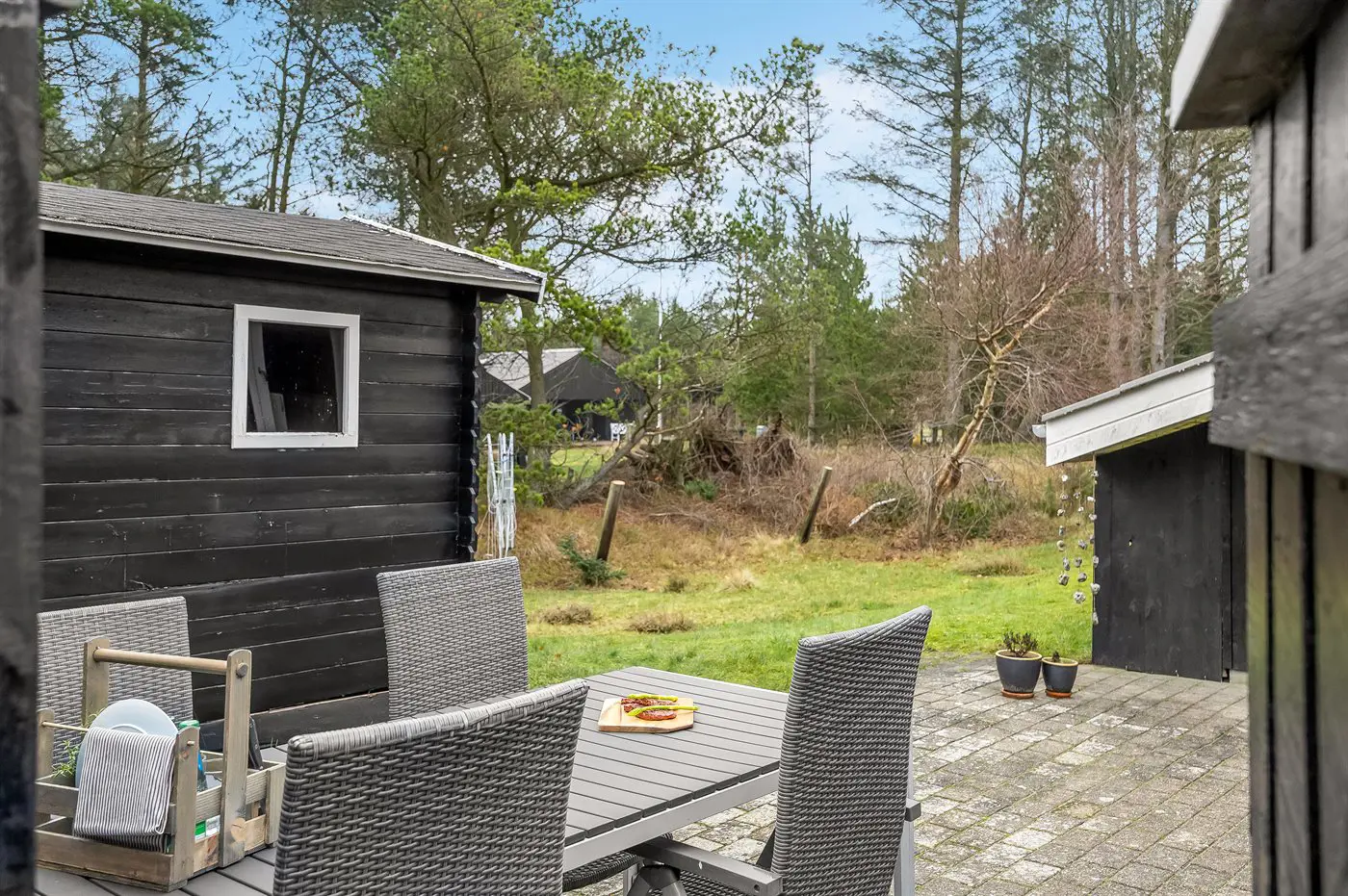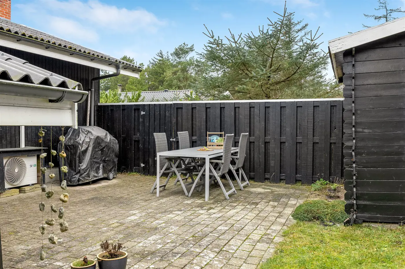 Die Ferienunterkunft liegt auf einem 1302 m² großen Naturgrundstück. Die Entfernung zum Meer beträgt 850 m. Die nächste Einkaufsmöglichkeit liegt 150 m entfernt. Es steht ein offenes Terrassenareal zur Verfügung. Es steht ein Grill zur Verfügung. Parkplatz auf dem Grundstück.