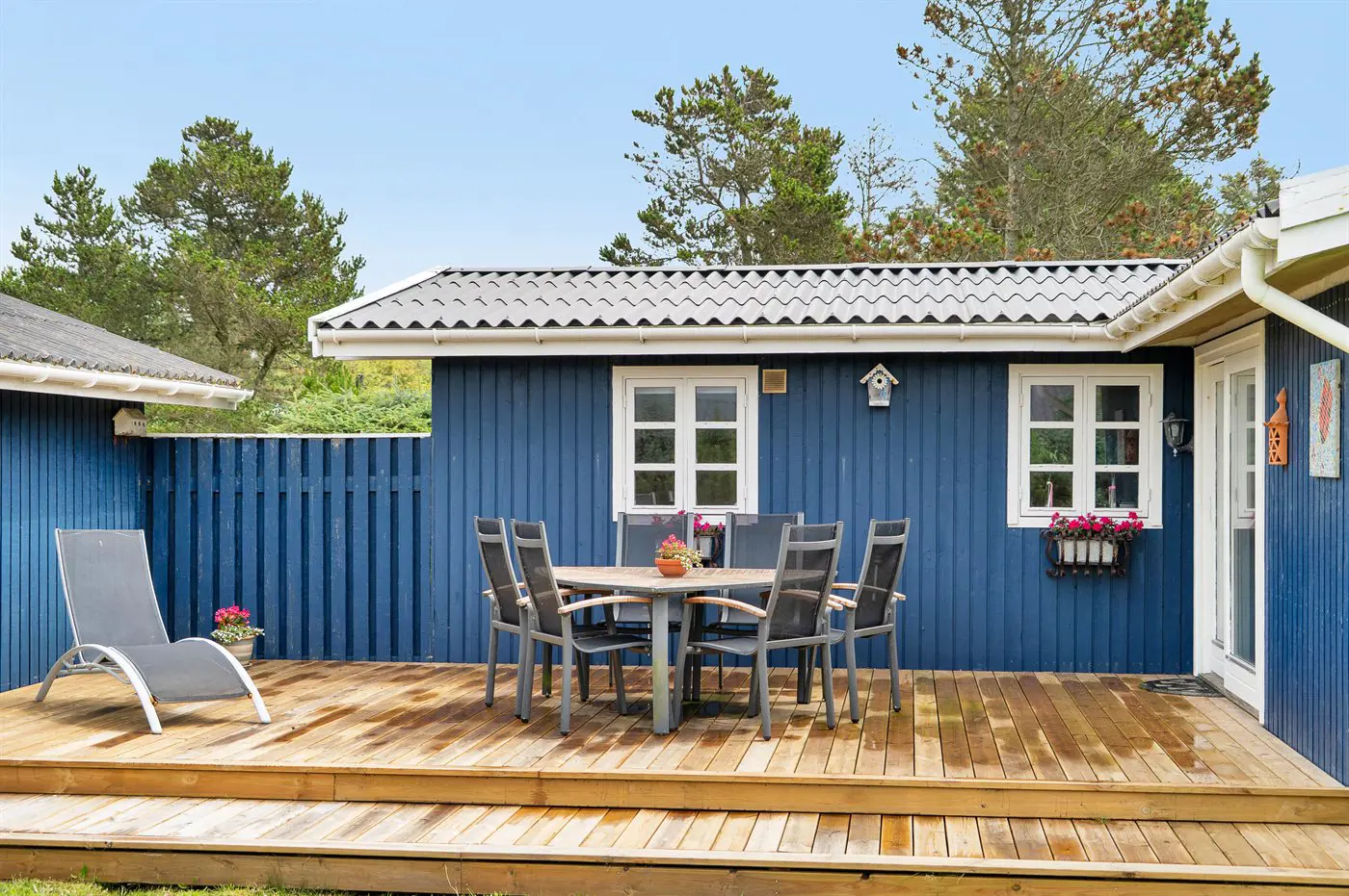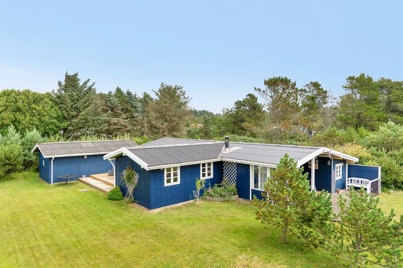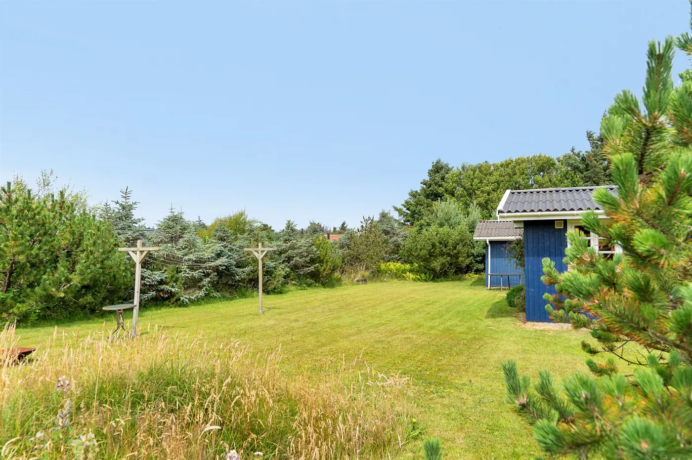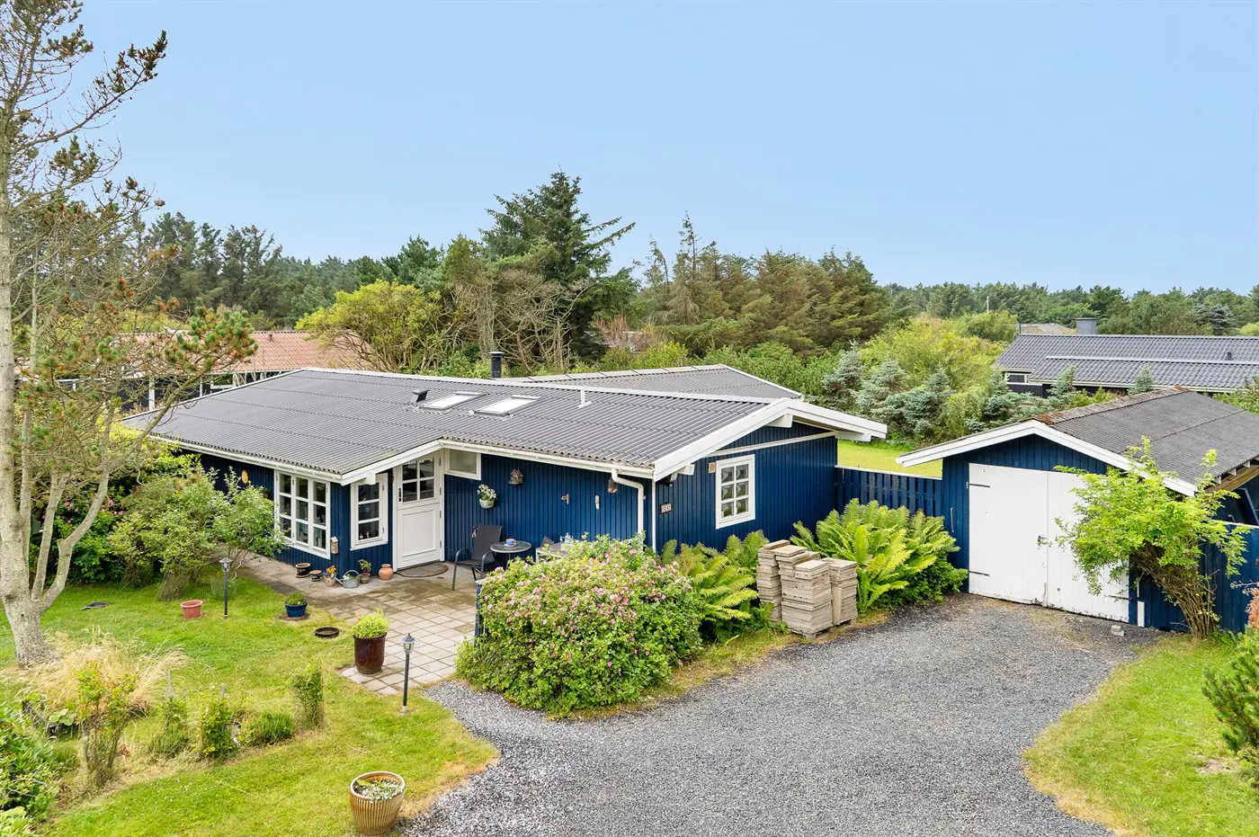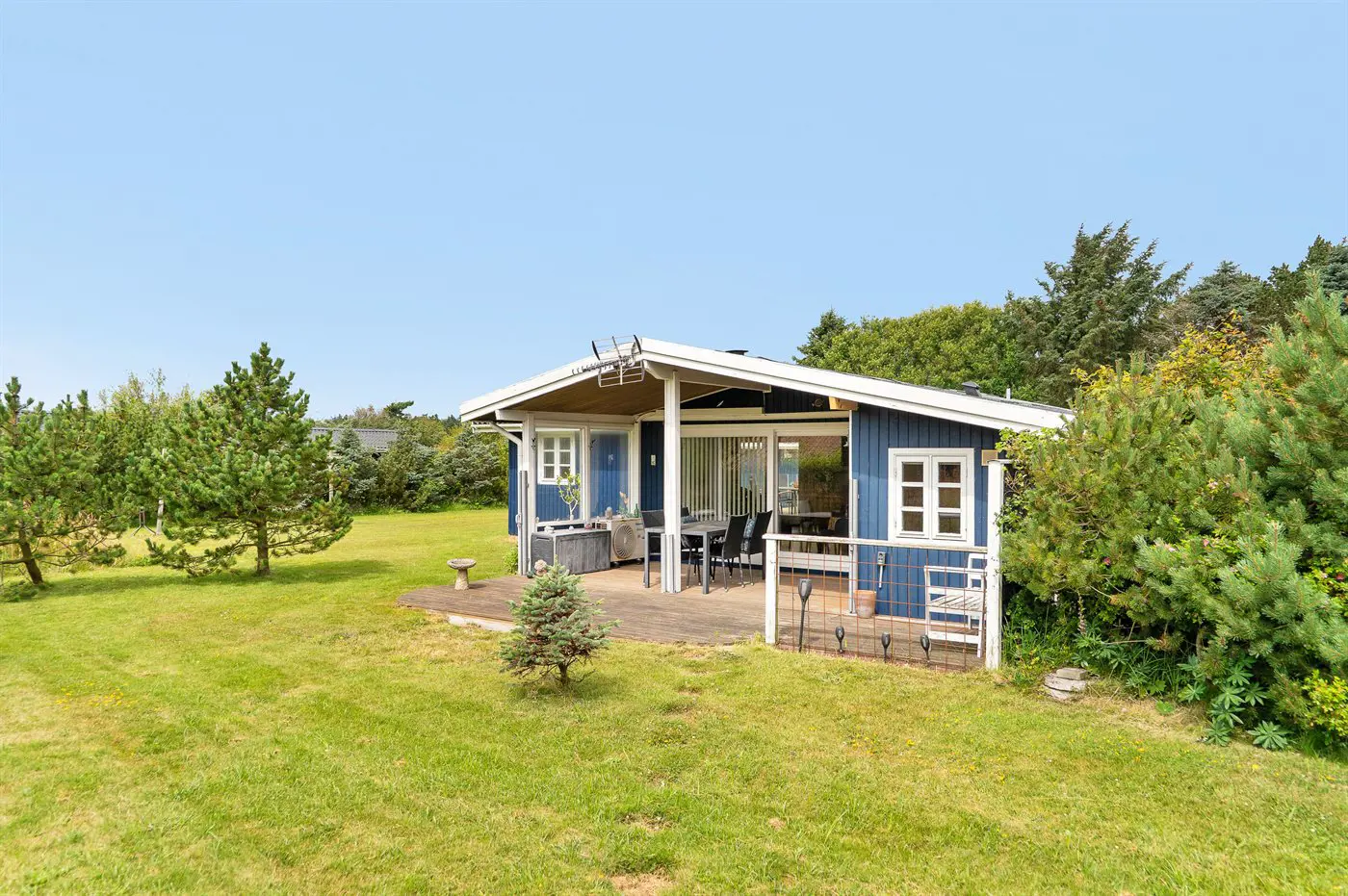 Die Ferienunterkunft liegt auf einem 1295 m² großen Naturgrundstück. Die Entfernung zum Meer beträgt 700 m. Die nächste Einkaufsmöglichkeit liegt 700 m entfernt. Es steht ein offenes Terrassenareal zur Verfügung. Außerdem gibt es überdachte Terrasse. Sandkasten.Lagerfeuerstelle. Außendusche. Es steht ein Grill zur Verfügung. Es ist ein Ladestecker für Elektroautos installiert. Ladestecker Typ 2. Mit einer Ladeleistung von 11 kW. Parkplatz auf dem Grundstück.