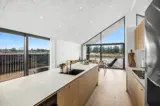 Die Küche ist mit amerikanischem Kühlschrank ausgestattet. Außerdem gibt es 4 Induktions-Kochzonen, Minibackofen, Umluftofen, Airfryer sowie Geschirrspüler.