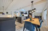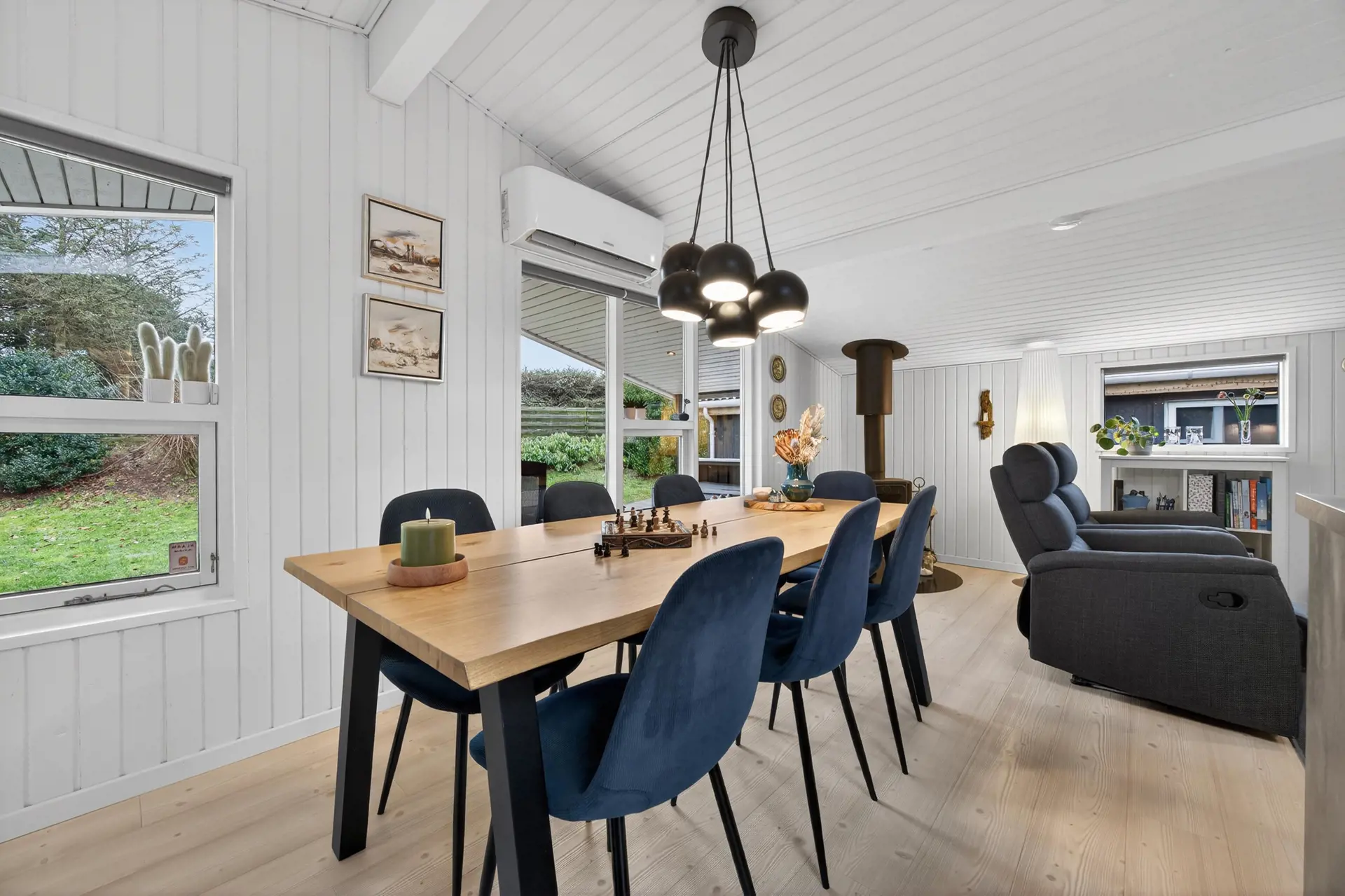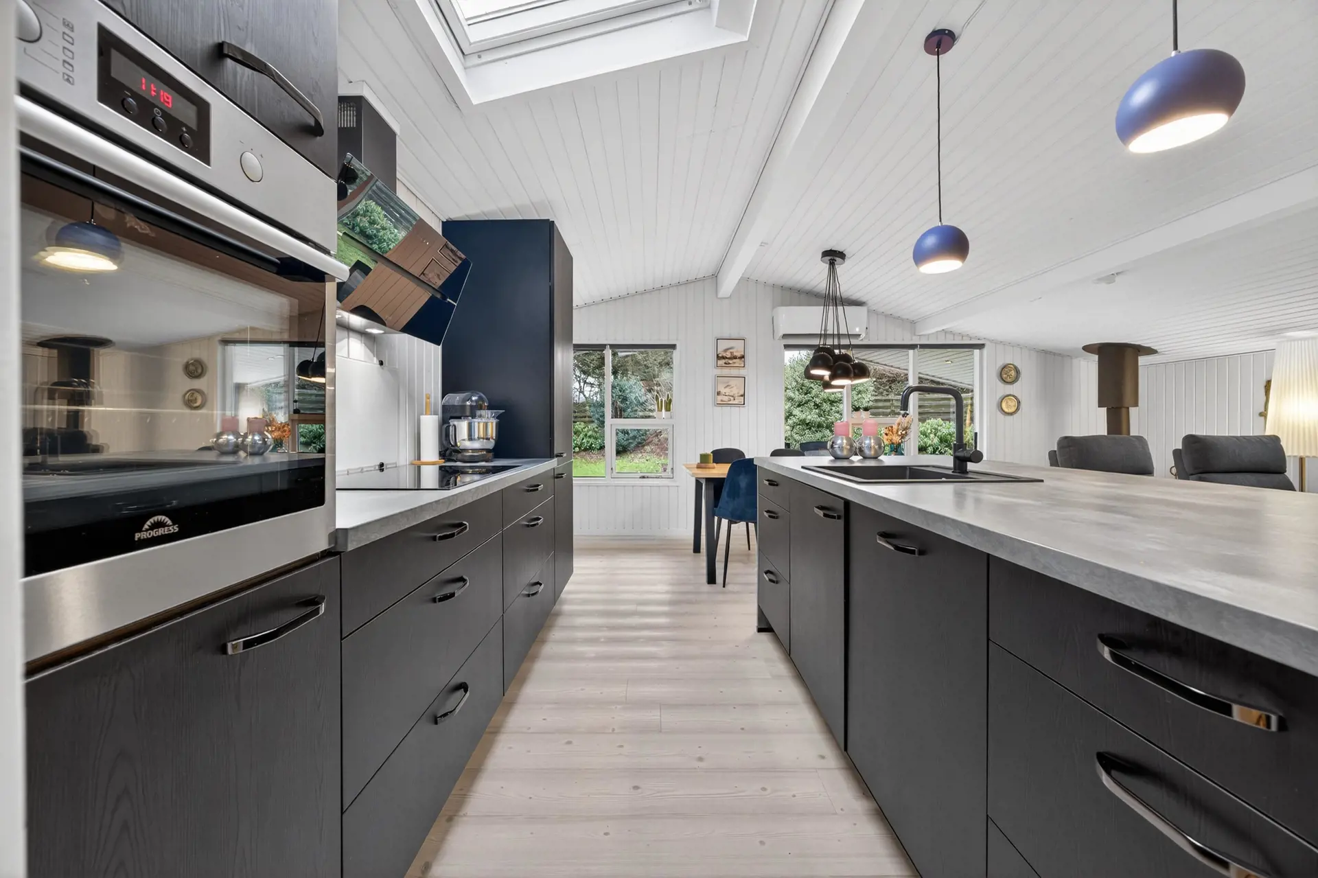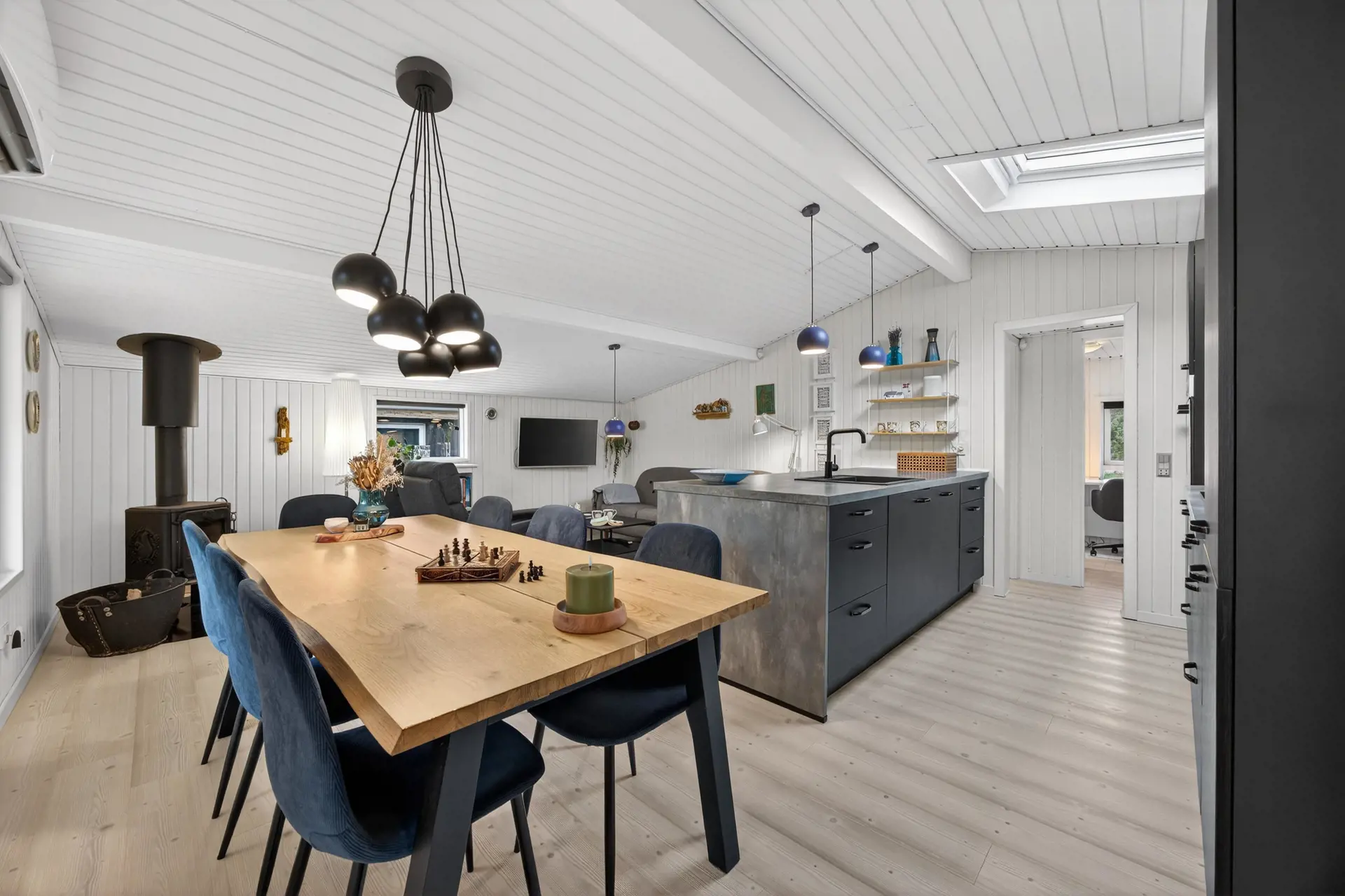 Das Ferienhaus empfängt Sie mit einem freundlichen Eingangsbereich mit Platz für Schuhe und Jacken. Von hier aus gelangen Sie in den einladenden Wohn- und Essbereich mit integrierter Küche – den natürlichen Mittelpunkt des Ferienlebens. Die Küche ist bestens ausgestattet und bietet alles, was Sie für einen gelungenen Urlaub benötigen, ganz gleich ob schnelle Mittagessen oder gemütliche Abendessen auf dem Programm stehen.