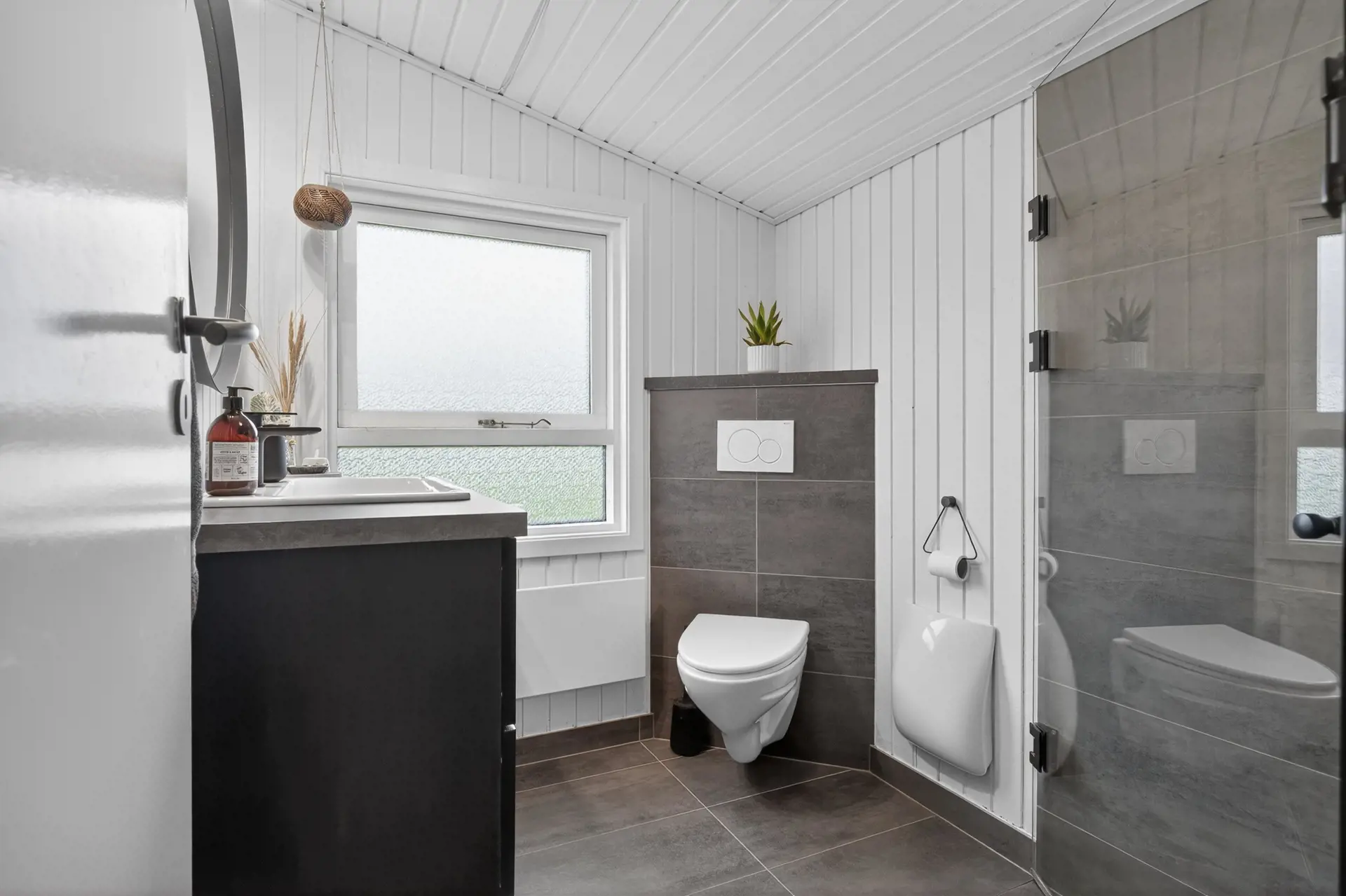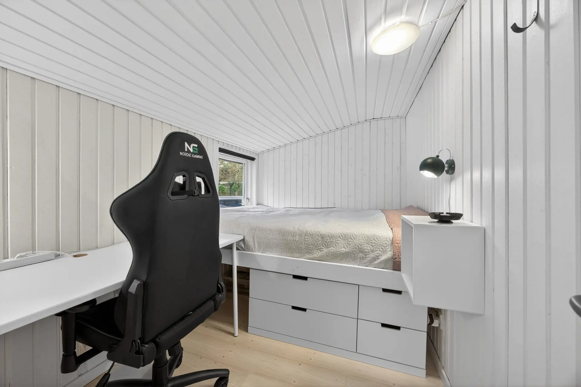 Im Inneren verfügt das Ferienhaus über zwei schöne, großzügige Schlafzimmer sowie ein kleines Spiel- bzw. Kuschelzimmer – ideal für Kinder oder entspannte Stunden. Das moderne Badezimmer ist geschmackvoll eingerichtet und bietet eine Dusche sowie angenehme Fußbodenheizung.
