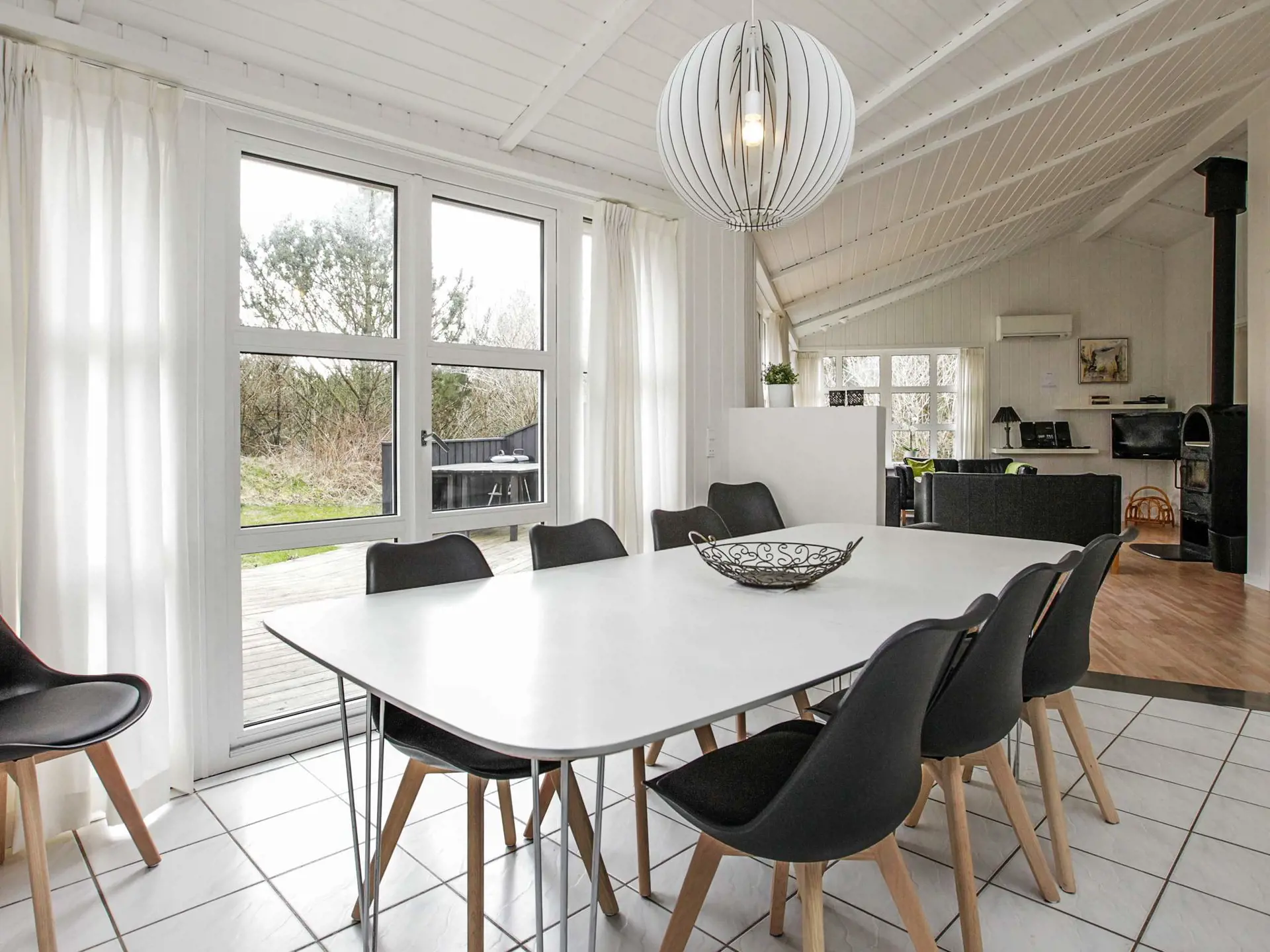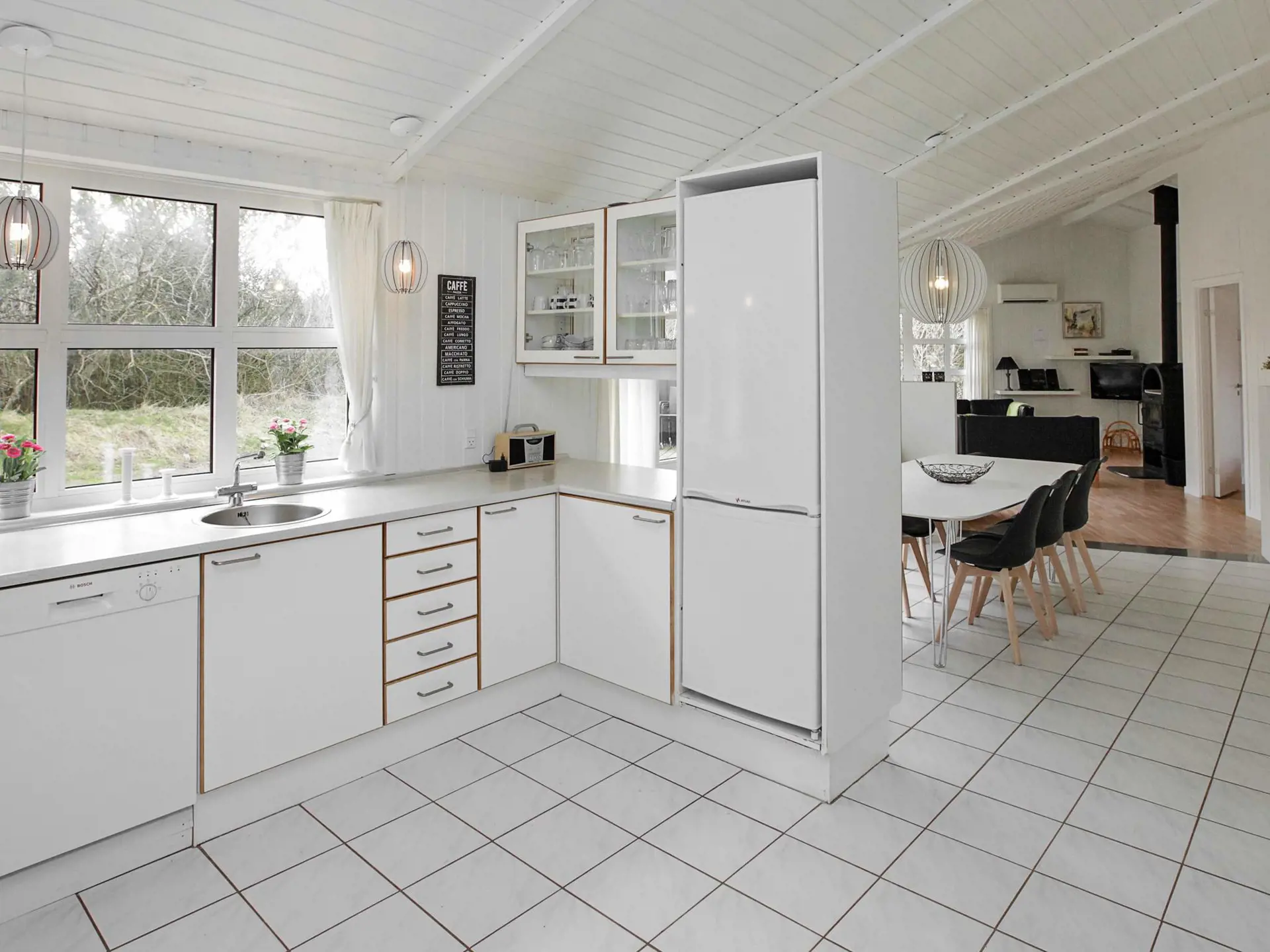 In dem Wohnzimmer finden Sie einen schönen Kaminofen vor sowie einen Fernseher mit SAT-Empfang von dänischen und deutschen Sendern und einen DVD-Spieler vor. Zur Ausstattung gehört zudem eine klimafreundliche Wärmepumpe.