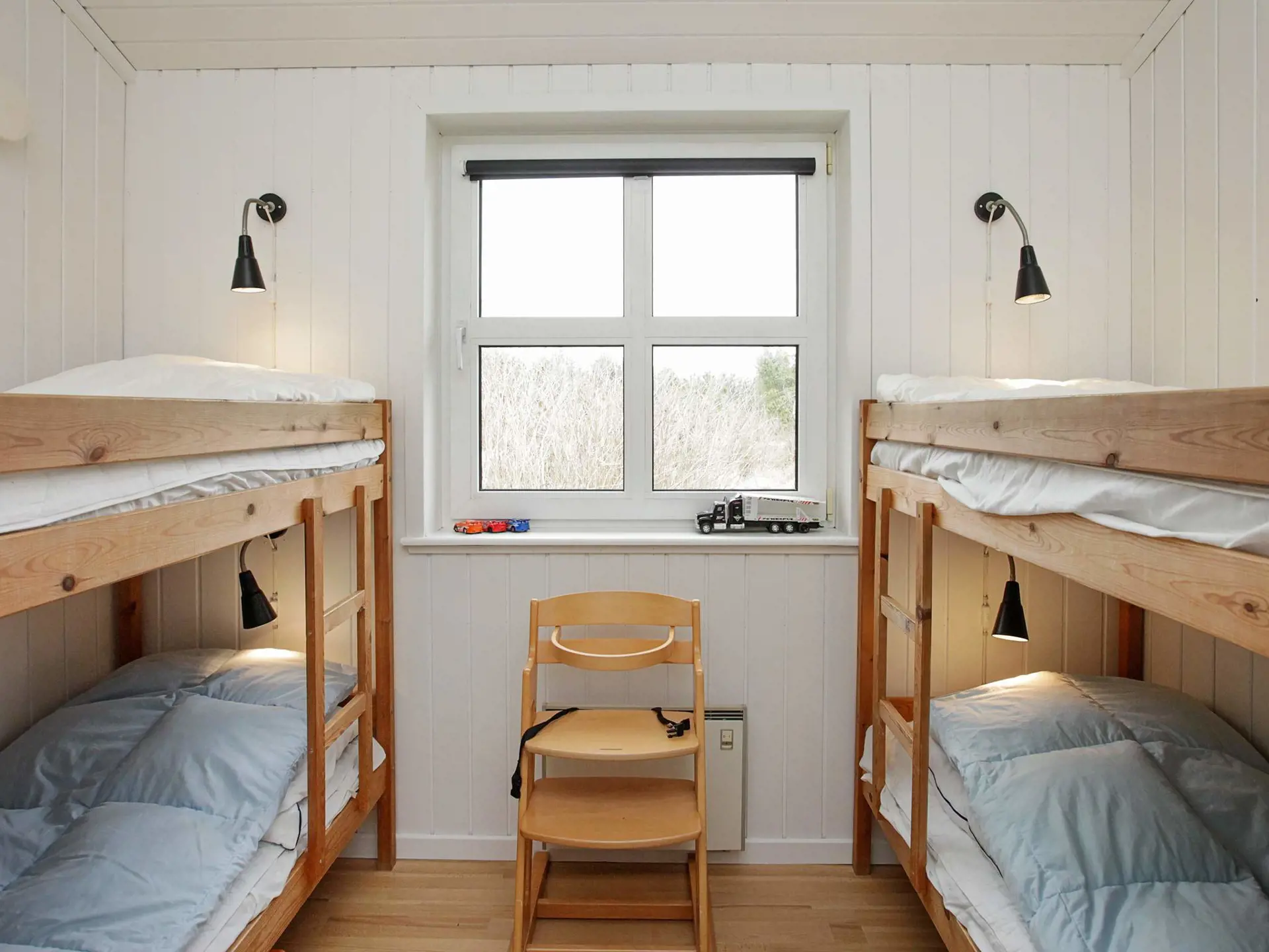 Hochstuhl und Kinderbett sowie vier Schlafzimmer im Haus; zwei mit Doppelbett, das 3. mit zwei Einzelbetten, das 4. mit zwei Etagenbetten mit insgesamt vier Kojen.