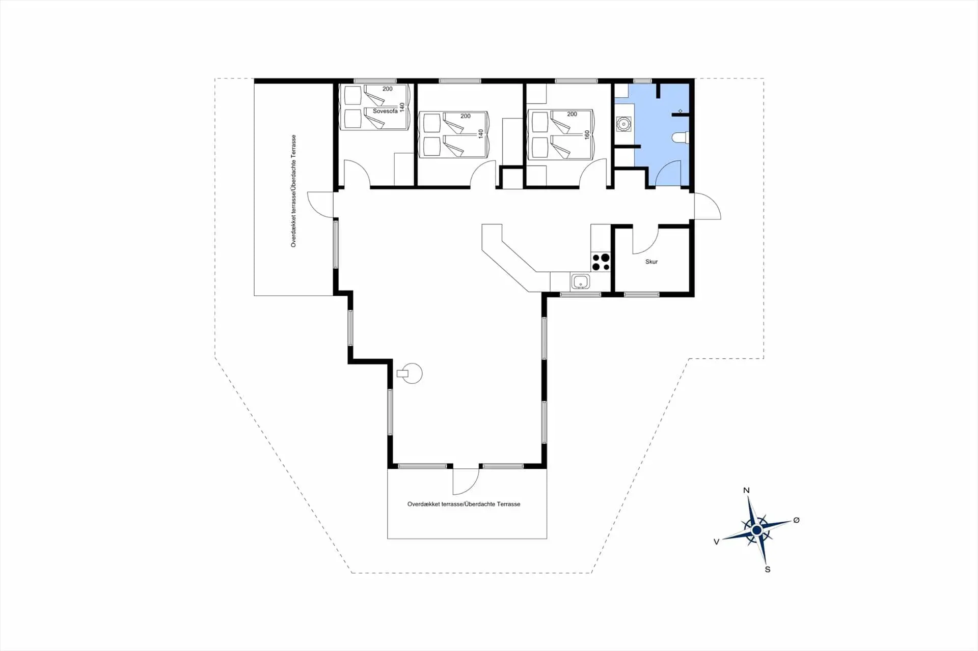 Das Haus ist von einer großen, zusammenhängenden Holzterrasse umgeben, die das Leben im Freien wirklich in Szene setzt. Hier könnt ihr der Sonne im Laufe des Tages folgen – von den ersten Sonnenstrahlen bei der Morgenkaffee, über die Mittagszeit und das Mittagessen bis hin zum Abend, wenn der Grill angezündet wird. Die Zeit dazwischen? Sie kann auf einer Liege mit einem guten Krimi oder bei Spielen und Ballspielen auf dem großen Rasen verbracht werden. Der Garten ist im Allgemeinen eine ganz private Oase, die auf allen Seiten durch Randbepflanzung gut geschützt ist – perfekt für diejenigen, die Ruhe und Entspannung im Urlaub suchen.