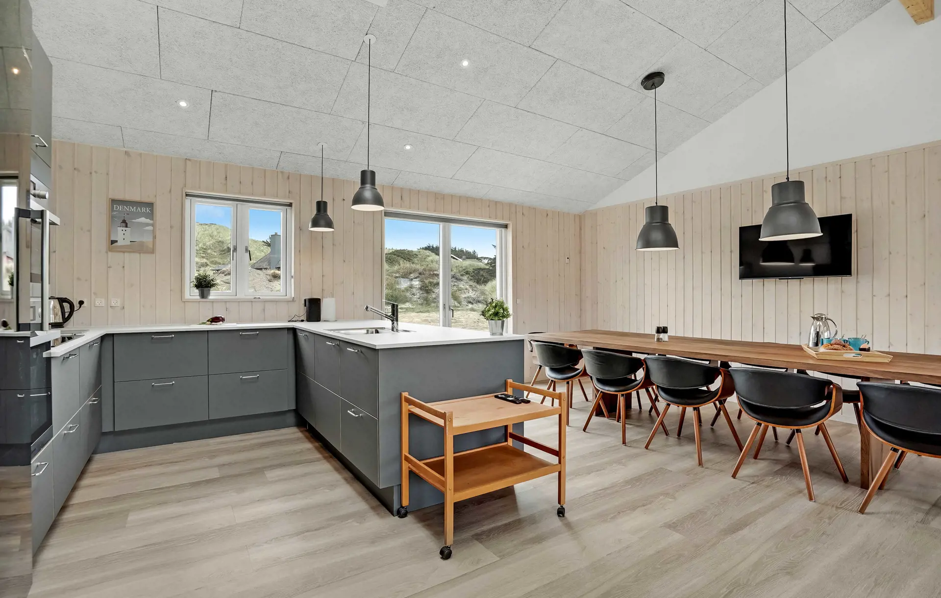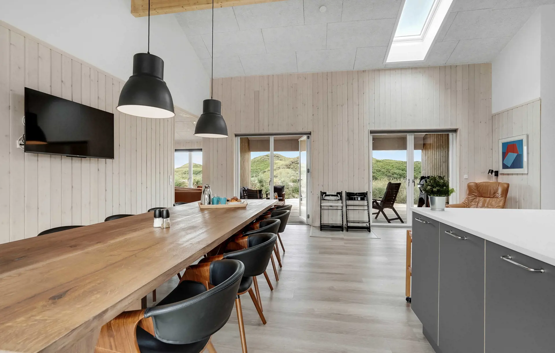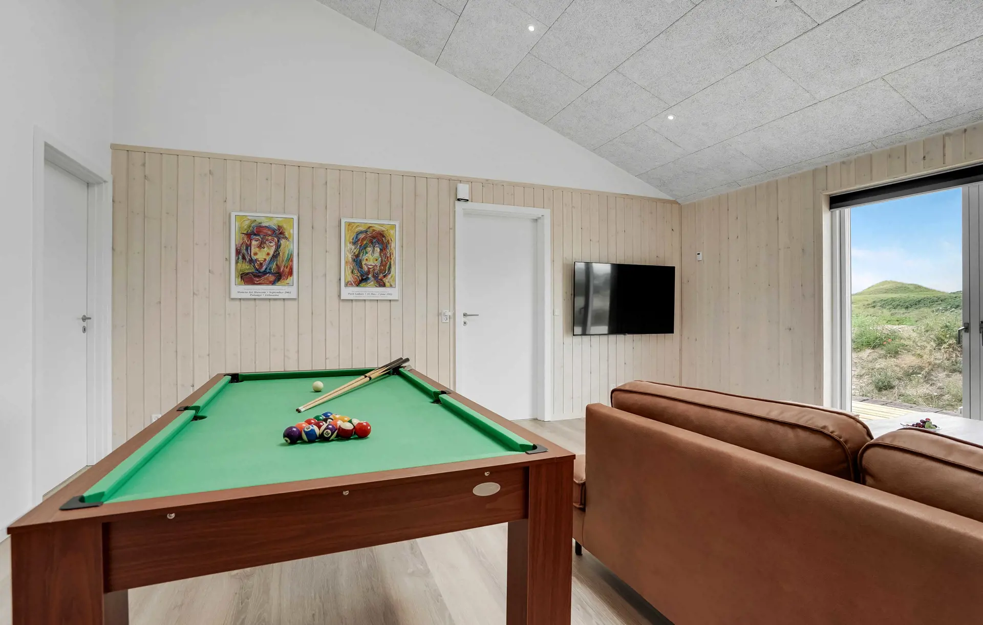 In den wunderschönen Dünen von Kettrup Bjerge, nur 150 Meter von der Nordsee entfernt, liegt dieses moderne Ferienhaus in erster Dünenreihe auf einem ungestörten Naturgrundstück. Das Haus bietet Platz für 12 Personen in 6 Schlafzimmern und 3 Badezimmern und eignet sich ideal für Familien und Freundesgruppen. Die Einrichtung ist stilvoll und komfortabel, große Fenster lassen viel Licht herein und bringen die Natur ins Haus, während der Kamin für gemütliche Stimmung sorgt. Im Aktivitätsraum mit Billard und Tischtennis ist Unterhaltung garantiert. Nach einem Tag am Strand laden Sauna und Whirlpool zum Entspannen ein. Die große Holzterrasse umgibt das Haus und bietet mehrere gemütliche Ecken sowie einen überdachten Bereich mit Blick auf die Dünen. Perfekt für lange Sommerabende mit Grill. Die Umgebung besticht durch Ruhe, breite Strände und Nähe zu Blokhus und Løkken.