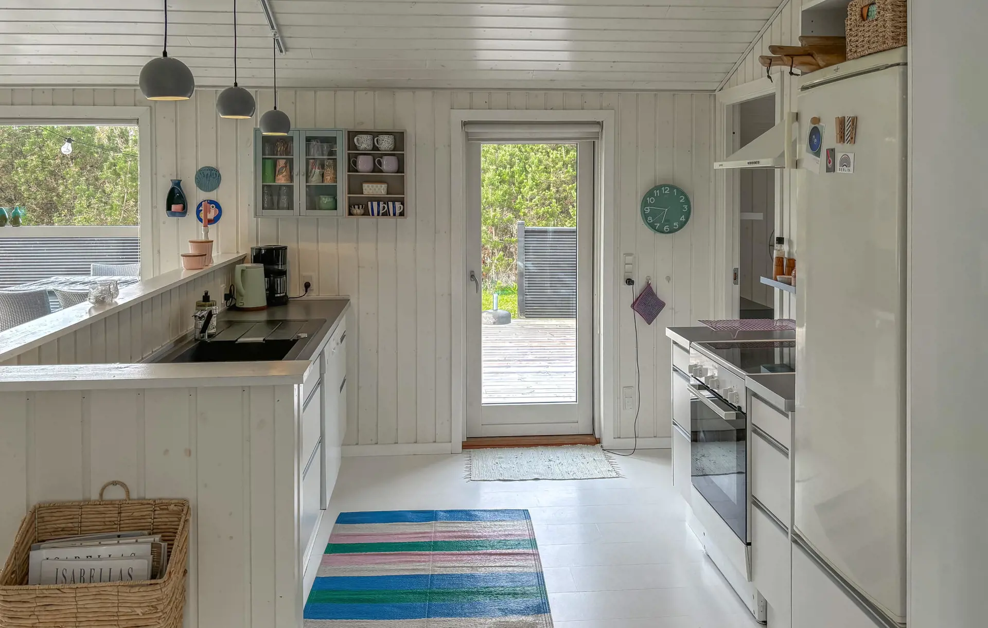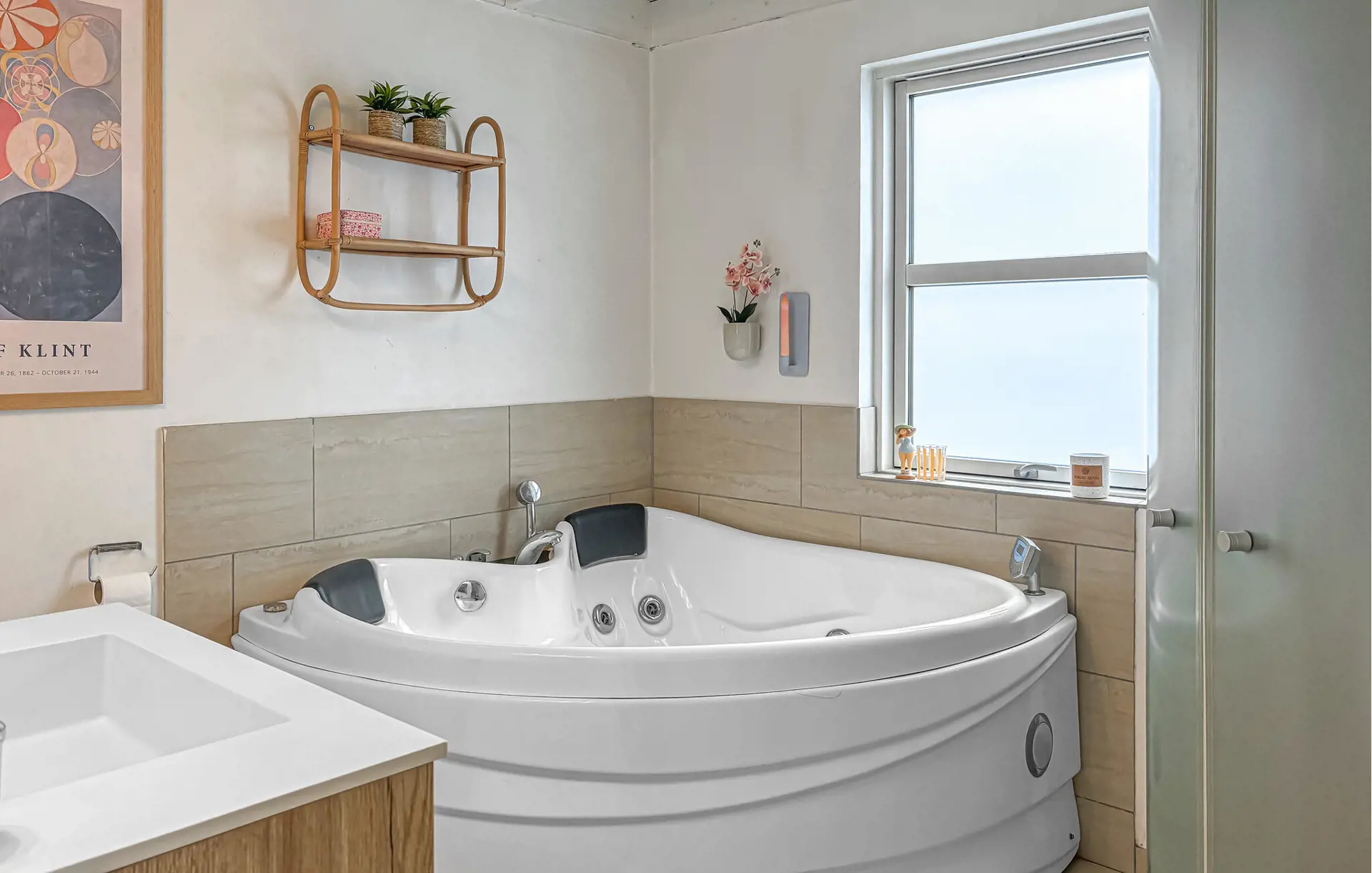 Ihr Ferienhaus bietet Ihnen eine stilvolle Einrichtung, viel Licht und Platz für die ganze Familie – ideal für erholsame Tage an der dänischen Nordsee. Lassen Sie sich von der freundlichen Atmosphäre des Innenbereichs empfangen. Große Fensterfronten sorgen für viel Tageslicht und einen schönen Blick ins Grüne. Machen Sie es sich auf der gemütlichen Sofaecke bequem oder genießen Sie gemeinsame Mahlzeiten am Esstisch. Der Kaminofen spendet an kühleren Tagen wohlige Wärme, während die offene Küche zum gemeinsamen Kochen einlädt. Für besondere Entspannung sorgt der Whirlpool im Badezimmer.