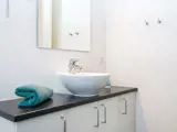 Innen offener Küchen-/Wohnbereich mit Sitz- und Essecke für das Familienleben. Außerdem hat das Ferienhaus ein Badezimmer mit u.a. angenehmer Fußbodenheizung. Hilfsmittel wie Geschirrspüler, Waschmaschine und Wäschetrockner sind vorhanden.
