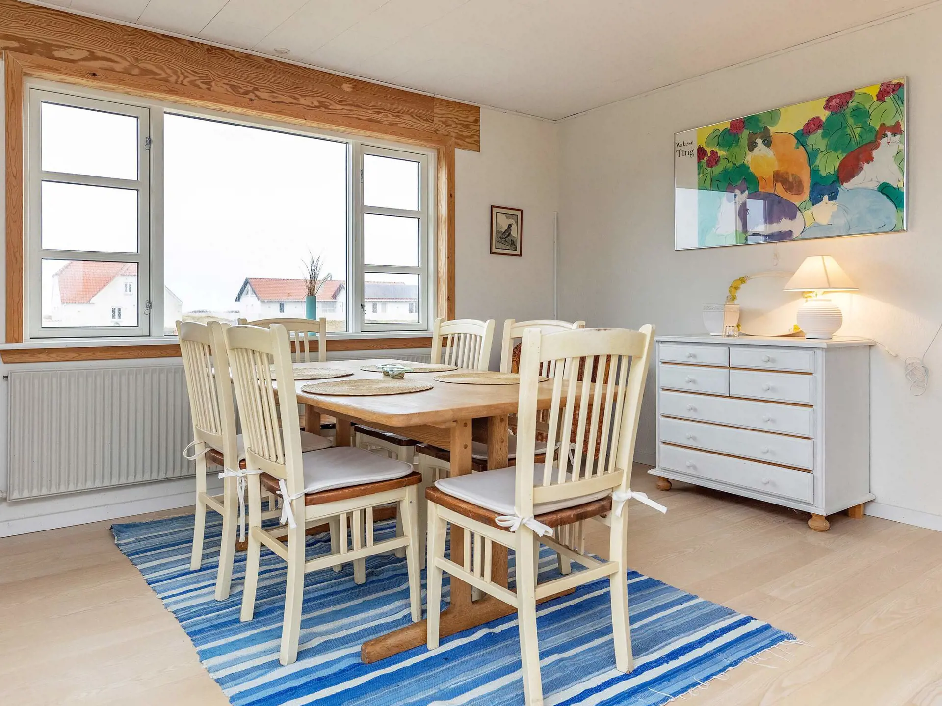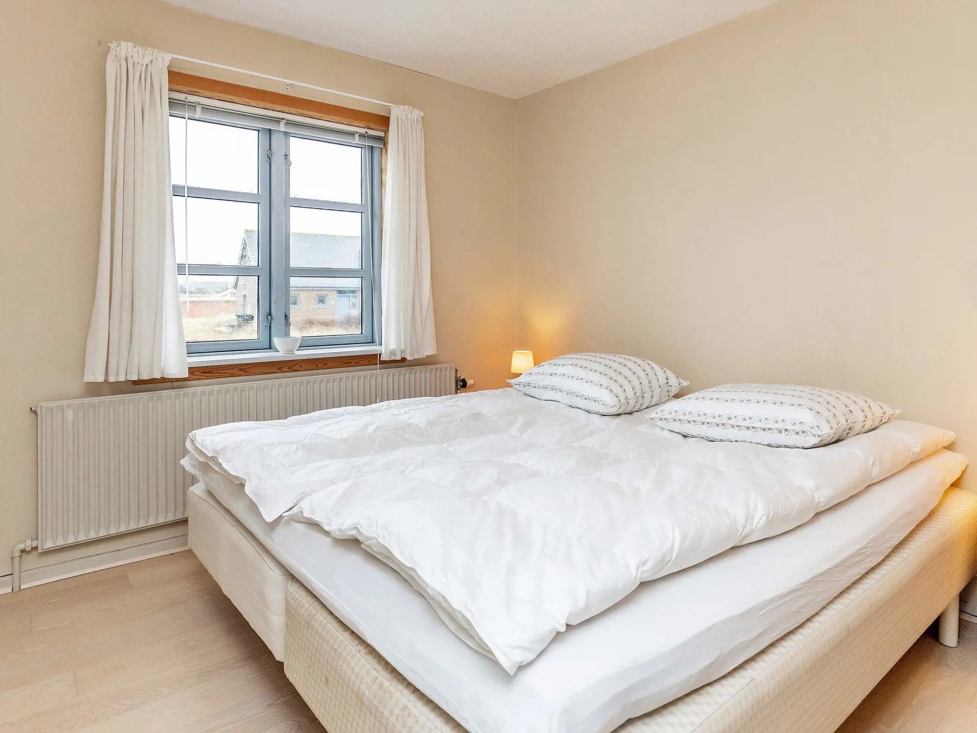 Ferienhaus mit Meerblick und erhöhter Lage auf einem Dünengrundstück, nur 150 Meter von der Nordsee bei Lild Strand gelegen. Im Haus ein Badezimmer, ein Schlafzimmer mit zwei Einzelbetten und ein zweites Schlafzimmer mit einem Doppelbett. Nebenan im separaten Annex es ein Etagenbett mit drei Kojen. Im Haus auch kleine Küche mit Blick aufs Meer. Im Wohnzimmer gibt es einen Essbereich und Zugang zur Terrasse. Auch vom Wohnzimmer aus können Sie die Aussicht genießen.