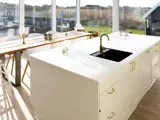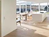Überall im Haus gibt es helle Troldtekt-Decken, die zu einer guten Akustik im Haus beitragen.
