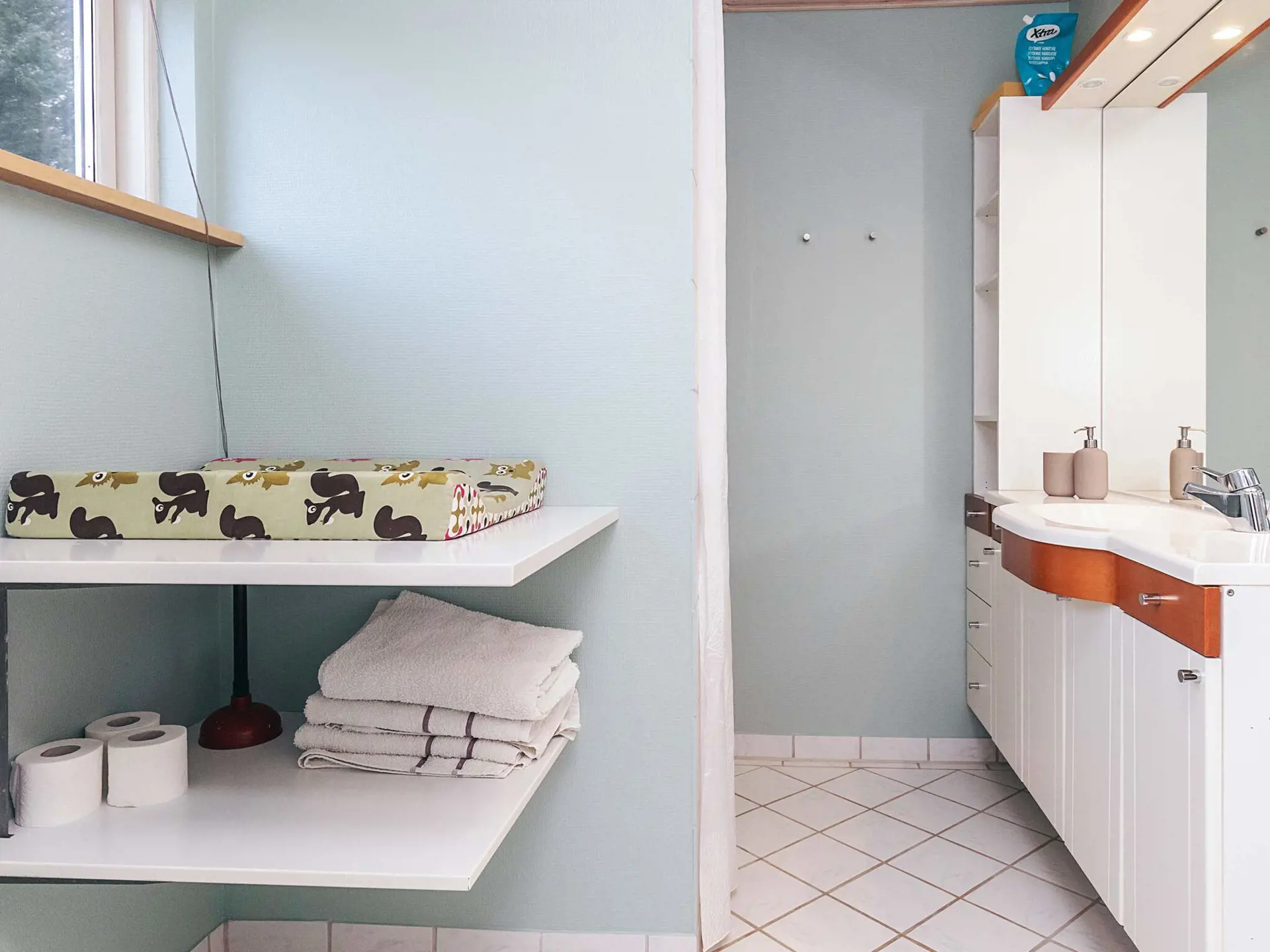 Das Haupthaus verfügt über zwei helle Schlafzimmer mit Doppelbetten, ein geräumiges Badezimmer, eine gut ausgestattete Küche und ein offenes Wohn-/Esszimmer, das einen gemütlichen Treffpunkt für alle bietet. Der offene Raum bietet viel Platz für gemeinsame Aktivitäten wie Brettspiele, Fernsehen und Gespräche. Die Küche ist mit allem ausgestattet, was man braucht, um leckere Mahlzeiten zuzubereiten, wenn man selbst etwas kochen möchte. Von einem kleinen Flur aus erreichen Sie die Schlafzimmer und das Badezimmer.