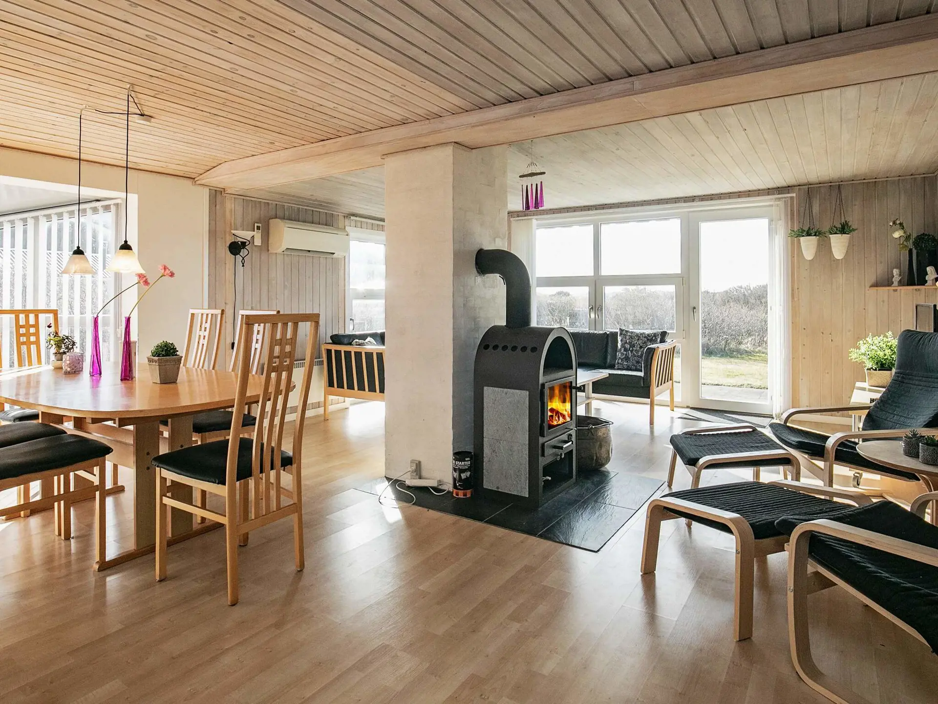 Ansprechend eingerichtetes Ferienhaus mit Whirlpool und Aktivitätsraum, nicht weit vom Strand entfernt gelegen. Von Haus und Grundstück hat man Blick auf die Dünenlandschaft. Das Haus wurde 1980 erbaut, erhielt 2003 einen Anbau und wurde 2011 modernisiert. Großer, heller Wohn-Küchenbereich, drei Schlafzimmer (ein Doppelbett ist 1,20 m breit), Aktivitätsraum und Bad mit Whirlpool und Sauna sowie Gäste-WC. Die große Terrasse lädt zum Faulenzen im Freien ein. Eine Wärmepumpe sorgt dafür, dass sich die Nebenkosten in Grenzen halten. Im Aktivitätsraum stehen Airhockey, Dart, Billard und Flachbild-TV zur Verfügung. Das Grundstück ist etwas hügelig, mit Gras und lädt zum Spielen oder Sonnenbaden ein. Am breiten Strand der Umgebung werden Sie sicherlich viel Zeit verbringen. Es sind ca. 2 km bis Løkken, einem Ferienort mit zahlreichen Angeboten. \