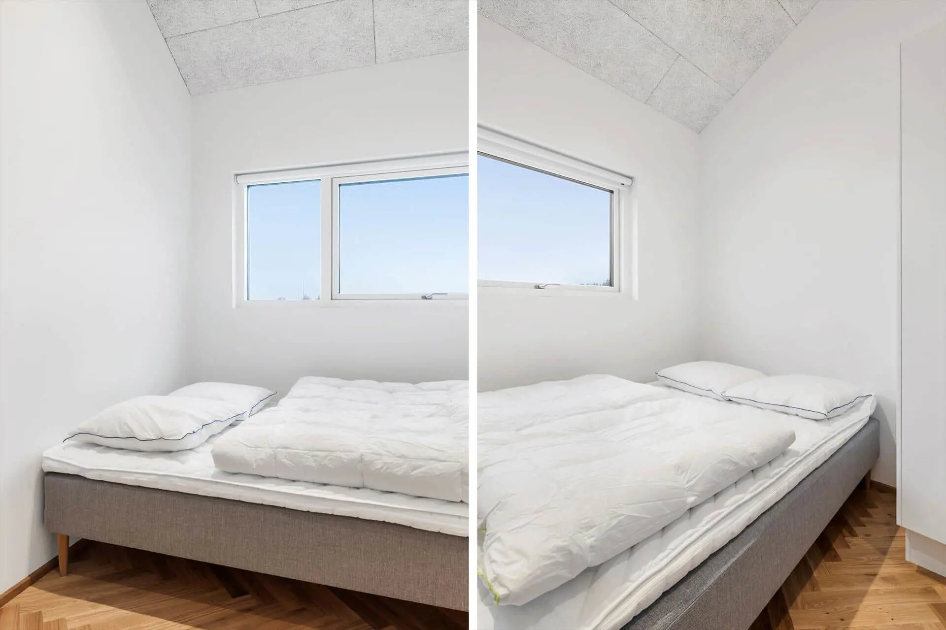 Das Ferienhaus empfängt dich mit einer Einrichtung, die Qualität und durchdachtes Design ausstrahlt. Helle Materialien, edle Böden und eine offene Raumgestaltung bis unter das Dach schaffen eine großzügige und elegante Atmosphäre, in der du dich sofort wohlfühlst. Das Herz des Hauses ist der großzügige Wohn- und Küchenbereich, in dem die moderne Küche offen mit dem Wohnzimmer verbunden ist. Hier kannst du ein köstliches Mahl mit regionalen Zutaten zubereiten, während du dich an den Gesprächen am Esstisch beteiligst oder einfach das Lichtspiel durch die großen Fensterfronten genießt. Die vier Schlafzimmer sind auf Ruhe und Komfort ausgelegt, und die zwei stilvollen Badezimmer sorgen für zusätzlichen Ferienkomfort. Alles im Haus wirkt neu, hell und einladend – der perfekte Rahmen für gemütliche Tage mit Familie und Freunden.