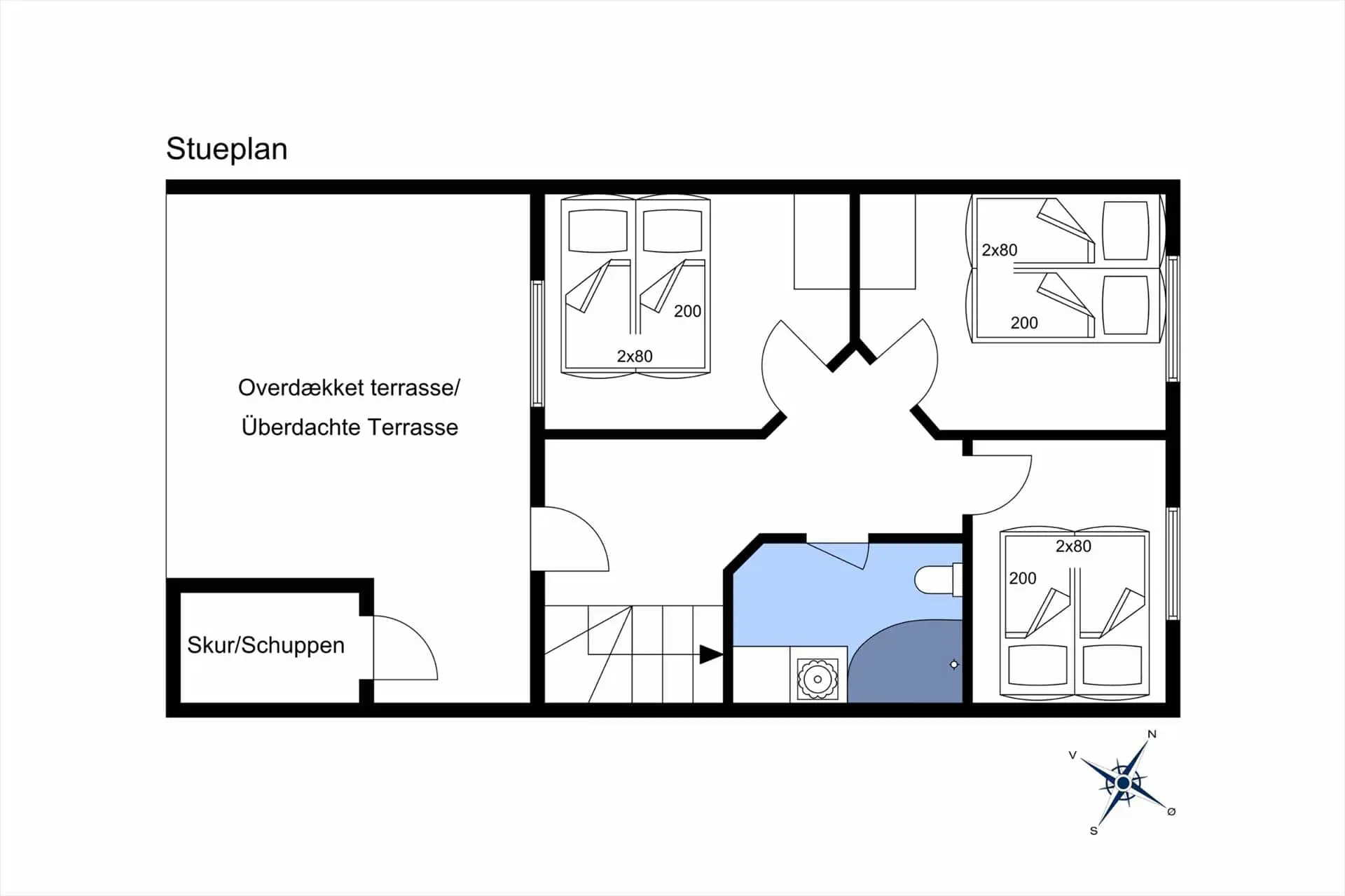 Das Ferienhaus empfängt dich mit einem schönen, offenen Wohnbereich, in dem Küche und Wohnzimmer miteinander verbunden sind. Hier spürst du die Ruhe sofort, sobald du eintrittst. Der herrliche Lichteinfall durch die großen Fensterfronten verleiht dem Raum Leichtigkeit, und du kannst dir leicht vorstellen, wie die Morgensonne auf den Esstisch fällt, während der Kaffee in der Tasse dampft. Die offene Küche macht es einfach, gemeinsam zu kochen – ganz gleich, ob ein leichtes Mittagessen oder ein gemütliches Abendessen nach einem Tag am Meer auf dem Plan steht. Die drei Schlafzimmer liegen praktisch im Haus verteilt, und zusätzlich gibt es einen großen Hems, in dem du die echte Ferienhausatmosphäre in vollen Zügen spüren kannst. Hier oben können die Kinder ihr eigenes kleines Reich haben – oder die Erwachsenen können sich für einen ruhigen Moment zurückziehen. Das Badezimmer ist geräumig und gepflegt, und insgesamt erwartet dich eine Einrichtung, die zu Entspannung und Nähe einlädt.