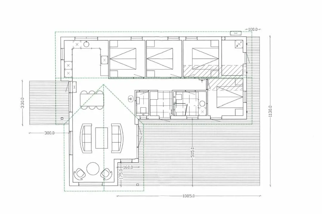 Diese Unterkunft hat eine Fläche von 110 m² und befindet sich auf einem 2.000 m² Grundstück.