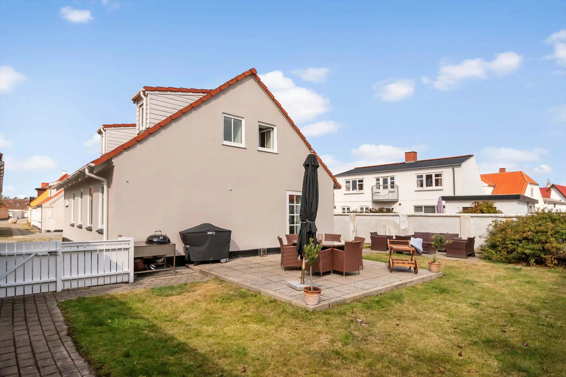 Das Haus bietet außerdem ein helles und freundliches Wohnzimmer sowie einen weiteren großzügigen Essbereich, in dem sich die ganze Familie versammeln kann. Von hier aus gibt es auch direkten Zugang zum Garten. Ein Stadthaus mit vielen Möglichkeiten.