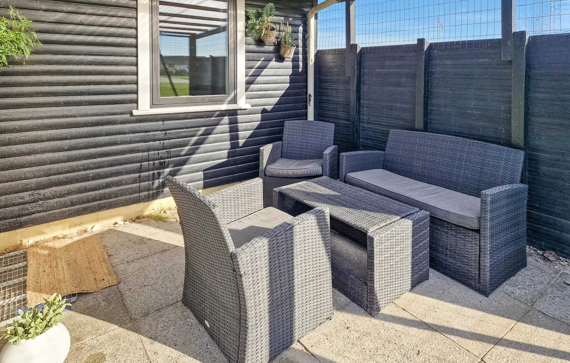 Bei Sonnenschein lädt die windgeschützte Terrasse zu einem Frühstück im Freien ein. Genießen Sie hier die Meeresluft und die Aussicht auf die nahen Dünen.