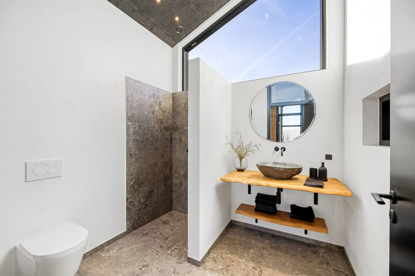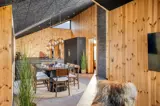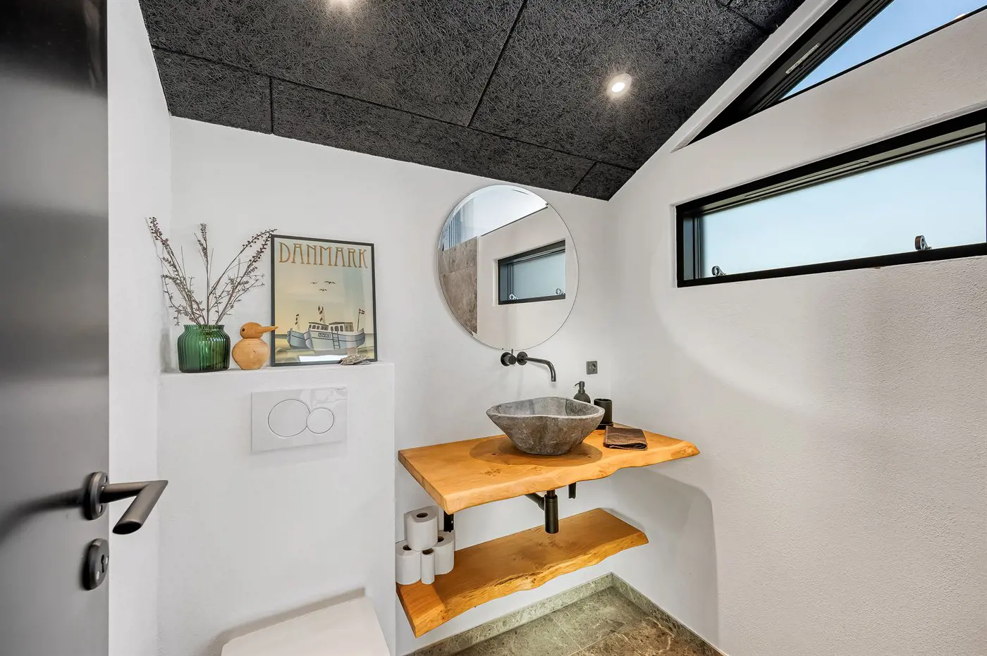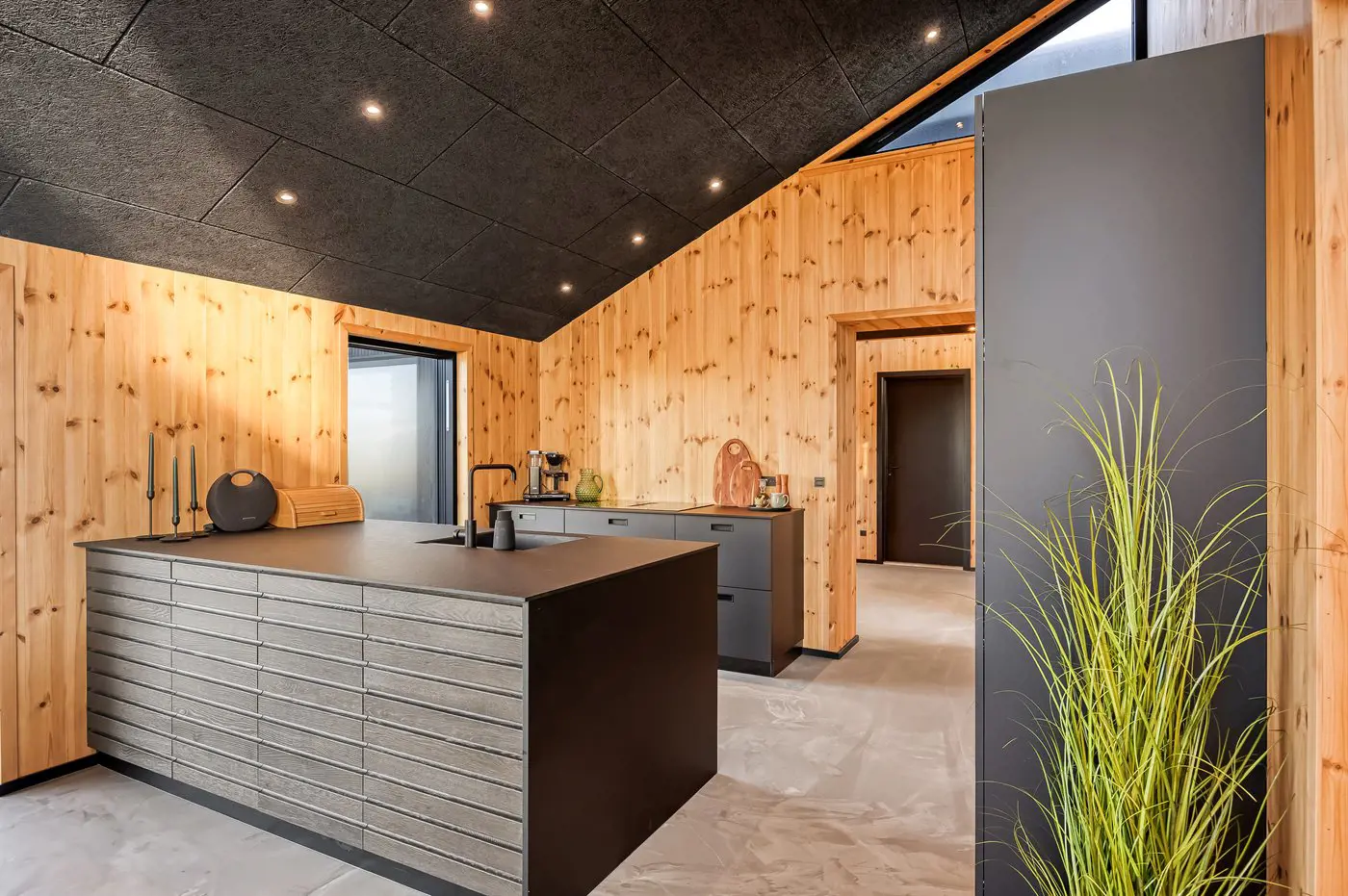 Das Haus ist mit einem hellen Wohnzimmer mit großen Fensterpartien und direktem Zugang zur großen, nach Westen ausgerichteten Terrasse, einer modernen Küche mit Essbereich und Ausgang zur nach Süden ausgerichteten Terrasse sowie einem Raum mit Platz fürs gemütliche Beisammensein und Spiele eingerichtet.