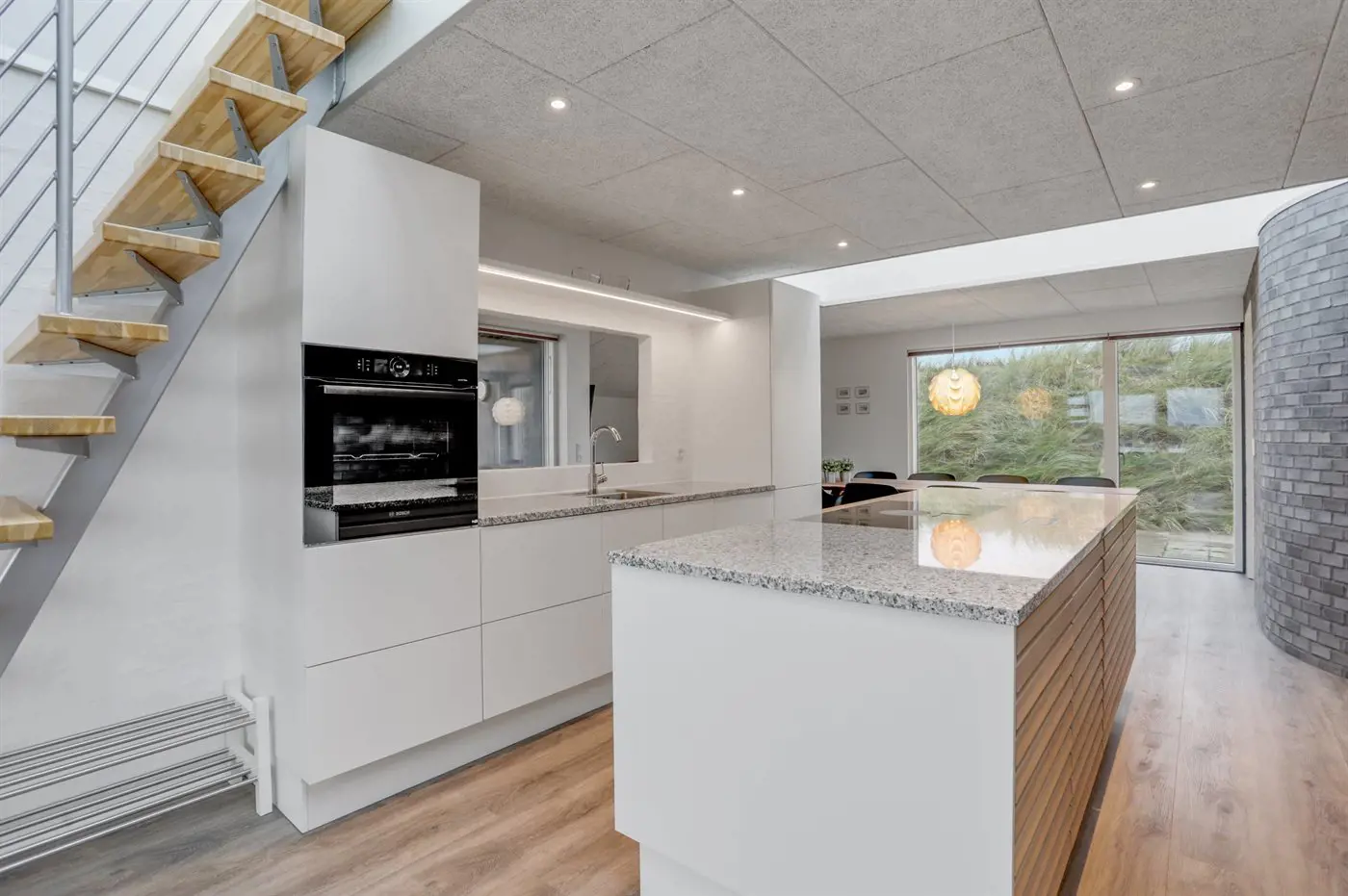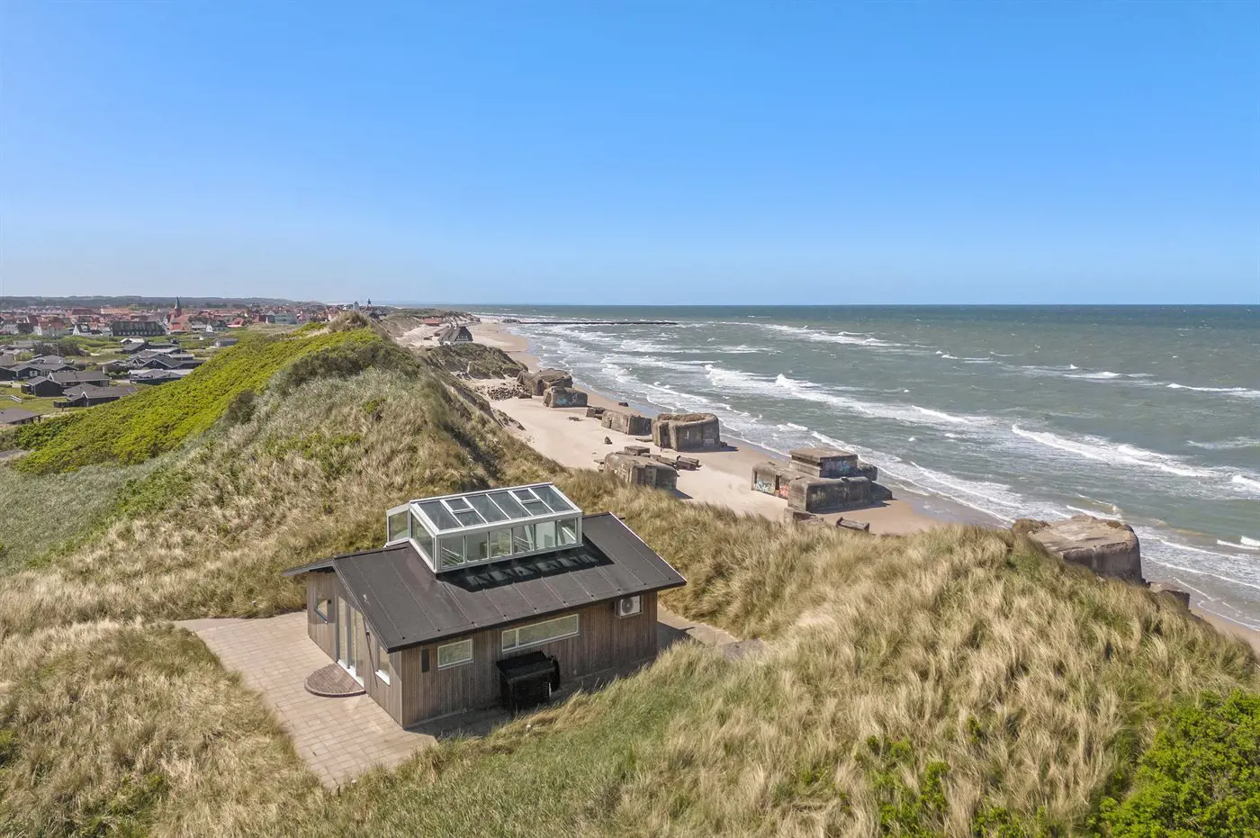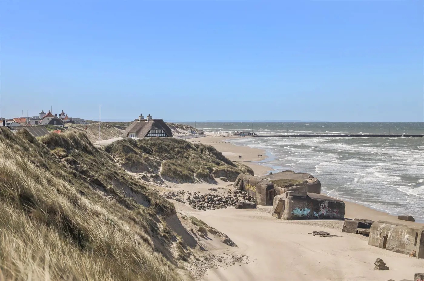 Fantastisches Ferienhaus mit schönem Meerblick! Dieses charmante Ferienhaus liegt nur wenige Schritte vom Strand entfernt – von authentischen Bunkern aus dem Zweiten Weltkrieg umgeben, von denen einer sogar als Sauna genutzt wird. Somit bietet das Haus eine ganz einzigartige Kombination aus Geschichte und Komfort an.