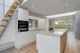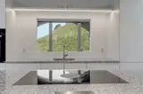 Die Küche ist mit Kühlschrank ausgestattet. Außerdem gibt es 4 Induktions-Kochzonen, Umluftofen, Mikrowelle sowie Geschirrspüler.