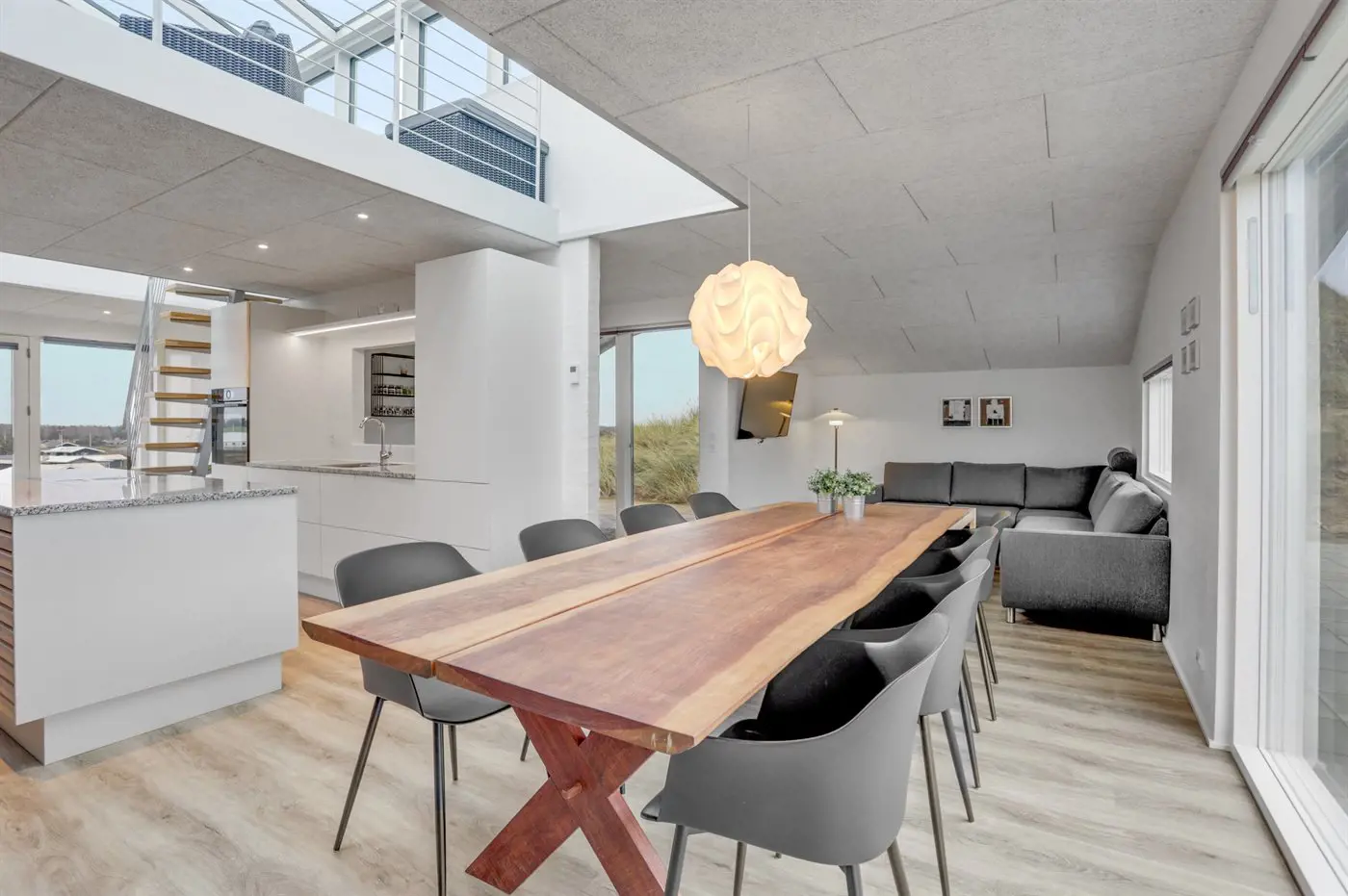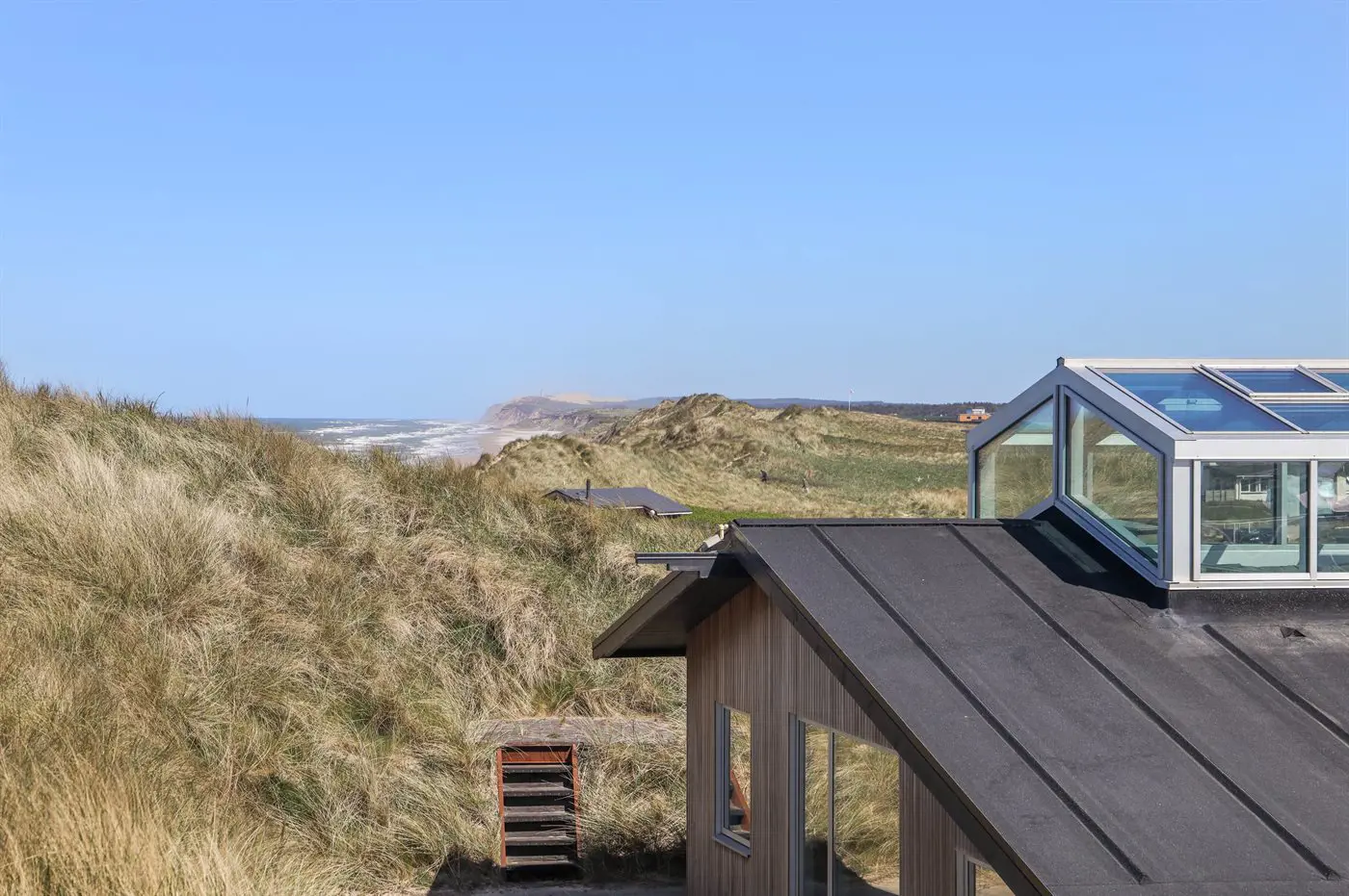 Die Ferienunterkunft liegt auf einem 1331 m² großen Dünengrundstück. Die Entfernung zum Meer beträgt 20 m. Die nächste Einkaufsmöglichkeit liegt 1000 m entfernt. Es steht ein offenes Terrassenareal zur Verfügung. Außerdem gibt es überdachte Terrasse. Außensauna. Außendusche. Es steht ein Grill zur Verfügung. Parkplatz auf dem Grundstück.