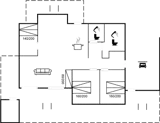 Die Schlafplätze verteilen sich auf 3 Schlafräume. 6 Schlafplätze in Doppelbetten.1 Schlafplatz im Alkoven. 1 von diesen Schlafplätzen befindet sich im Wohnzimmer.