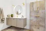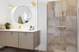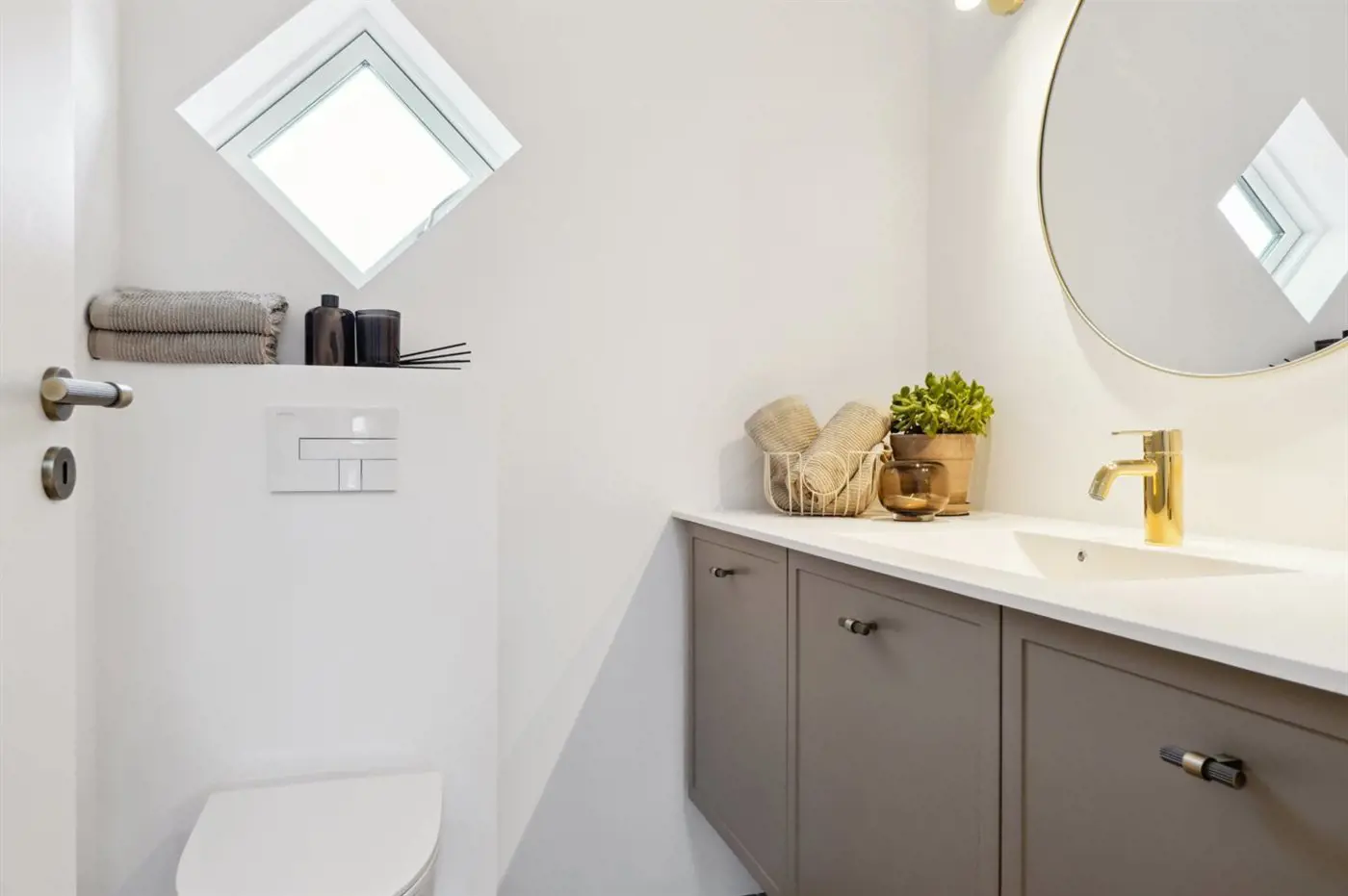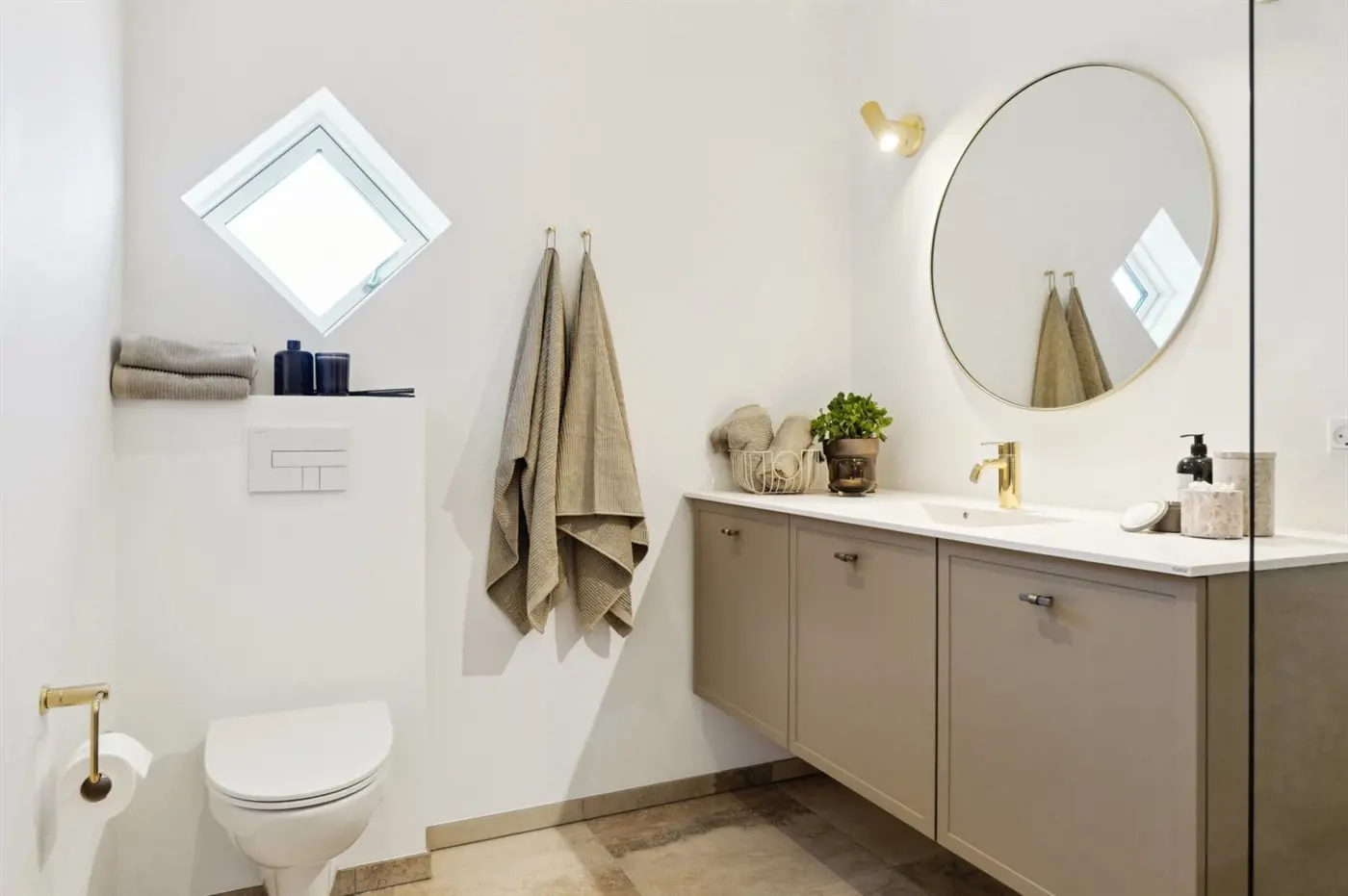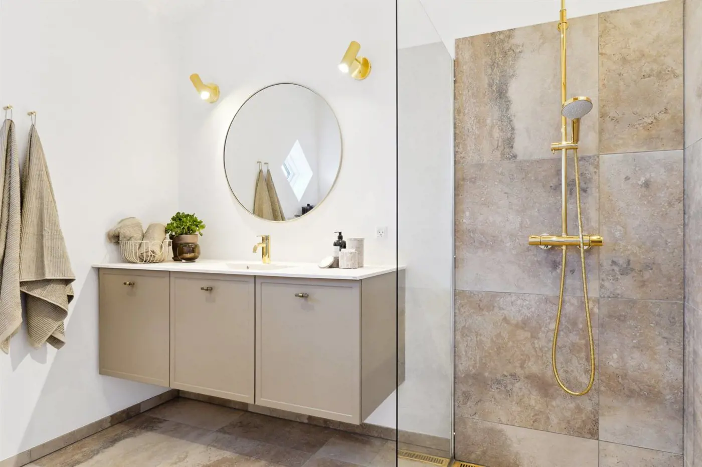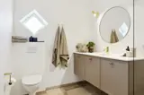 Es gibt 1 Badezimmer mit Duschnische und 2 Toiletten, davon 2 Gästetoiletten.. Fußbodenheizung in 1 Badezimmer.