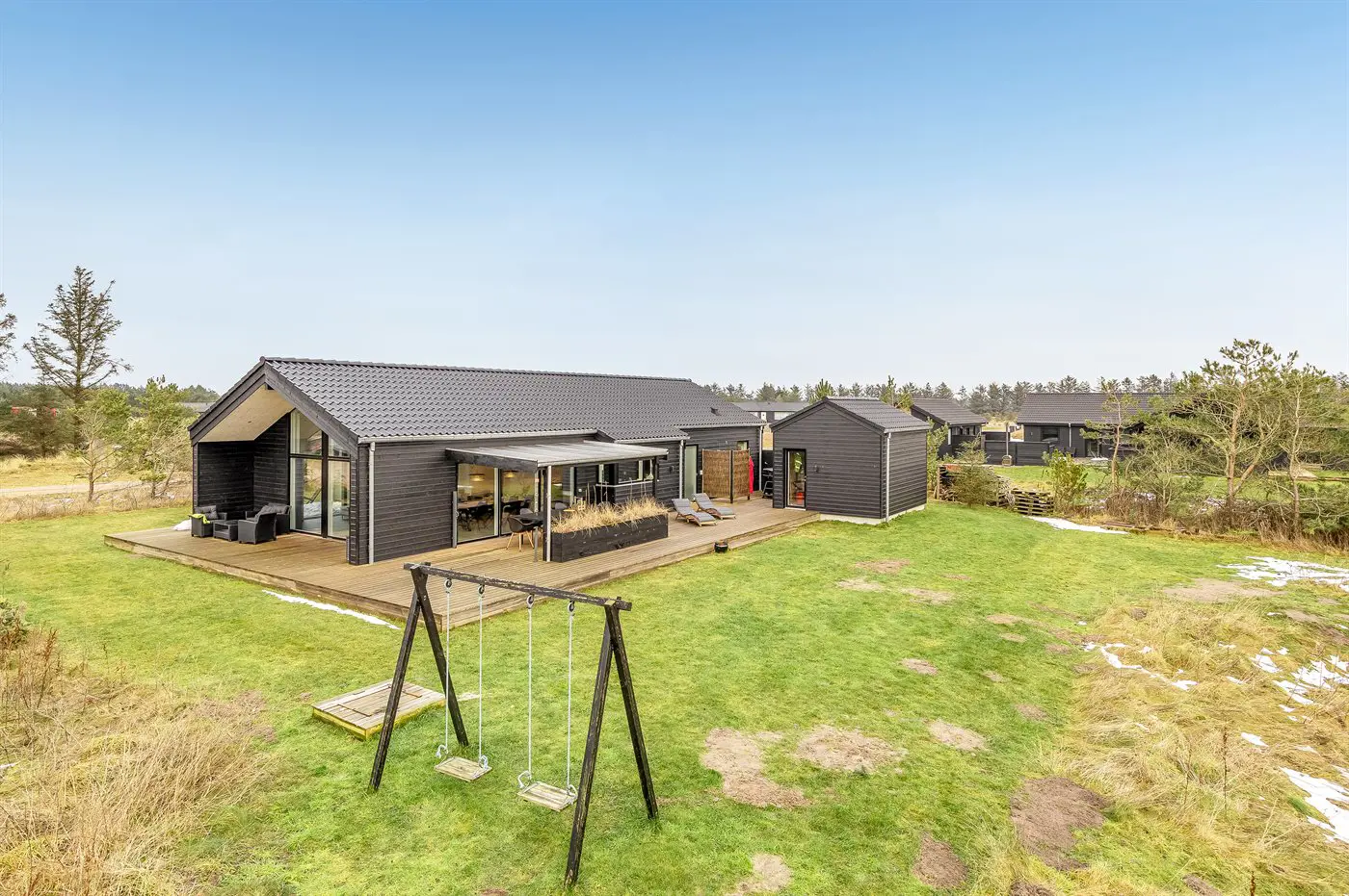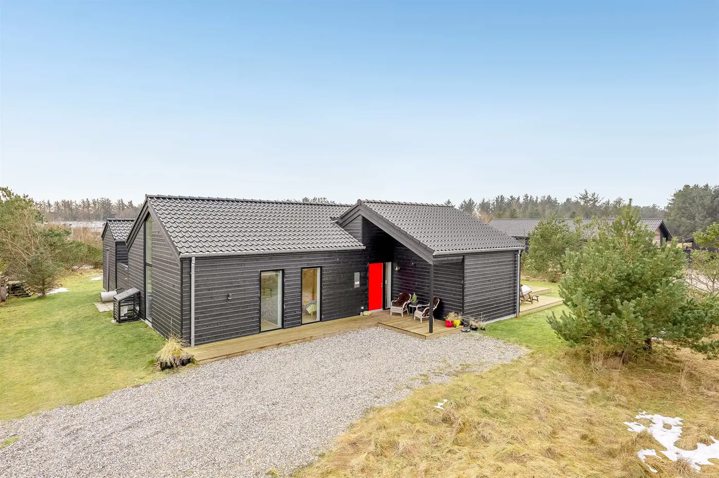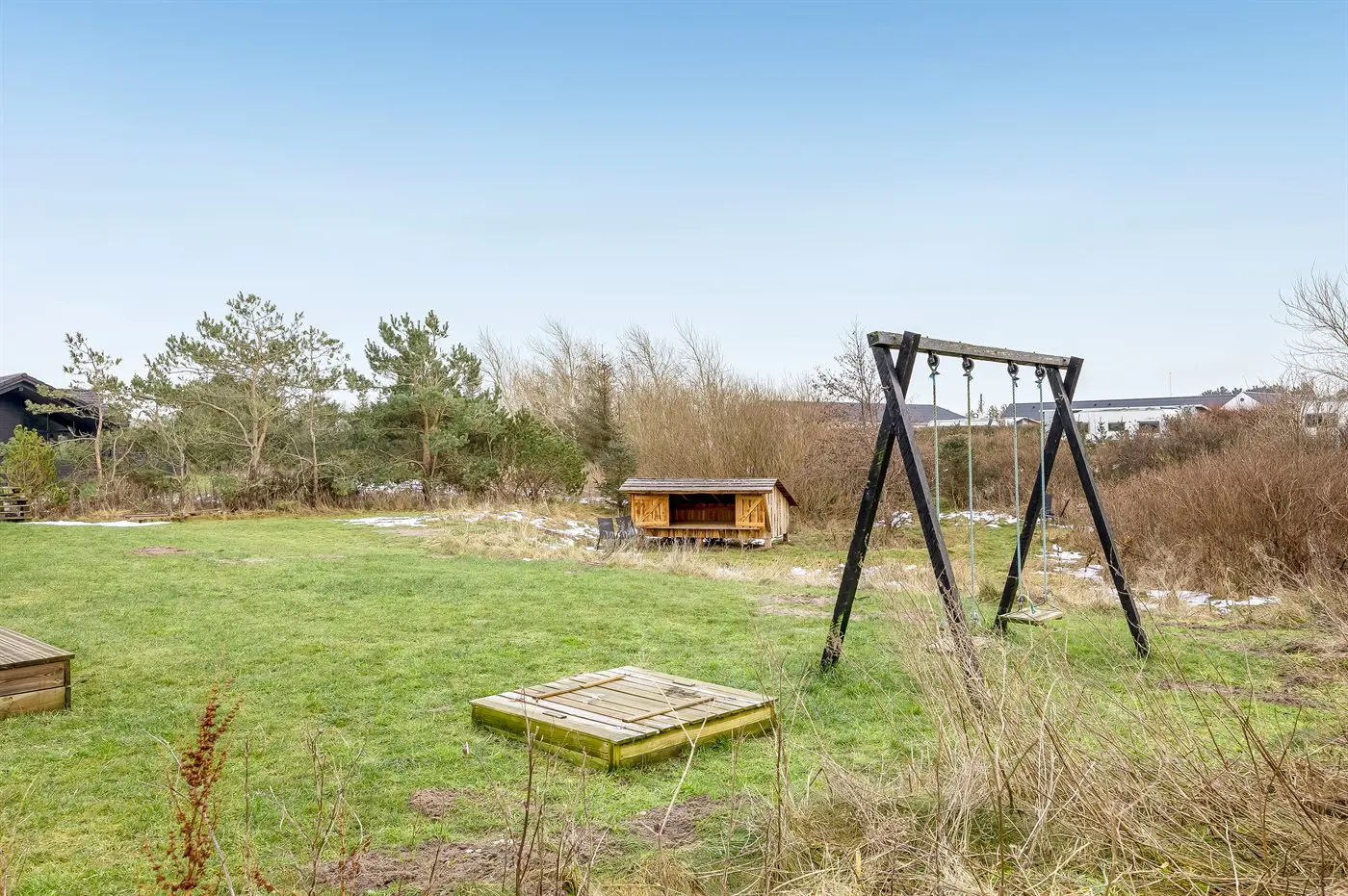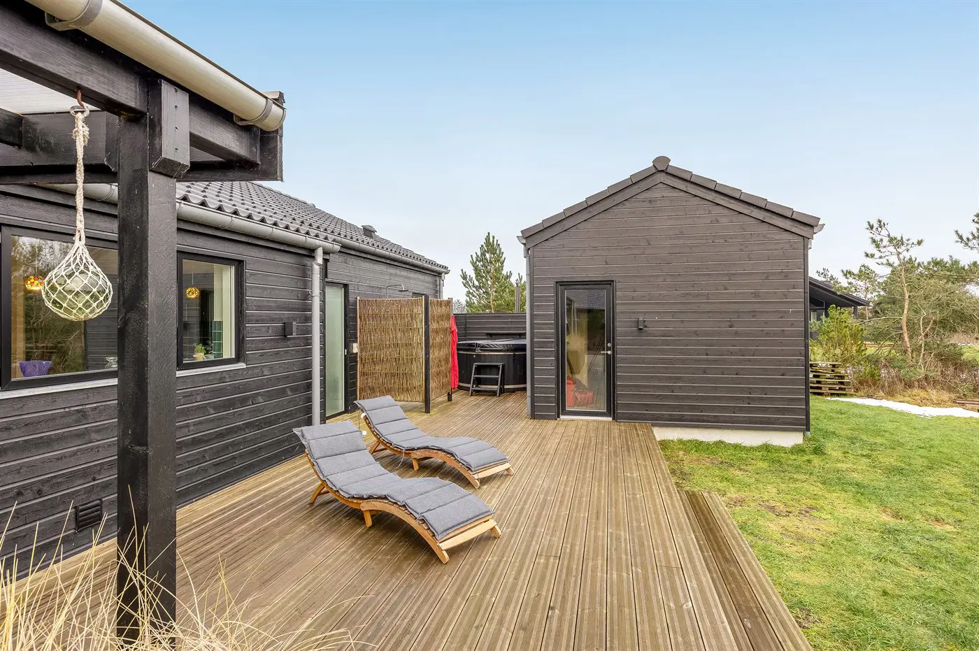 Die Ferienunterkunft liegt auf einem 2548 m² großen Naturgrundstück. Die Entfernung zum Meer beträgt 900 m. Die nächste Einkaufsmöglichkeit liegt 1200 m entfernt. Es steht ein offenes Terrassenareal zur Verfügung. Außerdem gibt es überdachte Terrasse. Schaukel. Sandkasten.Lagerfeuerstelle. Windschutzhütte. Außendusche. Es steht ein Grill zur Verfügung. Parkplatz auf dem Grundstück.