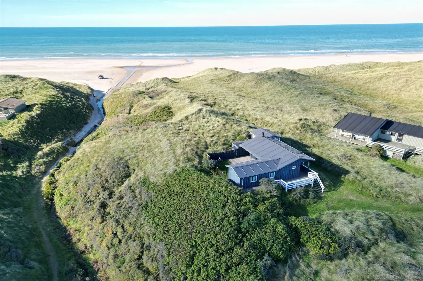 Das Ferienhaus liegt im attraktiven Gebiet Hvorup Klit zwischen Løkken und Blokhus. Hier wohnst du mitten in der Natur und gleichzeitig nahe an Orten mit Einkaufsmöglichkeiten, Restaurants und sommerlichen Aktivitäten. Den Strand erreichst du direkt vom Grundstück aus – ohne Straßen oder Wege, nur Dünen, Sand und Meer.