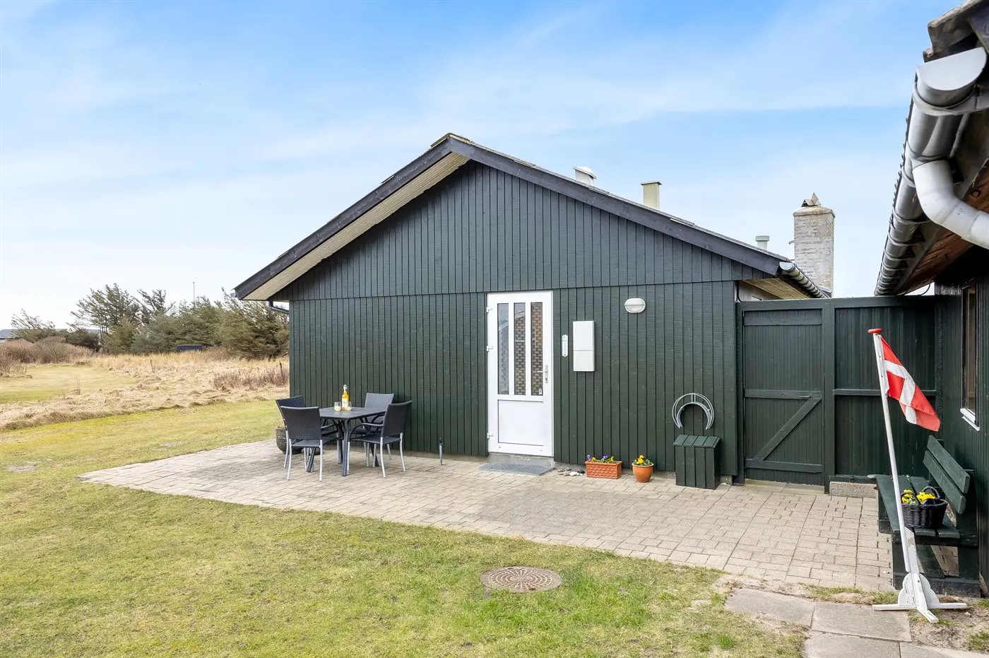 Die Ferienunterkunft liegt auf einem 1309 m² großen Naturgrundstück. Die Entfernung zum Meer beträgt 400 m. Die nächste Einkaufsmöglichkeit liegt 1500 m entfernt. Es steht ein offenes Terrassenareal zur Verfügung. Geräteraum. Es steht ein Grill zur Verfügung.Es steht eine Garage zur Verfügung. Parkplatz auf dem Grundstück.