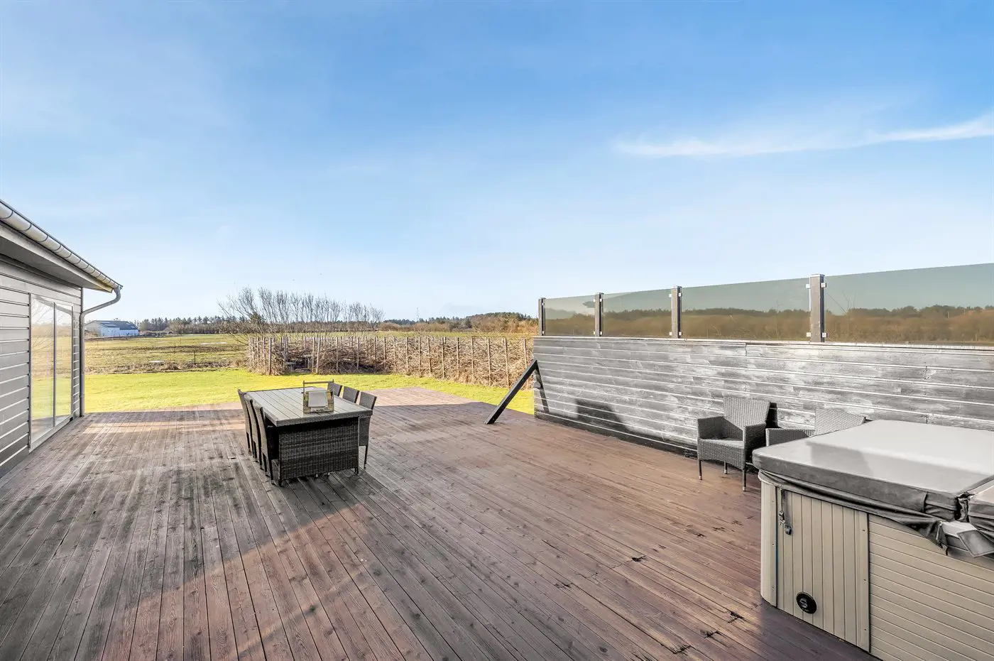 Die Ferienunterkunft liegt auf einem 8310 m² großen Gartengrundstück. Die Entfernung zum Meer beträgt 1400 m. Die nächste Einkaufsmöglichkeit liegt 1000 m entfernt. Es steht ein offenes Terrassenareal zur Verfügung. Geräteraum.Lagerfeuerstelle. Gasgrill steht zur Verfügung. Es steht ein Carport zur Verfügung. Parkplatz auf dem Grundstück.