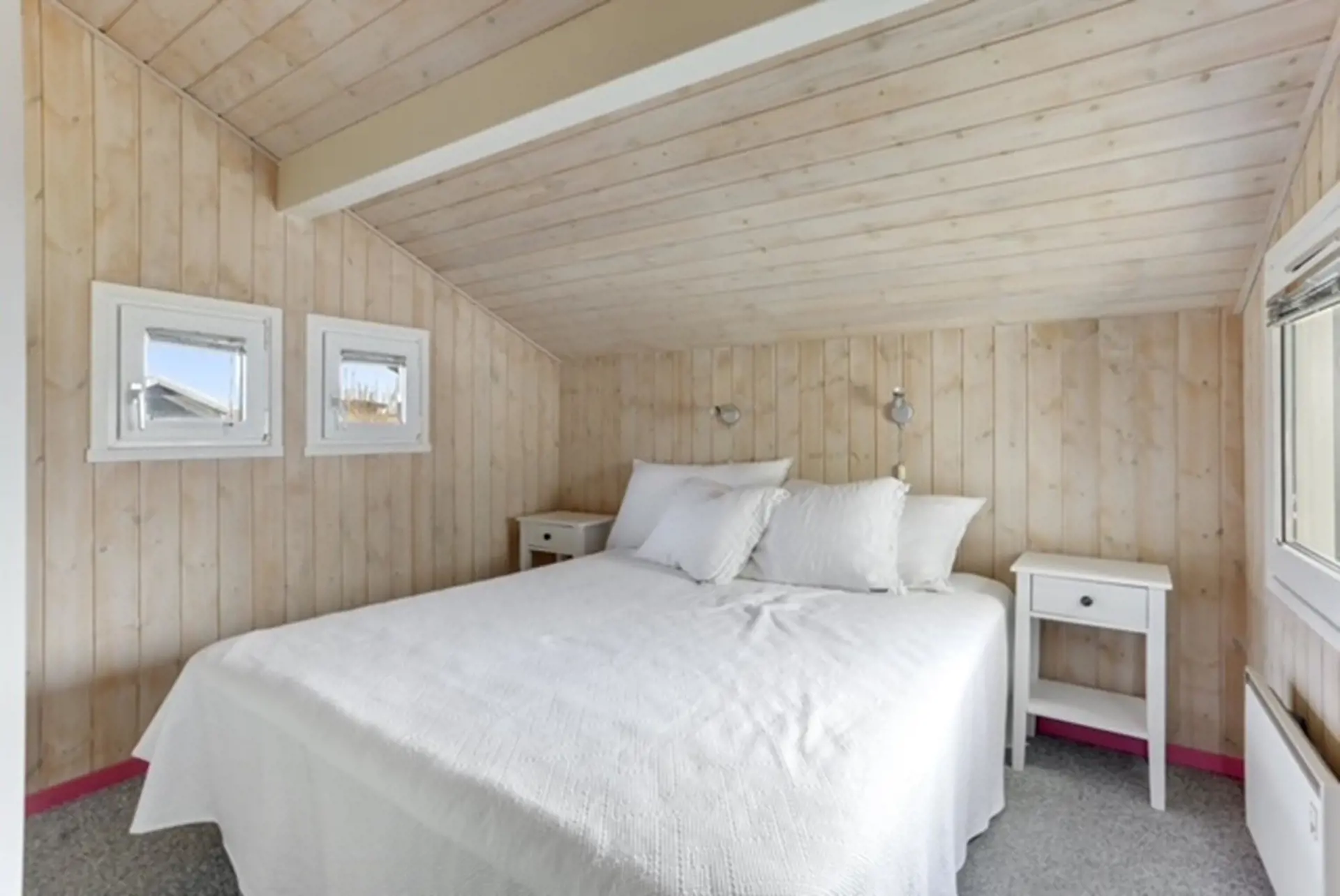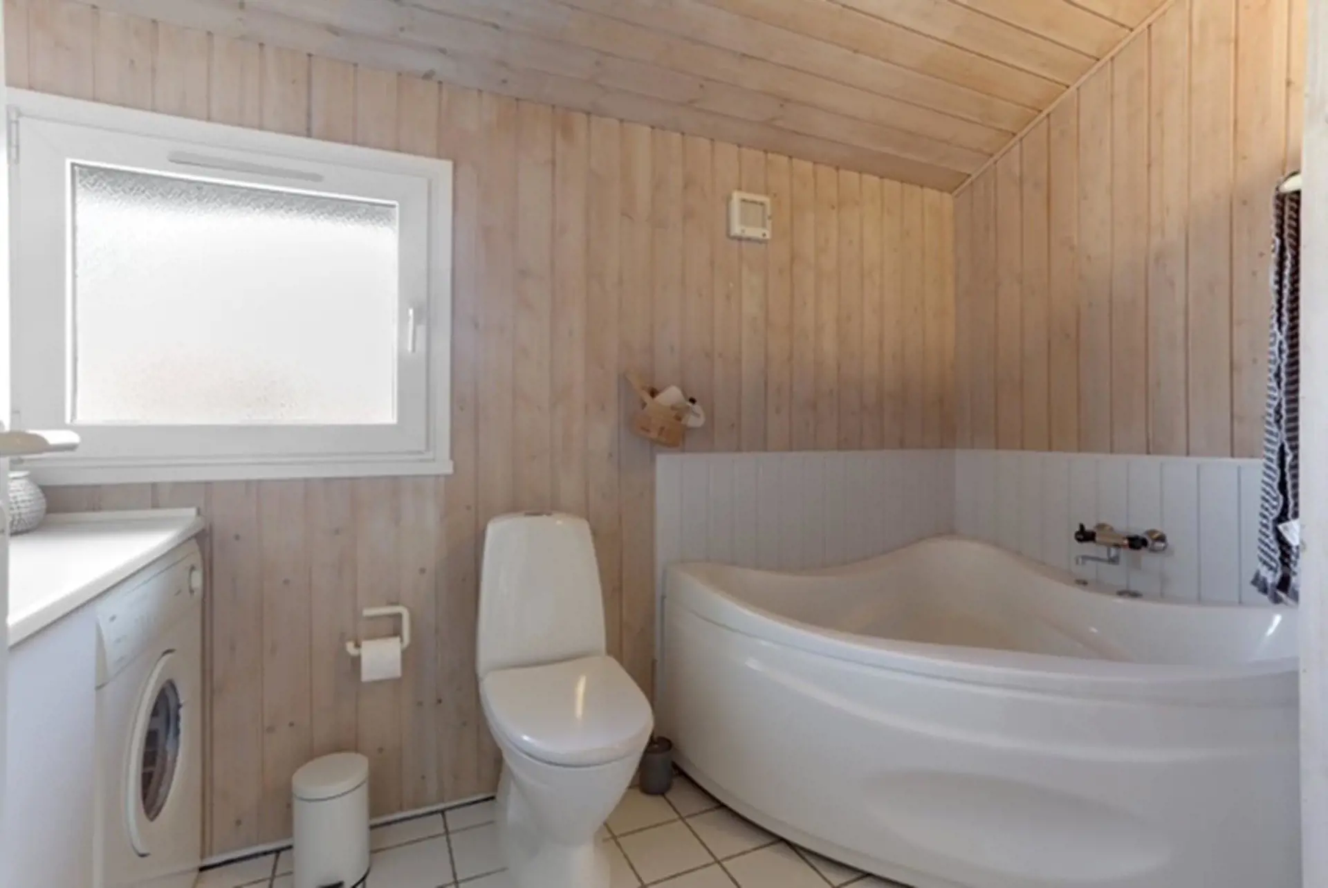 Das Badezimmer ist großzügig gestaltet und verfügt über eine schöne Eck-Whirlpoolwanne – perfekt für pure Entspannung nach einem Tag am Strand. Darüber hinaus ist das Haus energieeffizient mit Wärmepumpe ausgestattet, und es besteht die Möglichkeit, ein Elektroauto über einen Starkstromanschluss zu laden (eigenes Kabel erforderlich).