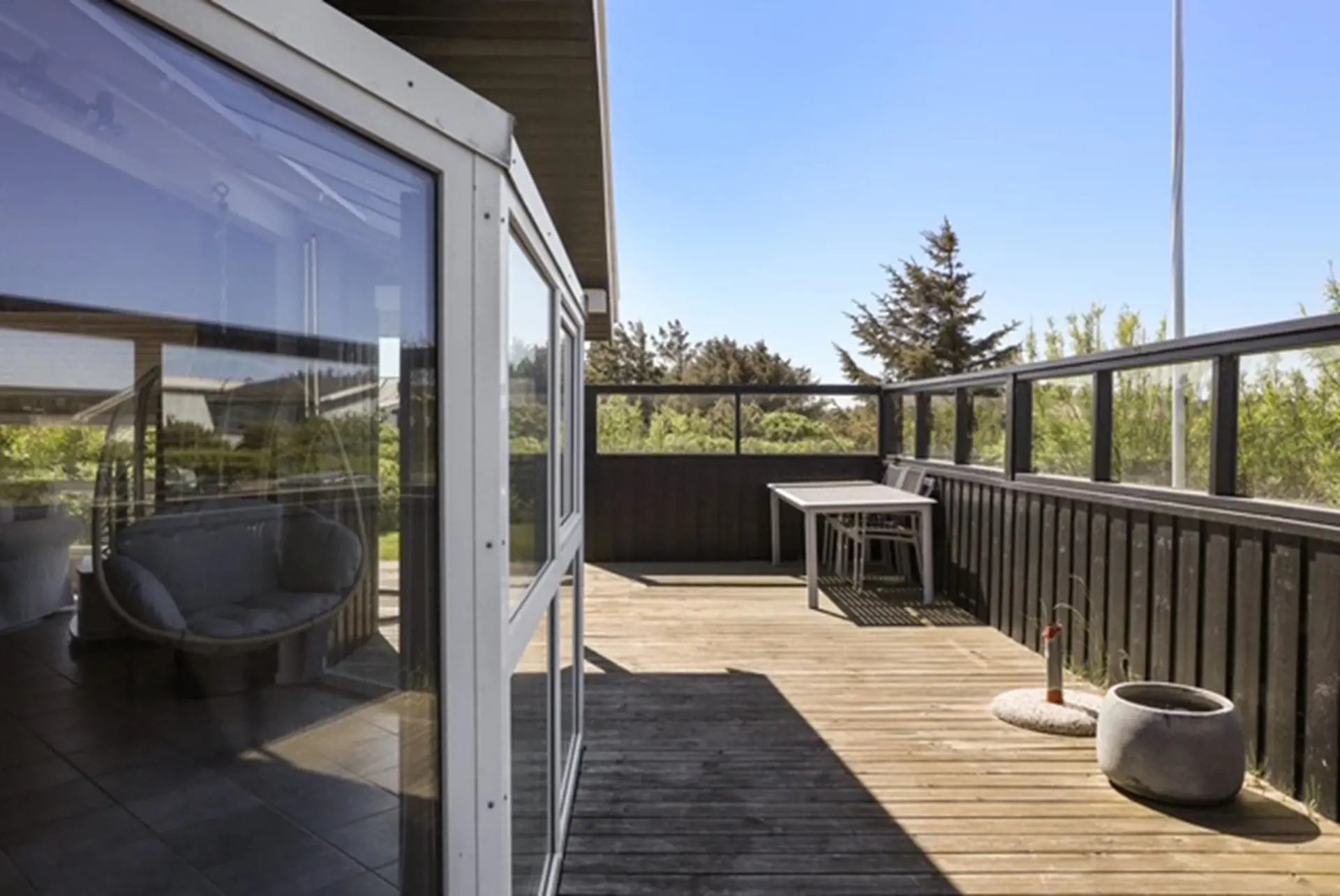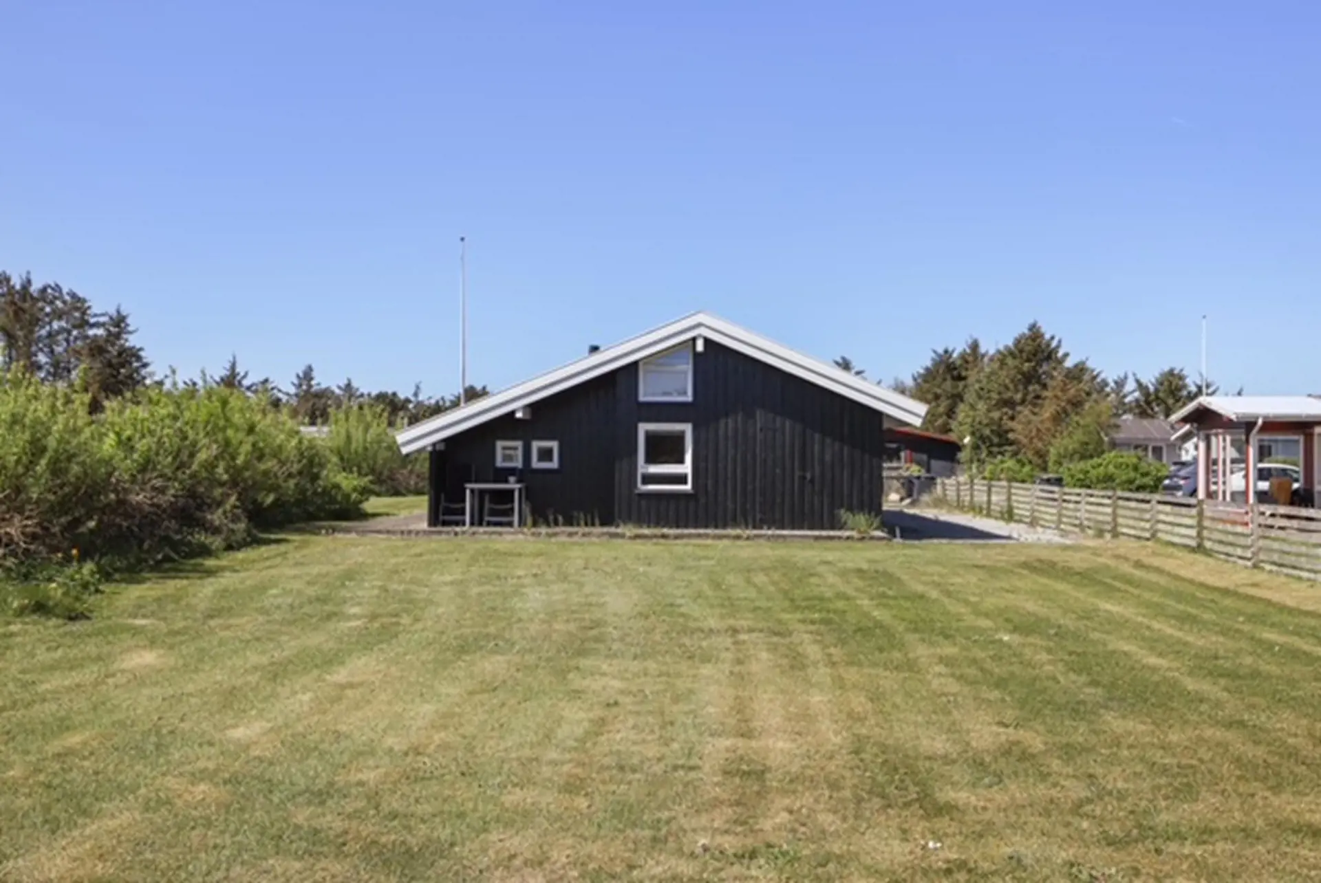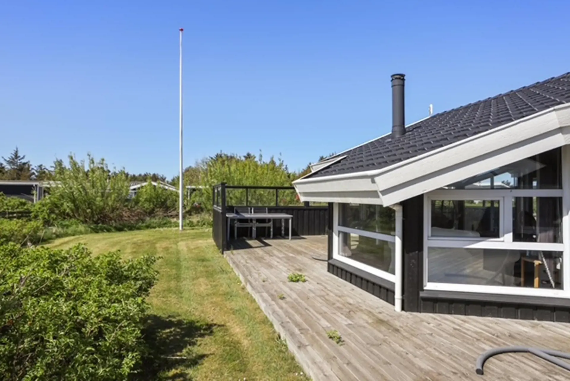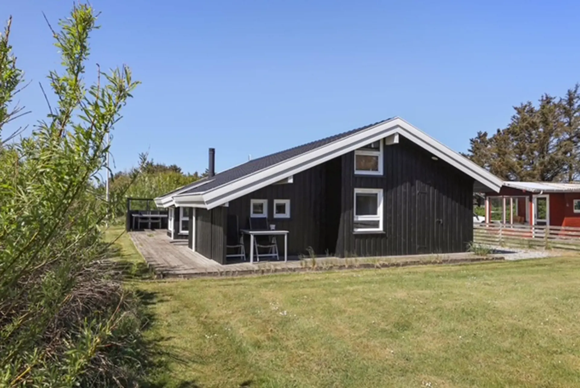 Treten Sie direkt vom Wohnbereich hinaus auf die schöne, abgeschirmte Terrasse und genießen Sie die Urlaubsstimmung: morgens mit einer Tasse Kaffee in der Sonne oder an langen Sommerabenden bei gutem Essen unter freiem Himmel. Rund um das Haus finden Sie mehrere gemütliche Ecken, sodass Sie immer den perfekten Platz wählen können – ob in der warmen Sonne oder geschützt vor dem frischen Westwind.