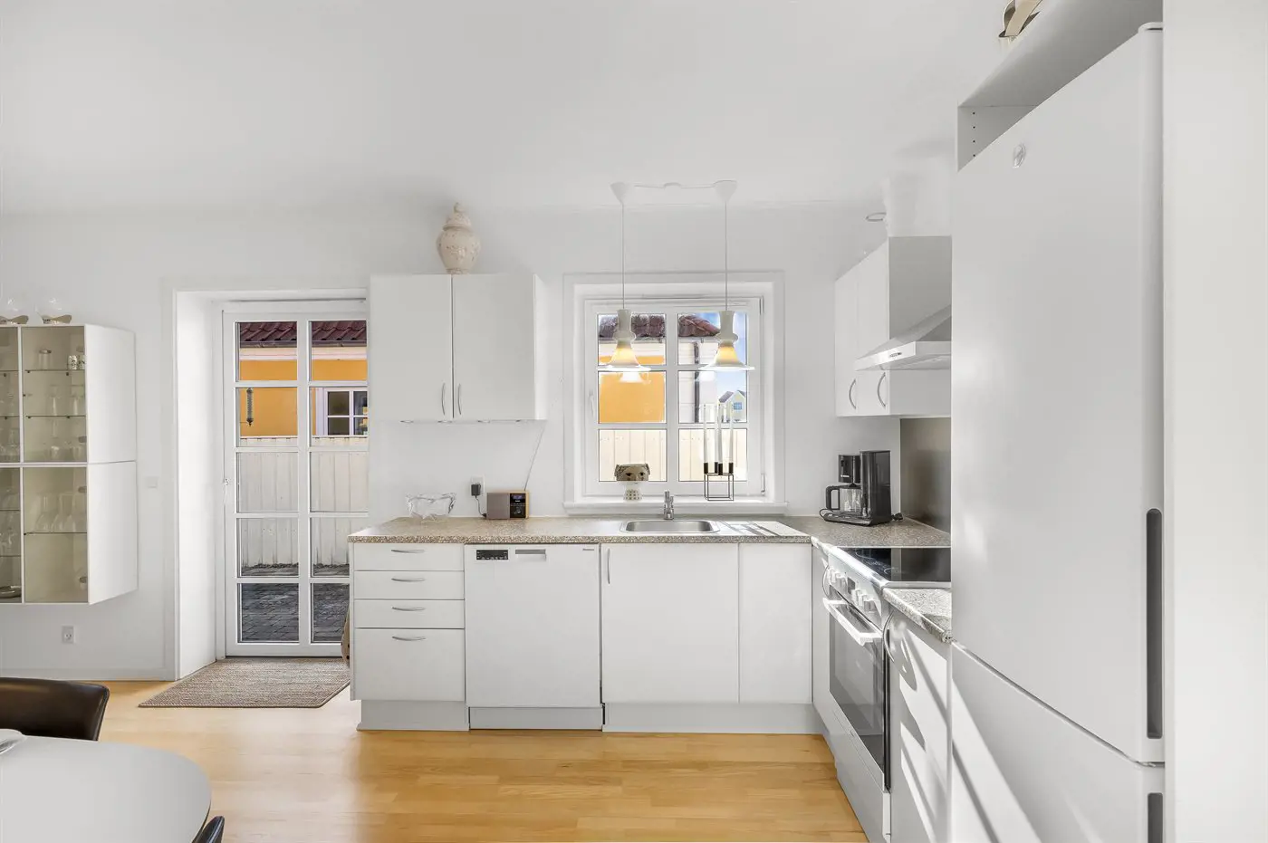 Die Küche ist mit Kühlschrank ausgestattet. Außerdem gibt es 4 Keramik-Kochfelder, Umluftofen, Airfryer sowie Geschirrspüler.